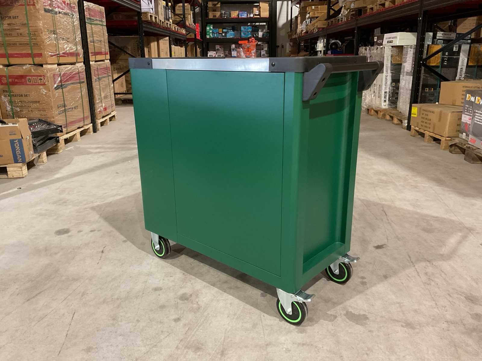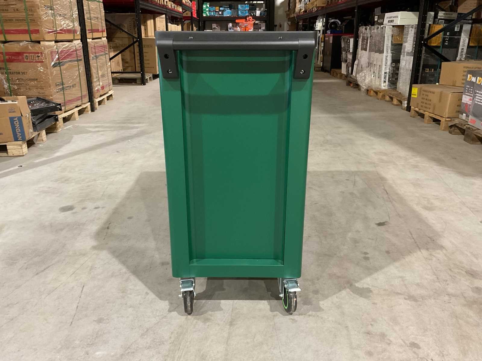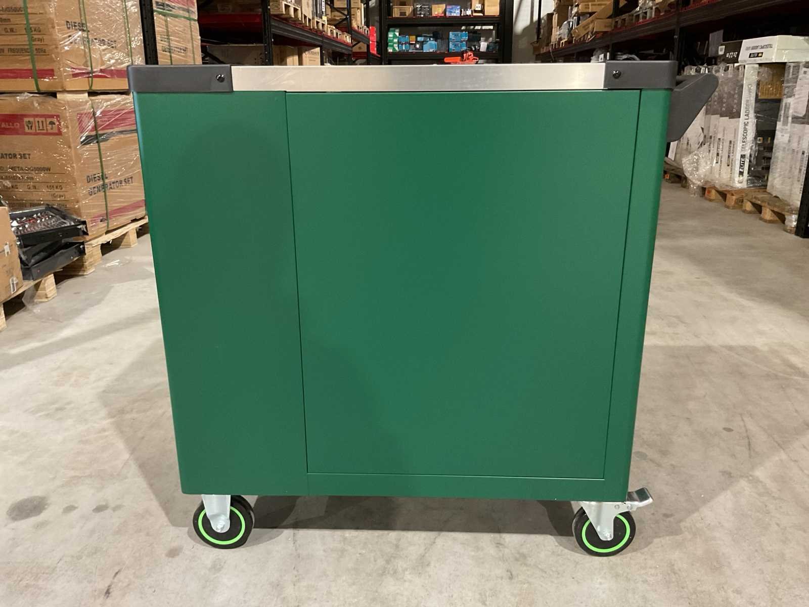 Voorzien van 7 lades waarvan 7 gevuld met gereedschap; zij lade; professioneel chroom-vanadium gereedschap; heavy duty gereedschapswagen; stevig werkblad; 4 wielen; stevig handvat; ongebruikt in doos (transport afmetingen 95x50x85 cm) Merk: UltraToolz Type: Germany 8/7 Bouwjaar: 2025 Aantal laden: 7 Met inhoud: true Eigen gewicht: 83kg Totale afmeting L: 950mm Totale afmeting Breedte: 500mm Totale afmeting Hoogte: 850mm