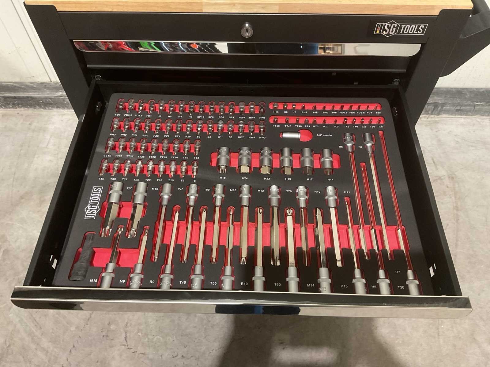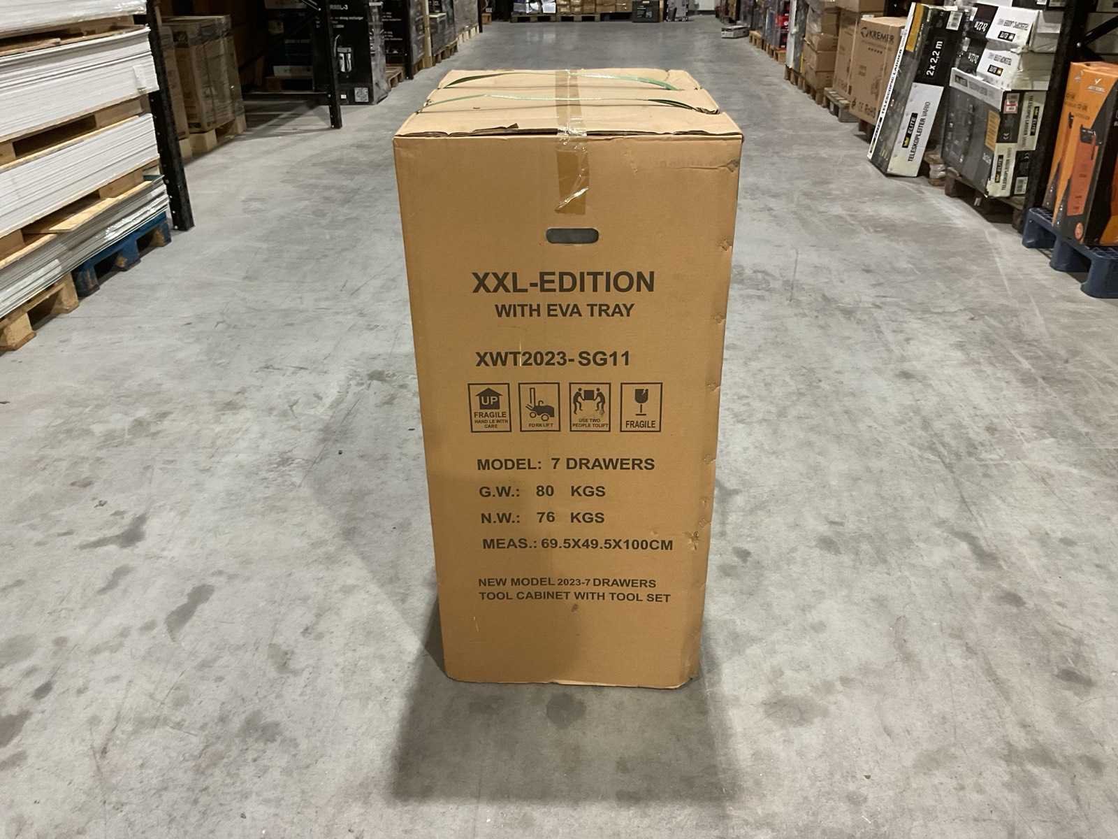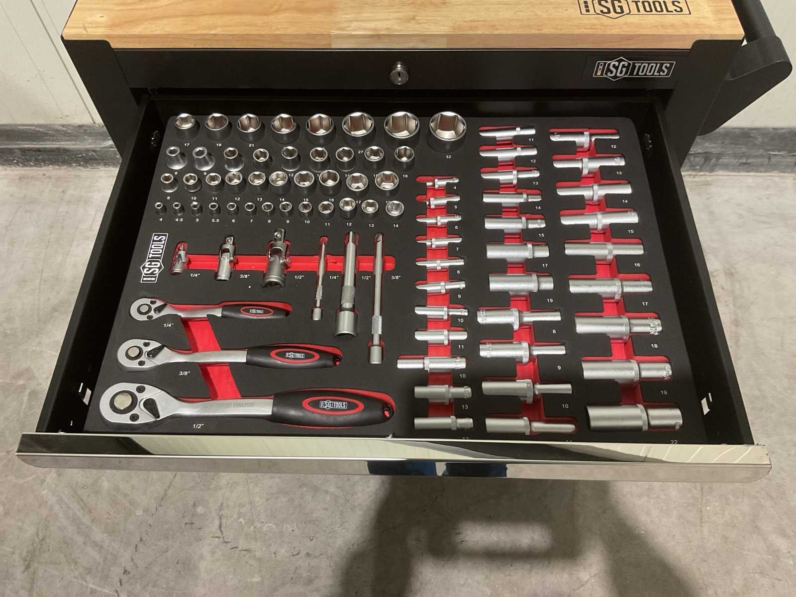 Voorzien van 7 laden, 6 gevuld; 278 stuks gereedschap; Handgrepen: Chroom; Wielen: Met wielen; vermeld als 2 zwenkwielen met rem; Productafmetingen (L×B×H): 70 × 50 × 100 cm; Ongebruikt (Transport; 80kg 70x50x101cm) Merk: SG TOOLS Type: XWT2023-SG11 Met inhoud: true Eigen gewicht: 76kg Totale afmeting L: 695mm Totale afmeting Breedte: 495mm Totale afmeting Hoogte: 100mm
