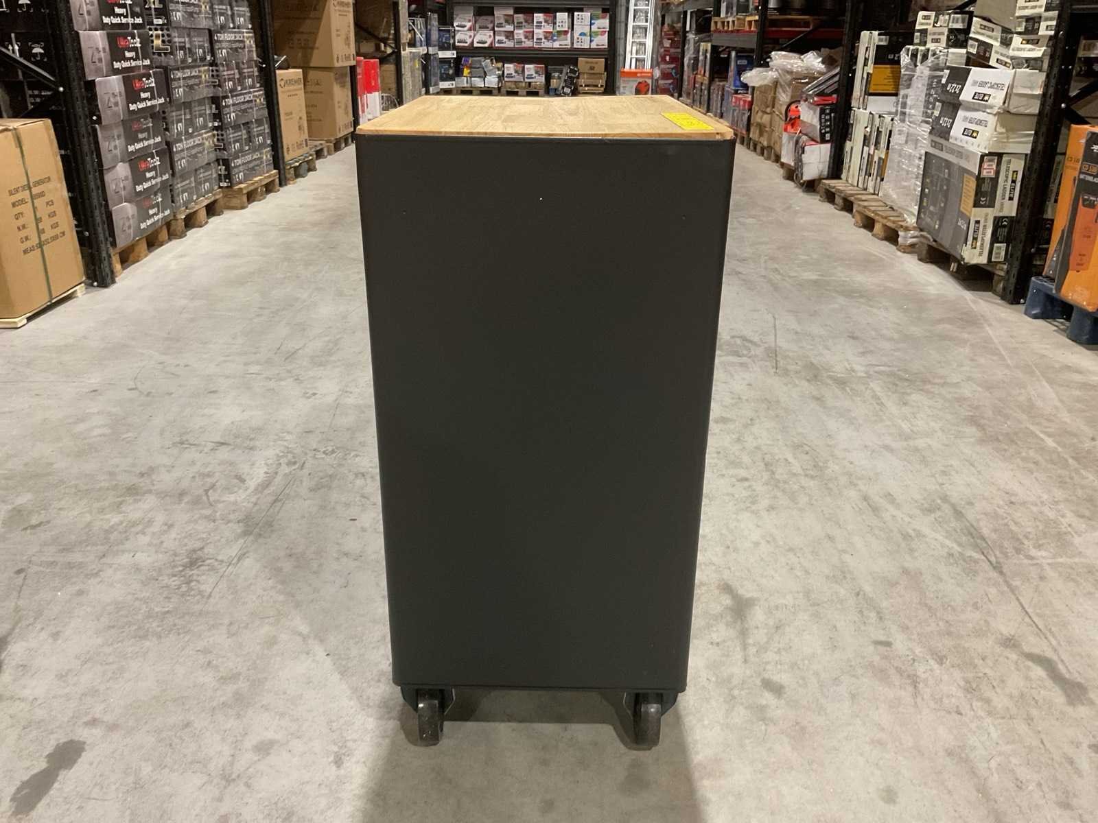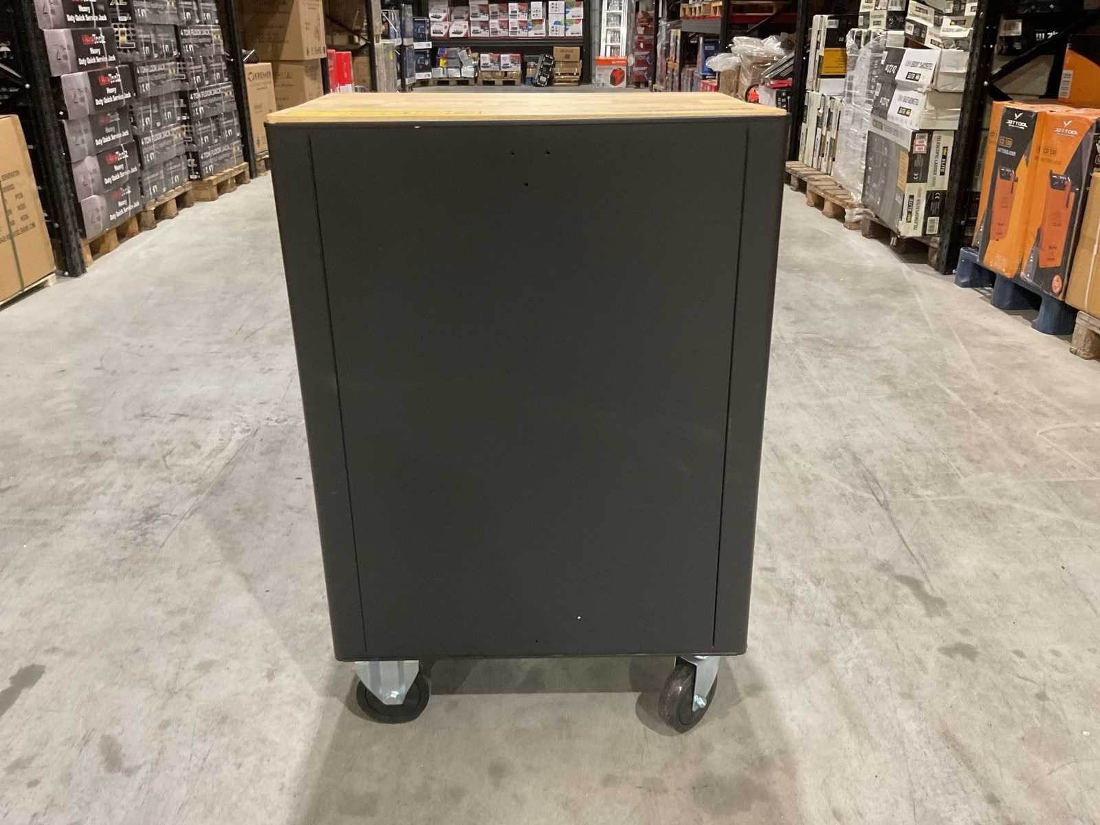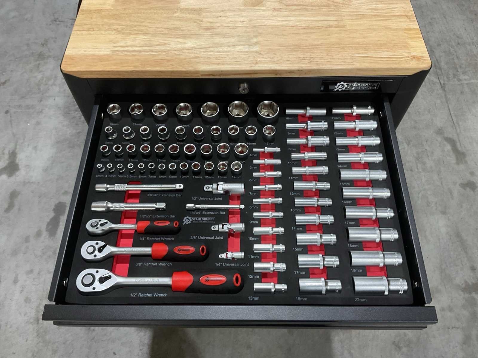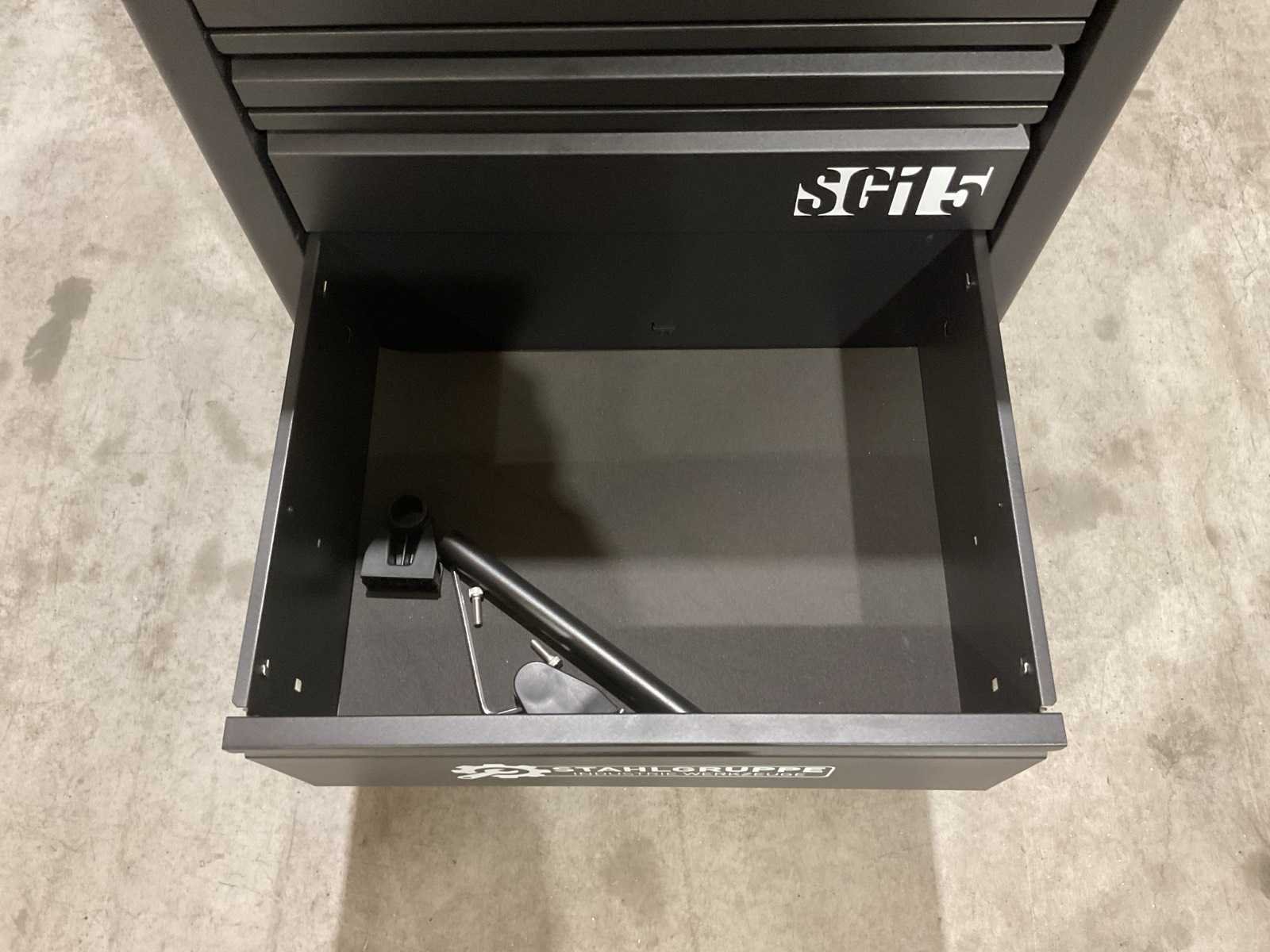 Voorzien van 7 lades waarvan 6 gevuld met gereedschap; professioneel chroom-vanadium gereedschap; heavy duty gereedschapswagen; houten werkblad; 4 wielen; stevig handvat; (transport afmetingen 70x50x105 cm); Let op transports schade Merk: Stahlgruppe Type: SG15 Bouwjaar: 2025 Aantal laden: 7 Met inhoud: true Eigen gewicht: 77kg Totale afmeting L: 68mm Totale afmeting Breedte: 48mm Totale afmeting Hoogte: 104mm
