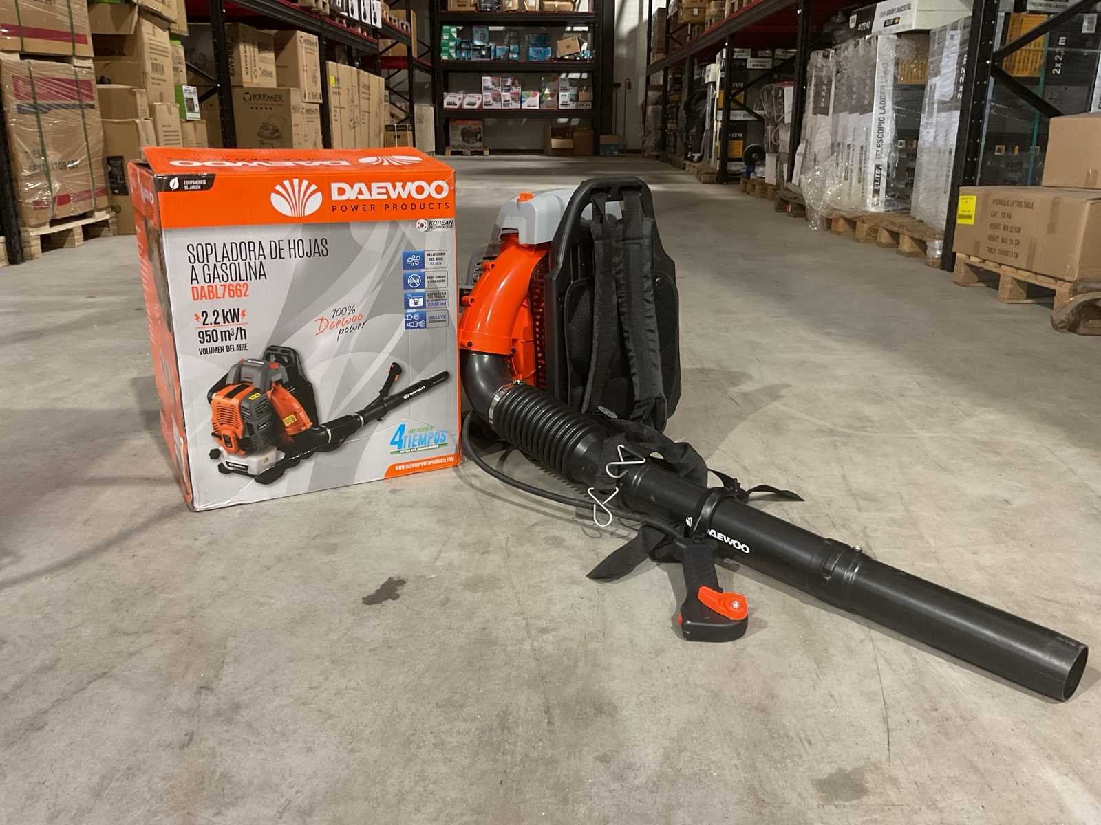 Voorzien van 4-takt motor; Vermogen: 2,2 kW; Maximaal motortoerental: 7000 rpm; Brandstoftank: 2000 ml; Olietank 300 ml; Luchtsnelheid: 82 m/s; Luchtvolume: 950m³/h; Ongebruikt in doos (Afmeting transport verpakking 480x415x535 mm lxbxh, gewicht 14 kg) Merk: Daewoo Type: DABL7662 Bouwjaar: 2025 Brandstofmotor aangedreven: true Brandstof: Benzine 4-takt Eigen gewicht: 14kg Totale afmeting L: 480mm Totale afmeting Breedte: 415mm Totale afmeting Hoogte: 535mm