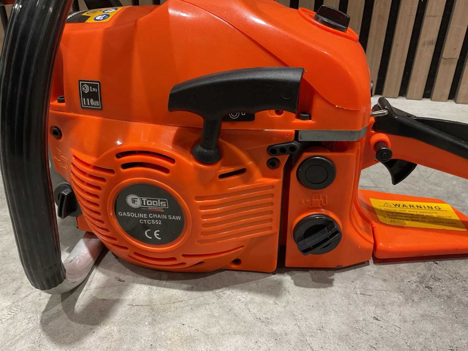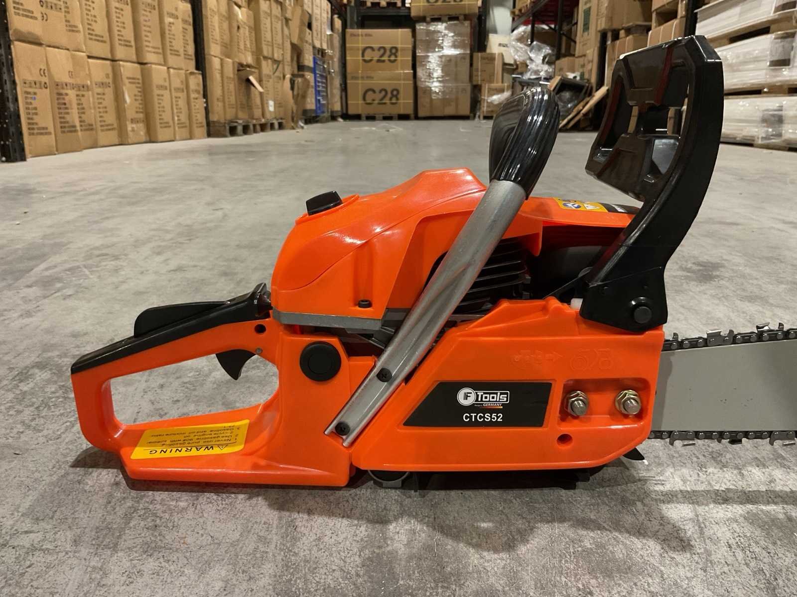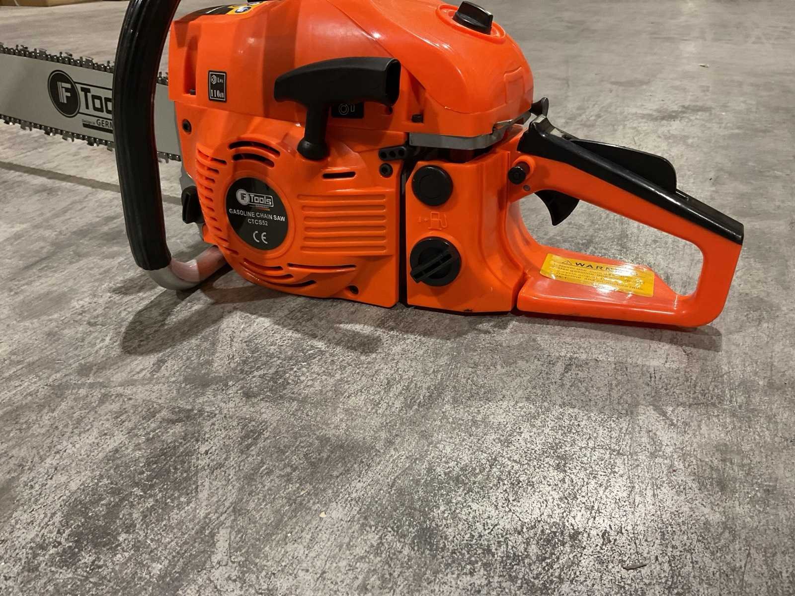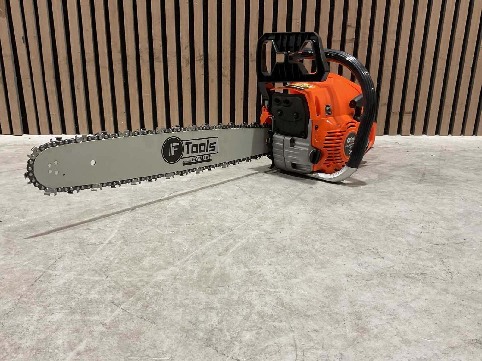 Voorzien van Motortype: 2-takt benzinemotor; Cilinderinhoud: 52 cc; Vermogen: 2,2 kW; Ontsteking: CDI-systeem; Zwaardlengte: 20 inch; Smering: Automatische kettingsmering (Auto Oil); Brandstoftank: ca. 0,55 liter; Olietank: ca. 0,26 liter; Handgreep: Ergonomisch, antislip; Kettingrem; Trillingsdemping; Ongebruikt in doos Merk: Ftools Type: CTCS52 2,2KW 52cc
