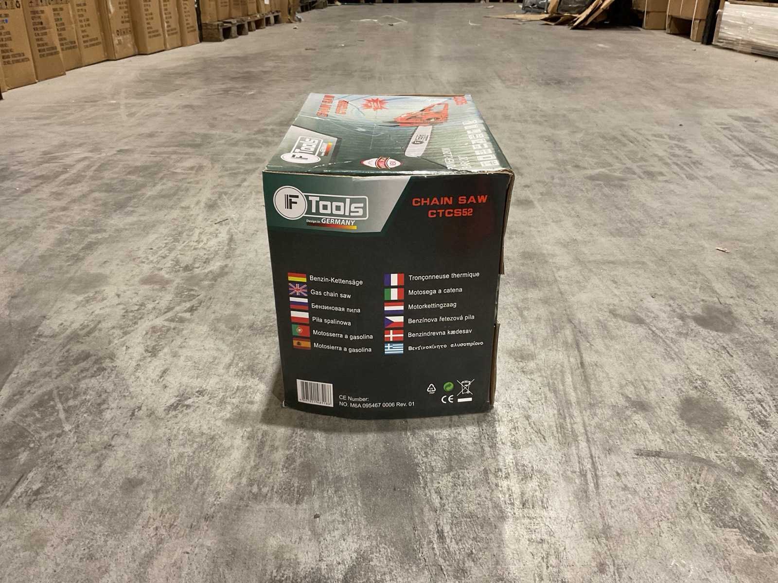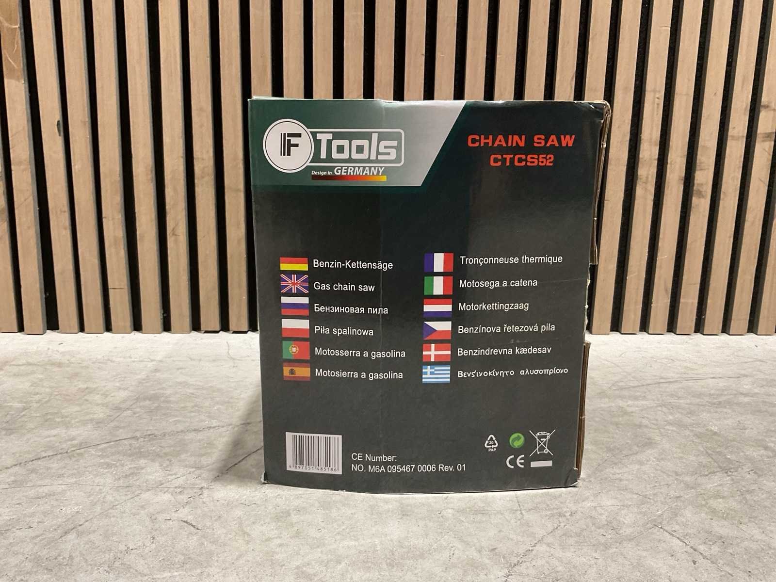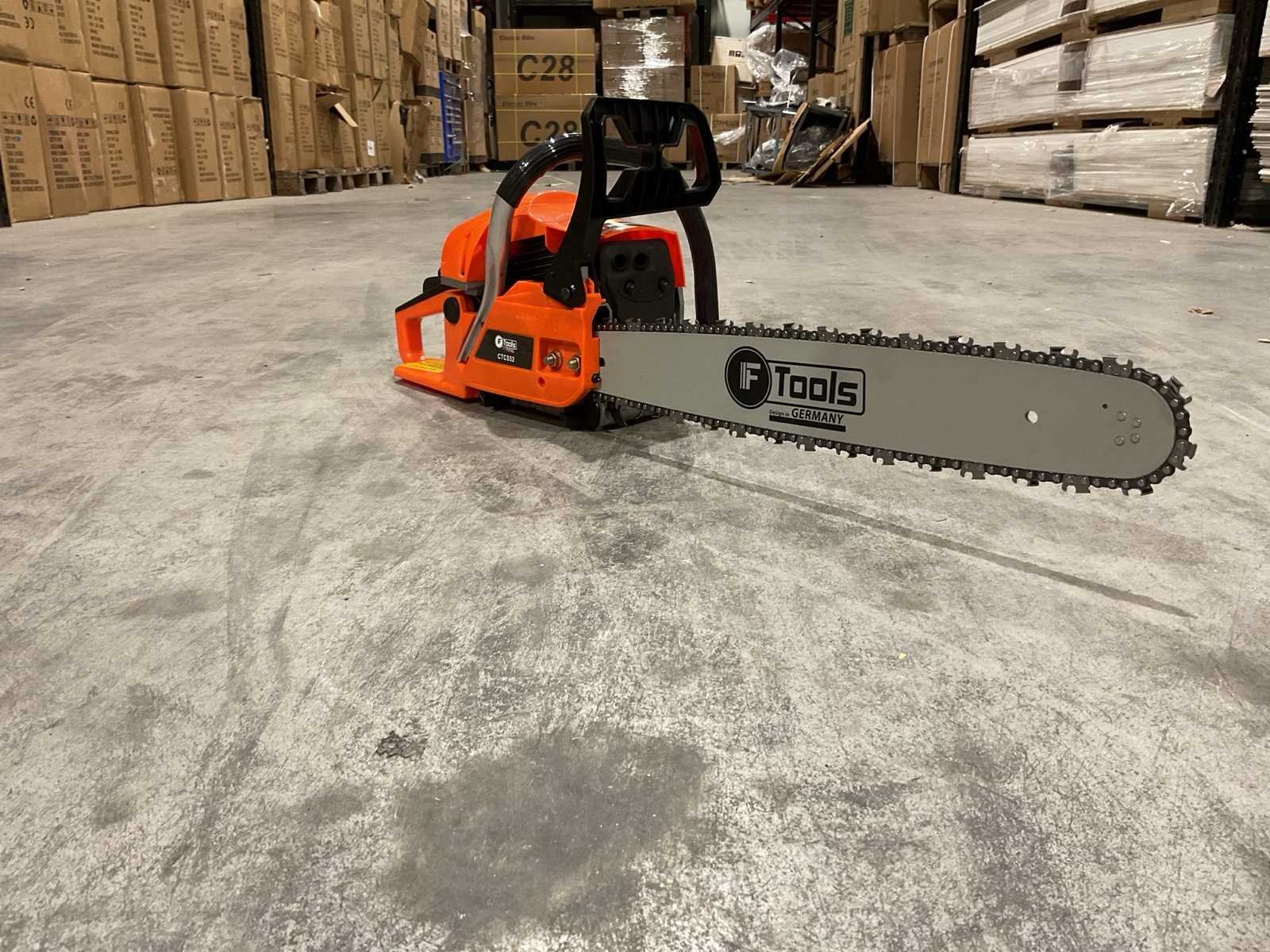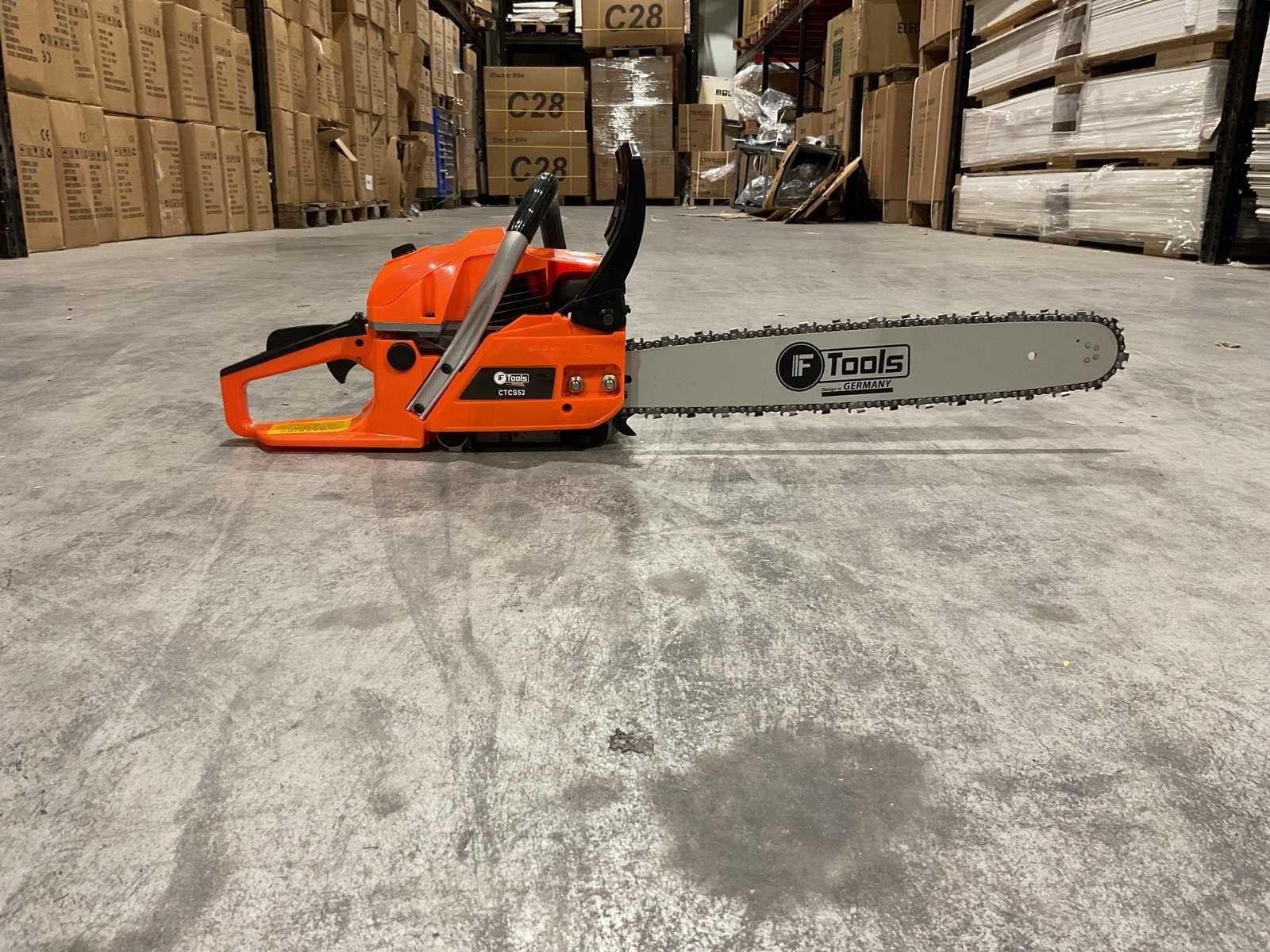 Voorzien van Motortype: 2-takt benzinemotor; Cilinderinhoud: 52 cc; Vermogen: 2,2 kW; Ontsteking: CDI-systeem; Zwaardlengte: 20 inch; Smering: Automatische kettingsmering (Auto Oil); Brandstoftank: ca. 0,55 liter; Olietank: ca. 0,26 liter; Handgreep: Ergonomisch, antislip; Kettingrem; Trillingsdemping; Ongebruikt in doos Merk: Ftools Type: CTCS52 2,2KW 52cc