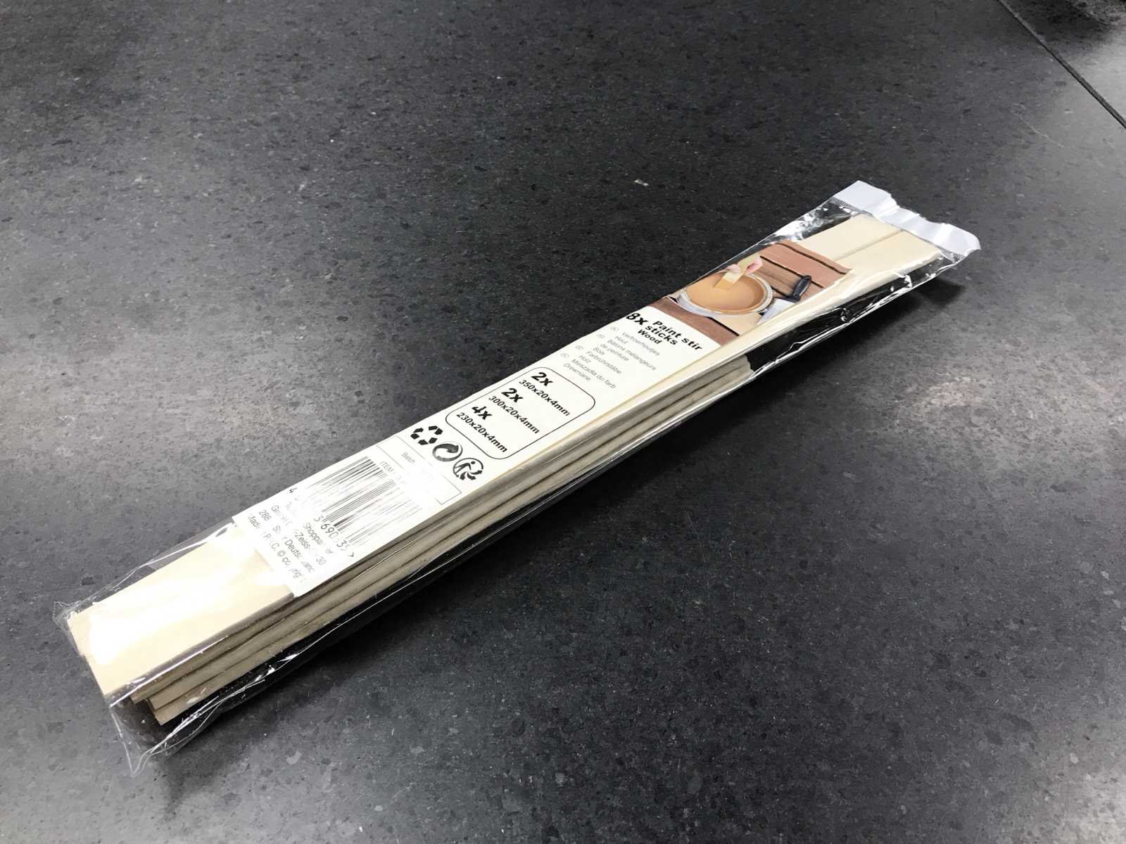 Ongebruikt in de verpakking; hout; diverse afmetingen