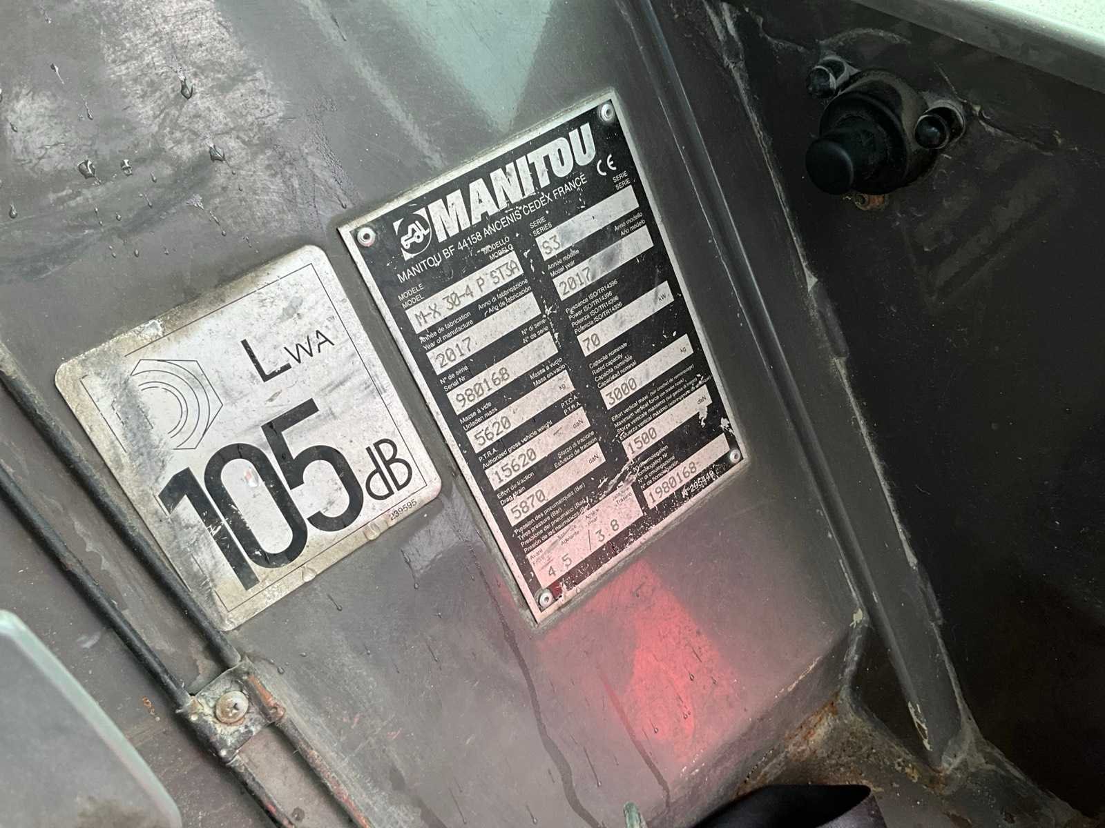 Voorzien van: 4x4 aandrijving; gesloten cabine; werkverlichting; hoge/lage giering; cabine verwarming Merk: Manitou Type: MX 30-4 Bouwjaar: 2017 Brandstof: Diesel Mast: Duplex Soort band: Luchtbanden Aantal wielen: 4 Afgelezen urenstand: 6211 Ruw terrein: true Duplex mast: true Eigen gewicht: 5620kg Hefvermogen: 3000kg Lepellengte: 1200mm Max. hefhoogte: 3700mm Hefhoogte: 3700mm Luchtbanden: true Minimale doorrijhoogte: 2750mm Totale afmeting L: 4900mm Totale afmeting Breedte: 200mm Totale afmeting Hoogte: 2750mm