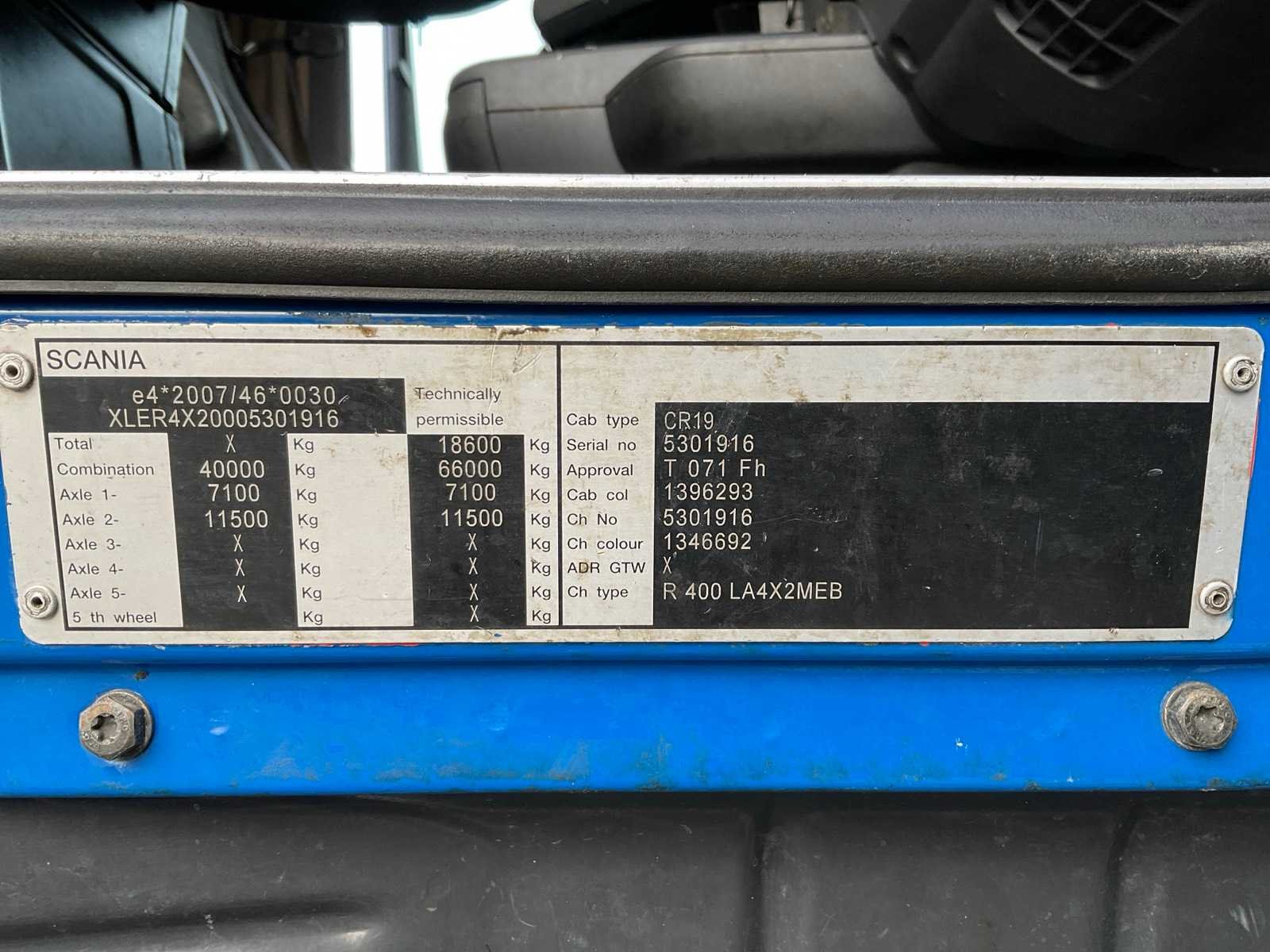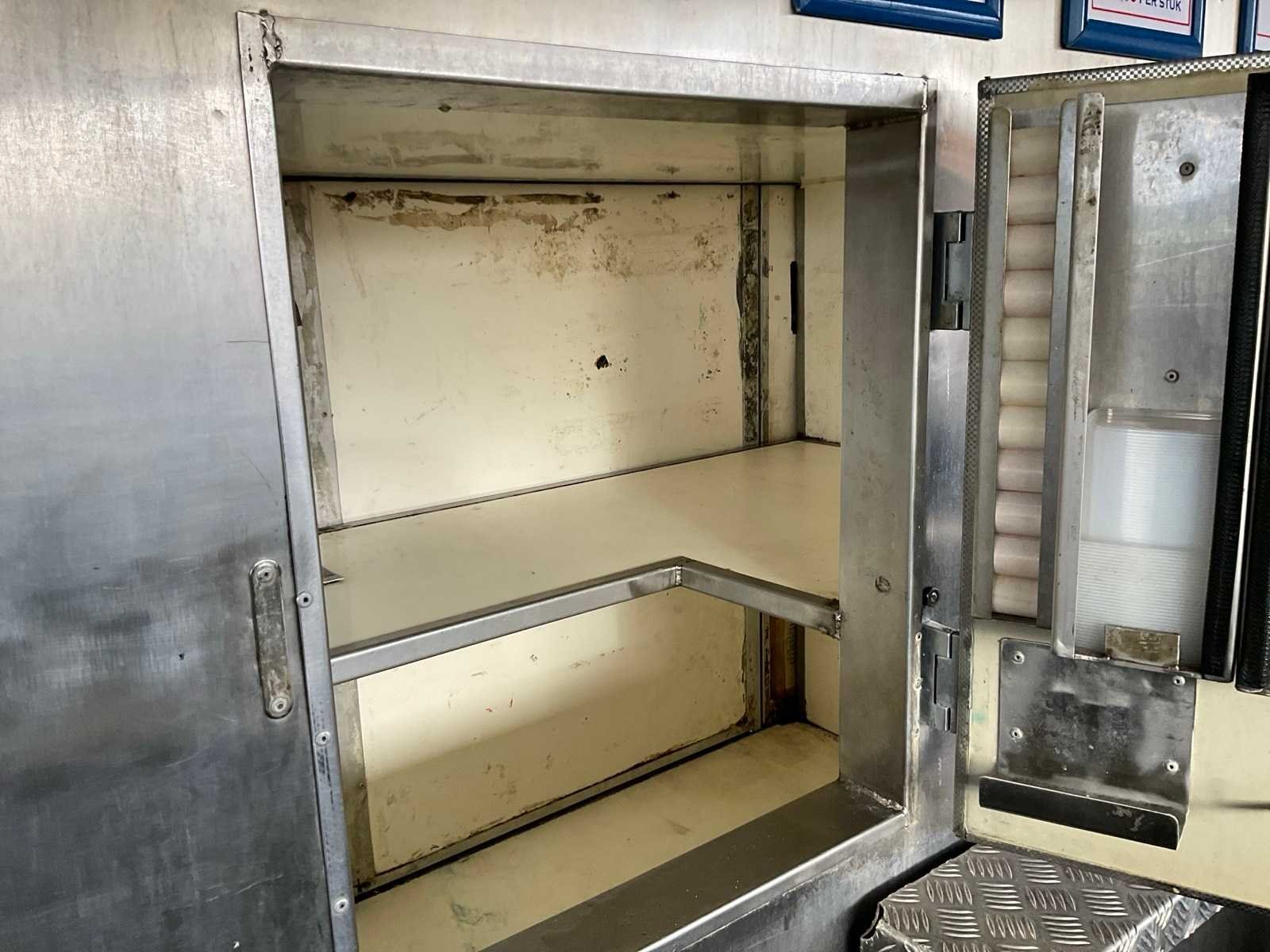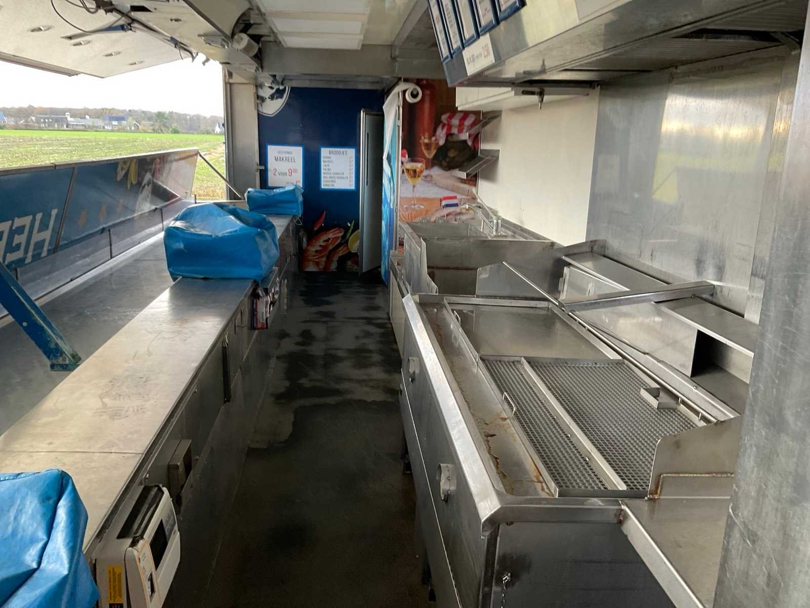 Gebruikt voor vis: Hydraulisch laten zakken tot op grond, hydraulisch verstelbare poten, hydraulische zijklep en toonbank verstelling, achterklep met gasveer, uitbreidbaar achterkant 260 cm tot totaal van 1460 cm, 2 koelcellen, bakpan op lpg, blikjes koelkast, 2 wasbakken, 440 V aansluitingen, koelinstallatie, lpg tank, wateraansluiting, luchtvering Inclusief 2012 Scania R400 trekker, chassisnummer XLER4X20005301916, kenteken 57-BBD-7, 18,6 ton maximum massa, combinatie 40 ton, afgelezen km stand 836610, digitale tachograaf (niet geschikt voor buitenland, climate control, slaapcabine met dubbel bed, luchtvering, schotelhoogte circa 100 cm, voorzien van extra opslagbak met laadklep en elektrische lier, afmetingen 230x114x238 cm, bandenmaat achter 295/60R22.5, bandenmaat voor 315/60R22.5, camera achter de cabine. Merk: Ruysschaert Type: SR16TP Bouwjaar: 1997 Chassisnummer VIN: 717 Kenteken: OP-12-KZ Datum eerste toelating (NL): 2016-09-29 Datum eerste toelating: 1997-04-07 APK vervaldatum: 2024-10-20 Aantal assen: 2 Laadvermogen: 1664kg Eigen gewicht: 13336kg Totale afmeting L: 1650mm Totale afmeting Breedte: 2550mm Totale afmeting Hoogte: 3750mm Zelf rijdend exporteren: Niet mogelijk No self drive export!: true