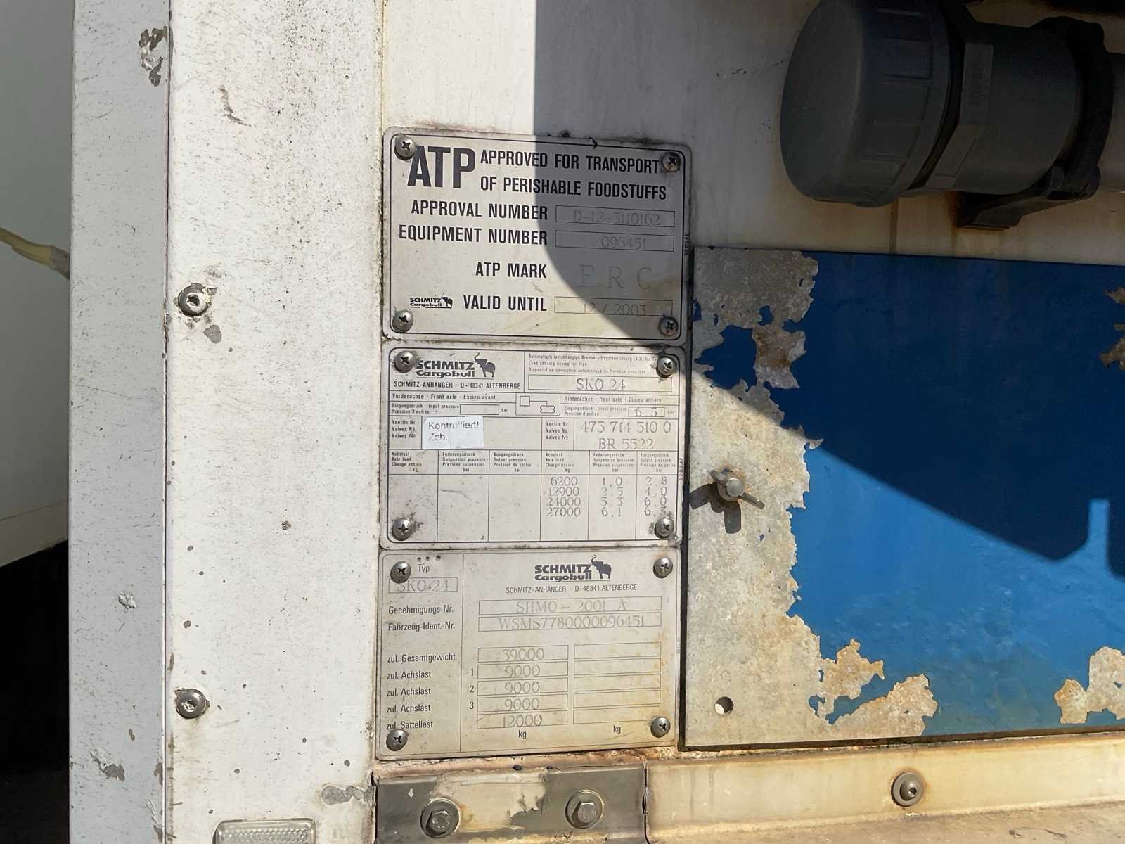 Voorzien van Carrier Vector 1800 koelunit Merk: Schmitz Type: SKO 24 Type aanhangwagencarrosserie: Gesloten aanhangwagen Bouwjaar: 1998 Chassisnummer VIN: WSMS7780000096451 Kenteken: OF-37-KJ Datum eerste toelating (NL): 1998-01-09 Datum eerste toelating: 1998-01-09 APK vervaldatum: 2016-05-06 Aantal assen: 3 Laadvermogen: 30400kg Koeltrailer: true Eigen gewicht: 8600kg Totale afmeting L: 11990mm Totale afmeting Breedte: 2600mm No self drive export!: true