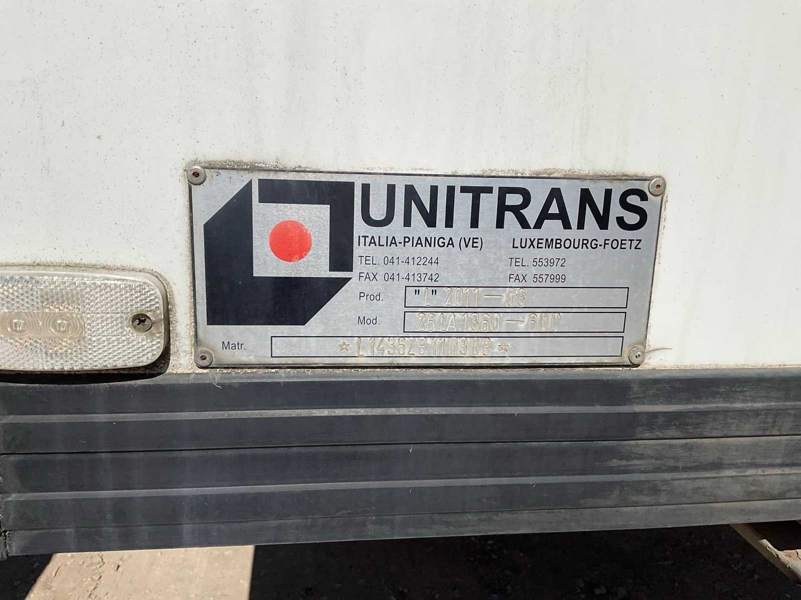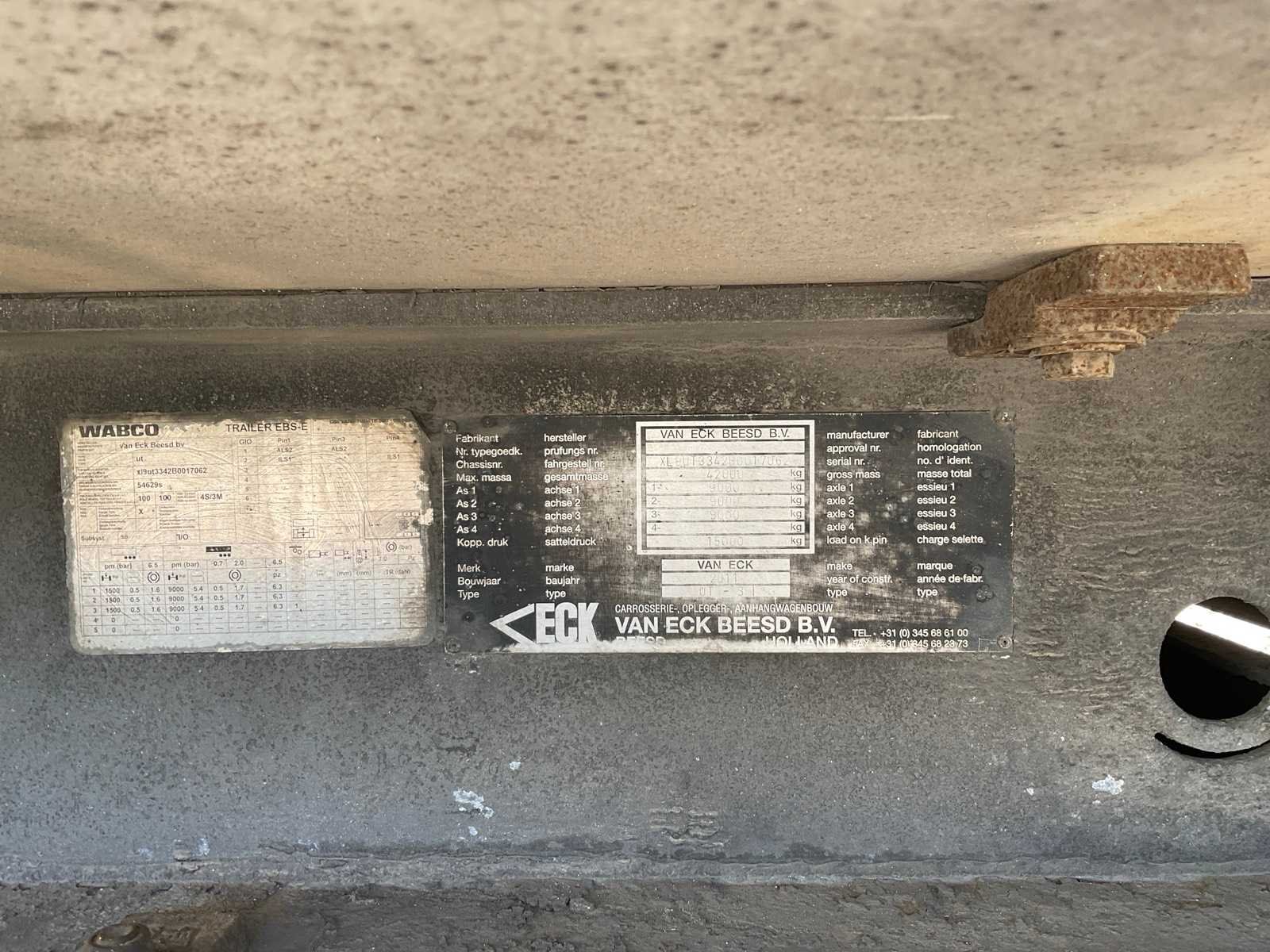 Voorzien van SAF assen, Carrier Vector I850 koelunit Merk: Van Eck Type: UT-31 Type aanhangwagencarrosserie: Gesloten aanhangwagen Bouwjaar: 2011 Chassisnummer VIN: XL9UT3342B0017062 Kenteken: OL-78-HT Datum eerste toelating (NL): 2011-04-13 Datum eerste toelating: 2011-04-13 APK vervaldatum: 2020-05-23 Aantal assen: 3 Laadvermogen: 32350kg Koeltrailer: true Eigen gewicht: 9650kg Totale afmeting L: 14040mm Totale afmeting Breedte: 2600mm No self drive export!: true