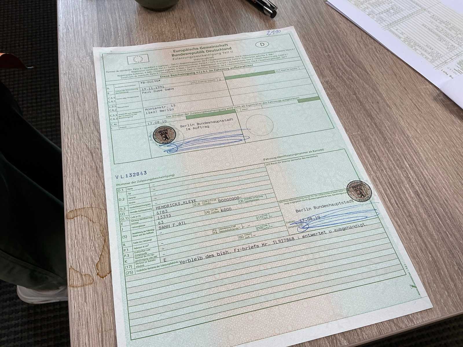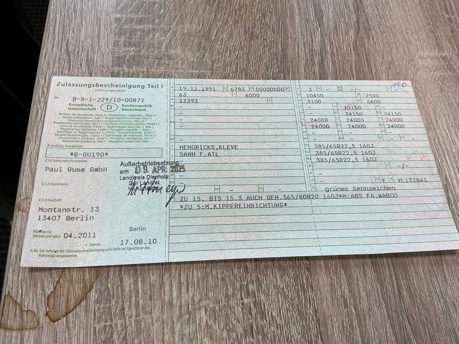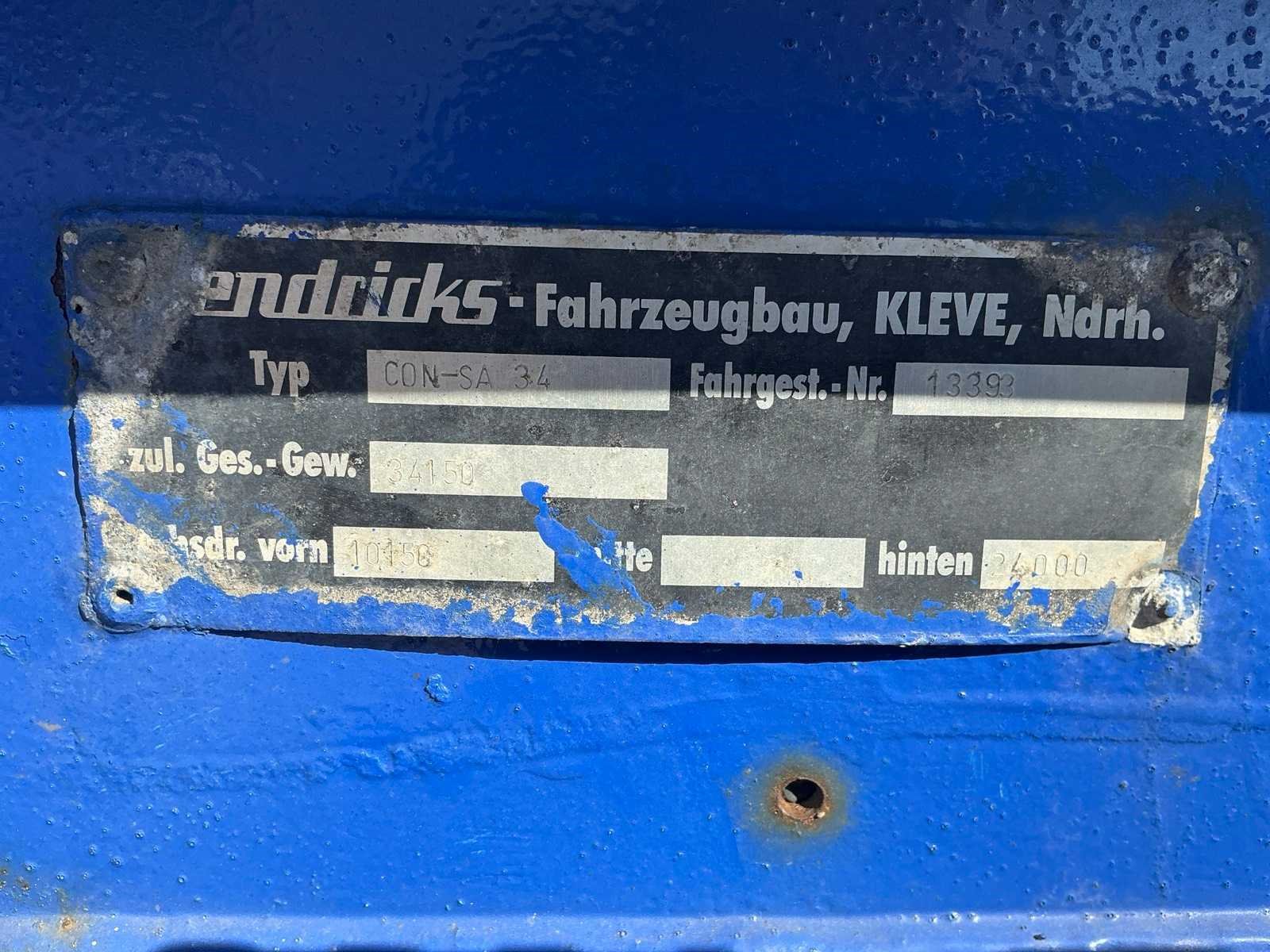 Geen kenteken registratie; Duitse documenten Merk: Hendricks Type: CON-SA 34 Type aanhangwagencarrosserie: Open Aanhangwagen Chassisnummer VIN: 13393 Aantal assen: 3 Totale afmeting L: 10000mm Totale afmeting Breedte: 2400mm
