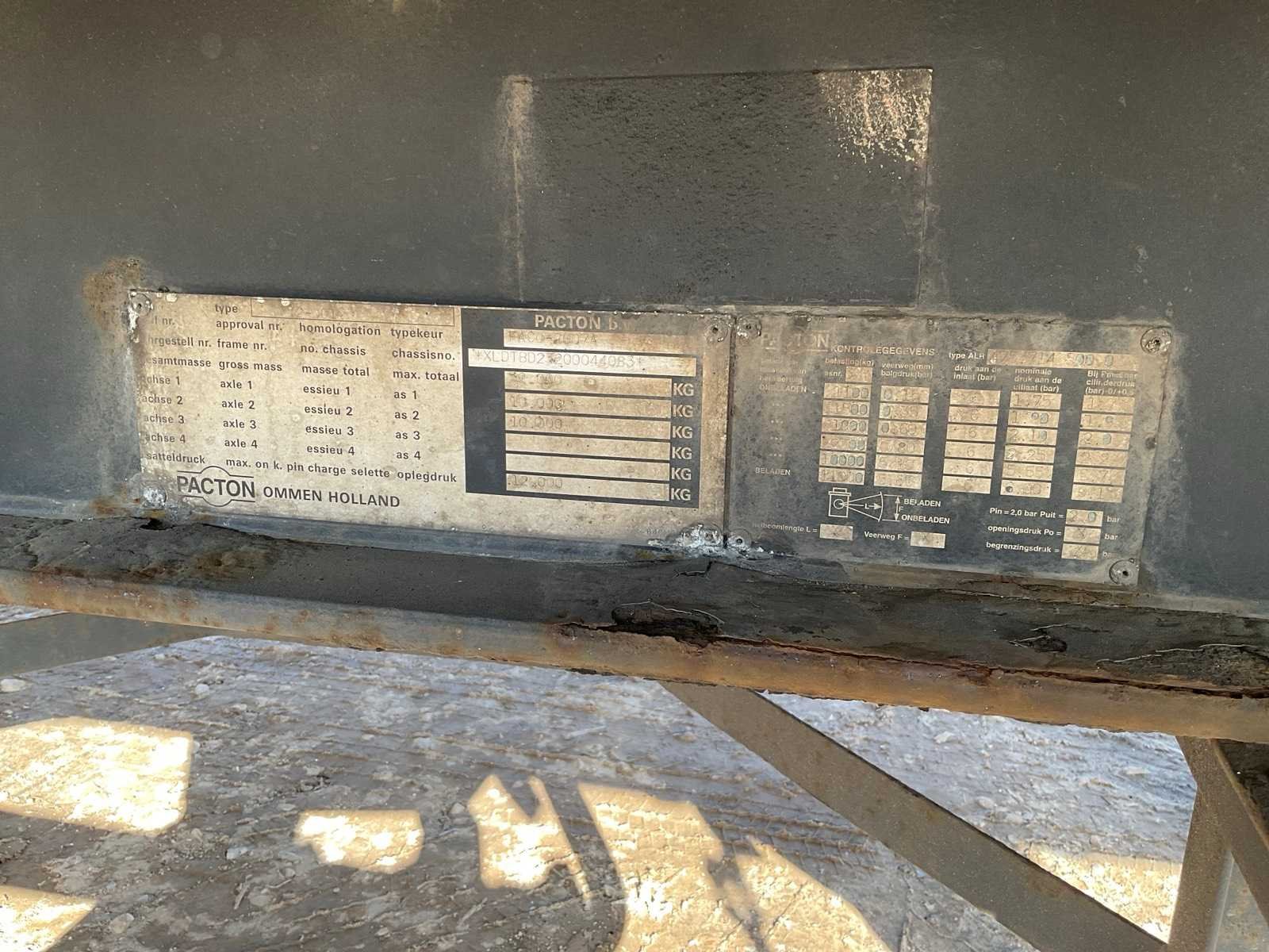 Merk: Pacton Type: T2-001 Type aanhangwagencarrosserie: Schuifzeilaanhangwagen Bouwjaar: 2000 Chassisnummer VIN: XLDTBD23200044083 Kenteken: OG-11-KK Datum eerste toelating (NL): 2000-10-20 Datum eerste toelating: 2000-10-20 APK vervaldatum: 2026-04-03 Aantal assen: 2 Laadvermogen: 23500kg Eigen gewicht: 8500kg Totale afmeting L: 13760mm Totale afmeting Breedte: 2550mm No self drive export!: true