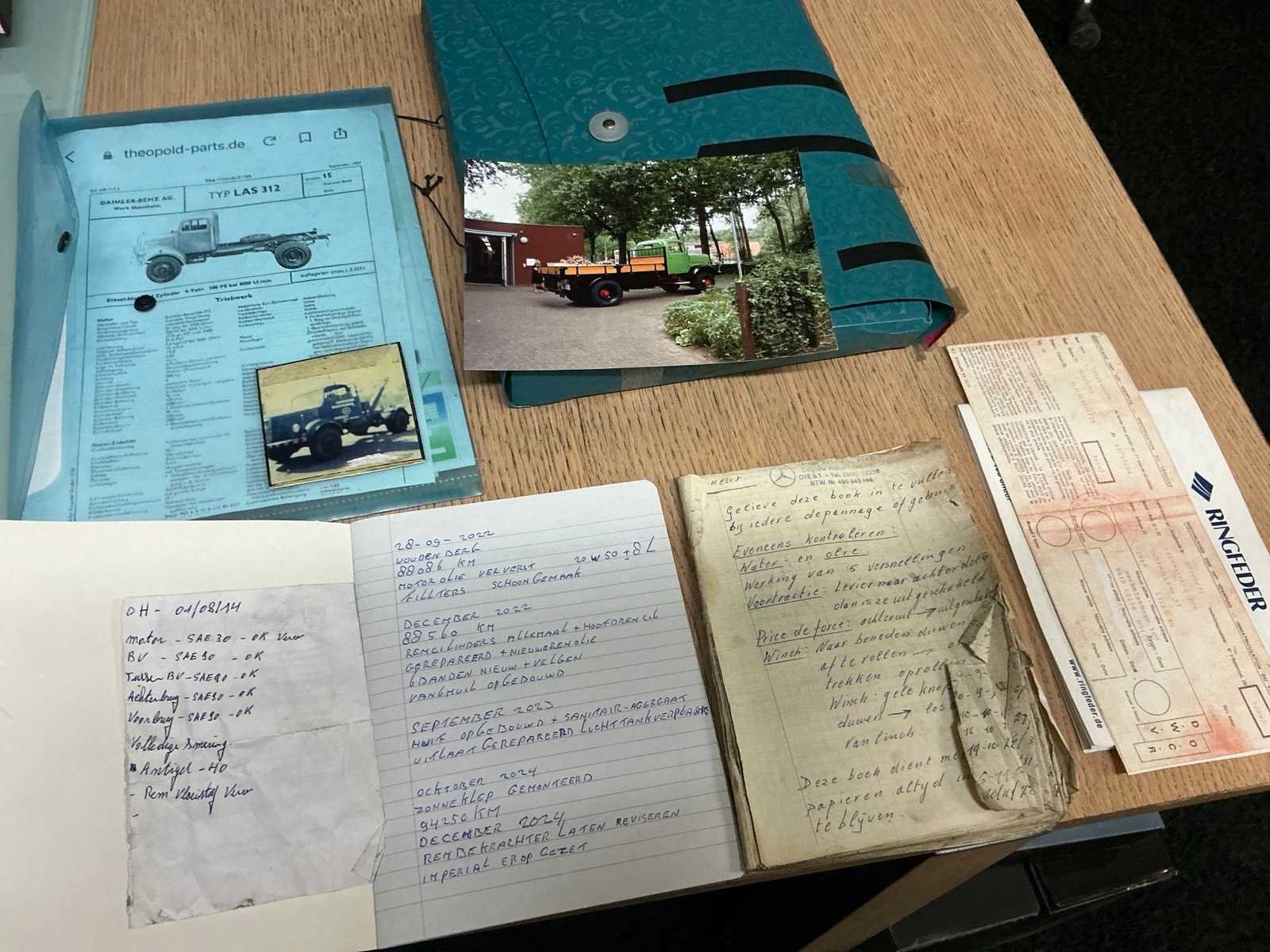 Vołledige documentatie en onderhoud registratie; Kenteken: BH-04-00 Merk: Mercedes Type: LA4500/312150 Bouwjaar: 1954 Chassisnummer: 3121504506775 Afgelezen kilometerstand: 95211 Brandstof: diesel Datum eerste toelating: 1954-07-15 Datum eerste toelating (NL): 2022-09-29 Carrosserie: Open laadvloer Vermogen (pk): 90 Vermogen (kW): 66kW Emissieklasse: 0 Aantal deuren: 2 Aantal zitplaatsen: 2 Kleur: niet van toepassing Cilinderinhoud: 4580 Aantal cilinders: 6 Ledig gewicht: 3455