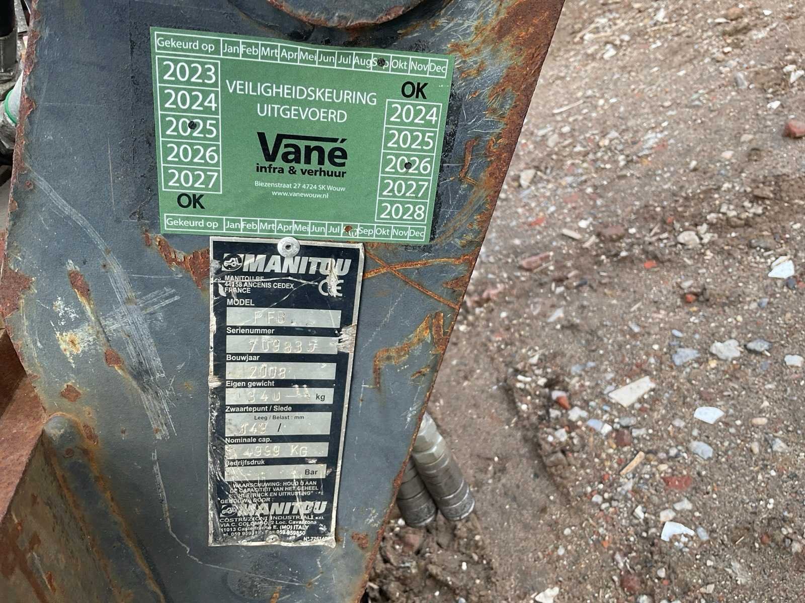 Merk: Manitou Type: PFB Bouwjaar: 2008 Serienummer: 709835 Hijsvermogen: 4999kg Afmeting l: 1850mm Afmeting b: 1100mm Afmeting h: 800mm Eigen gewicht: 340kg