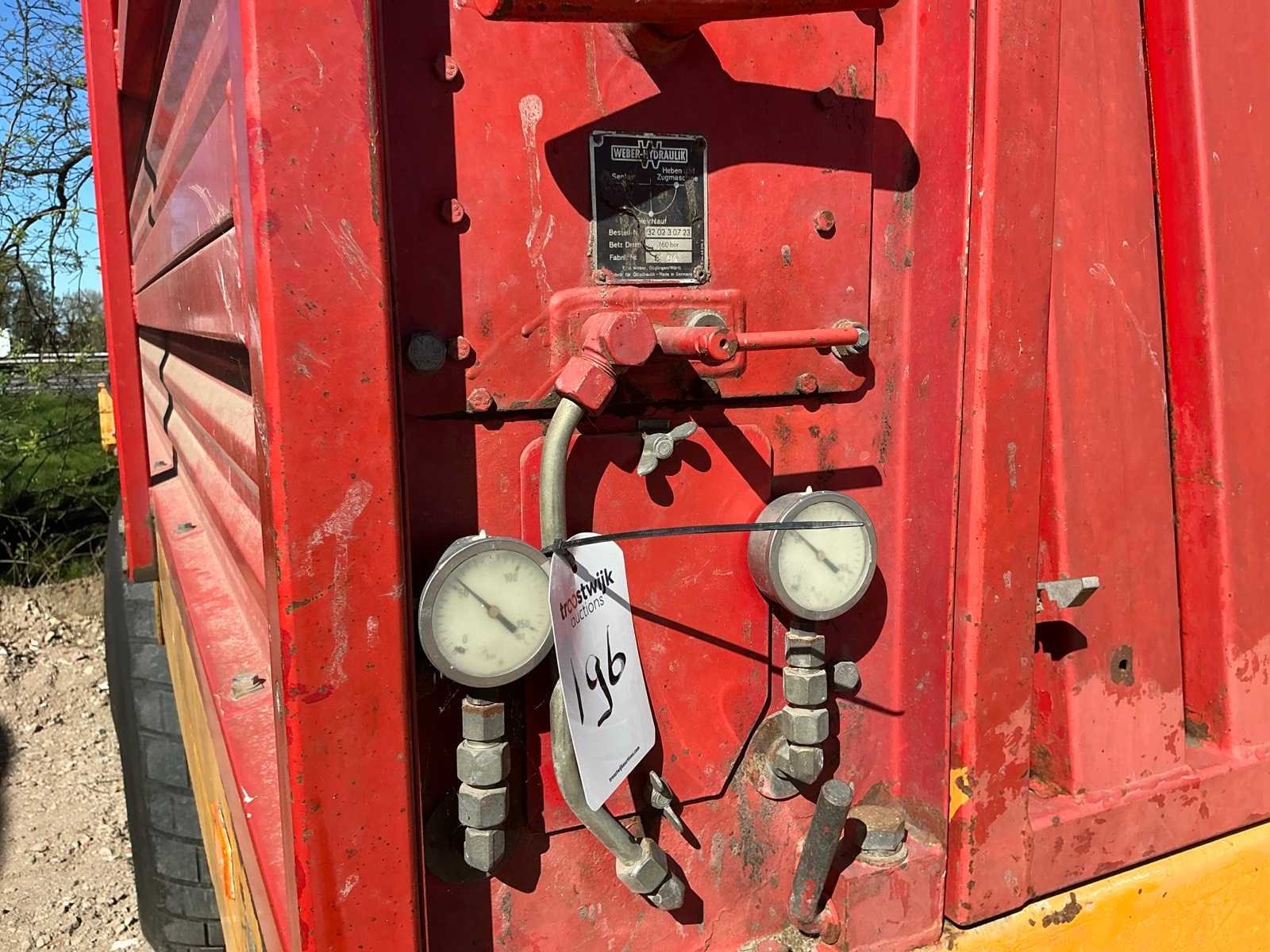 Hydraulische losklep, hydraulisch geremd Merk: Schuitemaker Type: Rapide 125 Bouwjaar: 1994 Serienummer: 125.0303 Kenteken: LFL-36-J Opslagcapaciteit: 34 Bandenmaat: 525/65R20.5 Maximaal aantal messen: 40 Stuuras: true Eigen gewicht: 6090 Totale afmeting L: 7500 Totale afmeting Breedte: 2500 Totale afmeting Hoogte: 3800