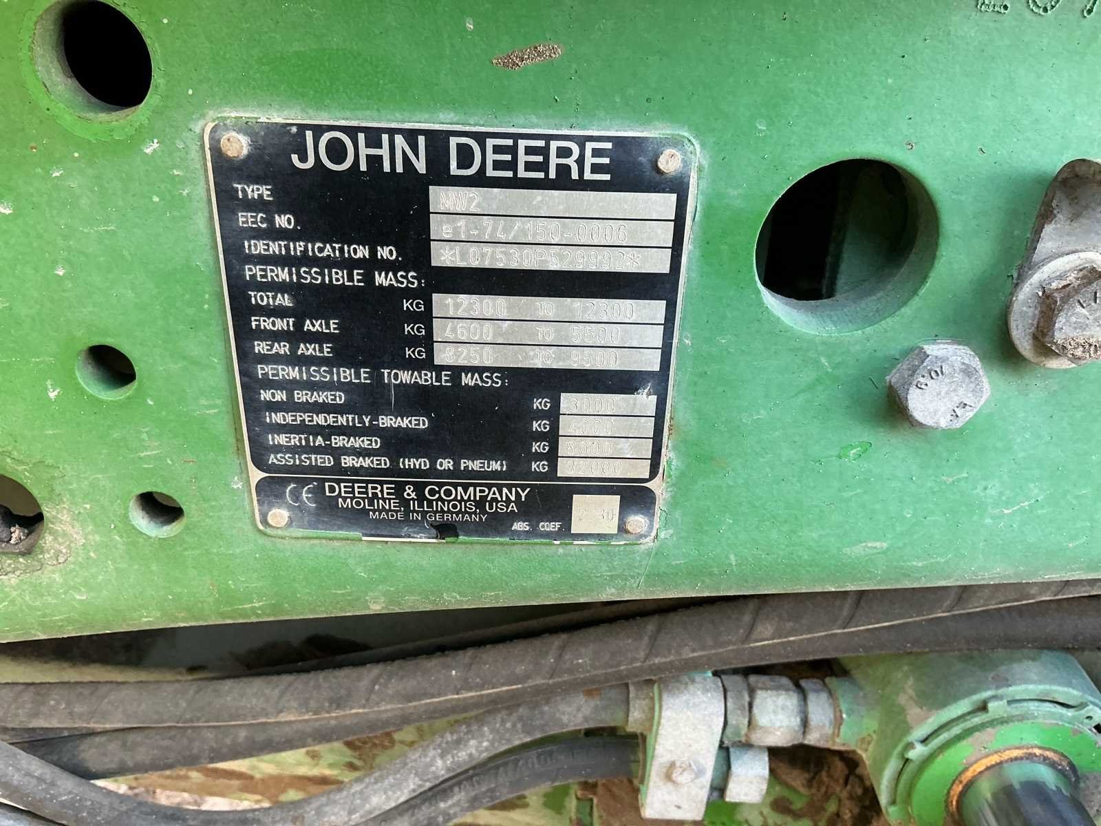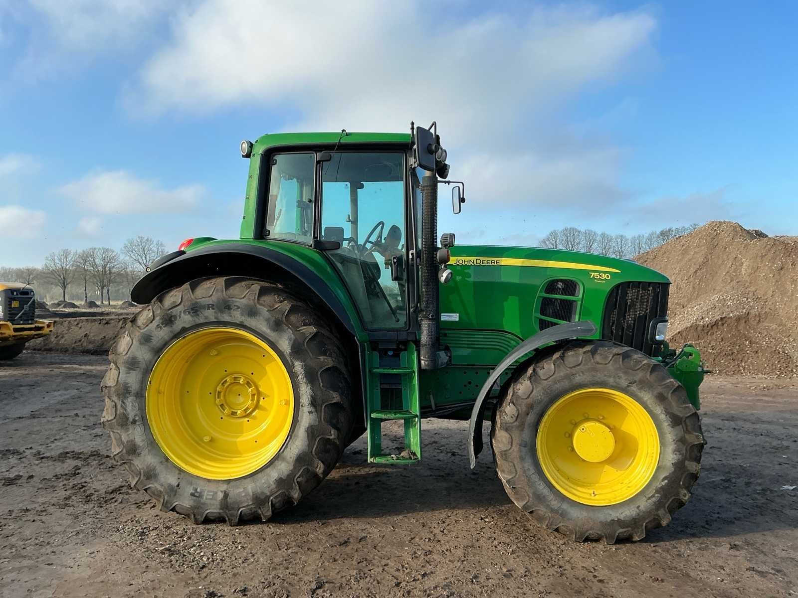 Cabine ophanging 20/20 bak 1x dubbelwerkend hydraulisch ventiel voor 3x dubbelwerkend hydraulisch ventiel achter Stroomaansluiting voor Voorbanden: 540/65R30 Achterband: 650/65R42 Loadsensing Hydraulisch rem ventiel Ondertrekhaak Topstang Scherm werk niet naar behoren, Urenstand is recent Geen kenteken registratie Merk: John Deere Type: 7530 Bouwjaar: 2008 Serienummer: L07530P529992 Motorvermogen (kW): 156kW Afgelezen urenstand: 13503 Versnellingsbaktype: Automaat 20/20 Aantal hydraulische ventielen voor: 1 Aantal hydraulische ventielen achter: 3 Bandenmaat voor: 28 Bandenmaat achter: 38 Load sensing: true Fronthefinrichting: true Frontaftakas: true Cabine: true Luchtgeveerde stoel: true Eigen gewicht: 6800kg Totale afmeting L: 4800mm Totale afmeting Breedte: 2380mm Totale afmeting Hoogte: 3050mm Zelf rijdend exporteren: Niet mogelijk No self drive export!: true