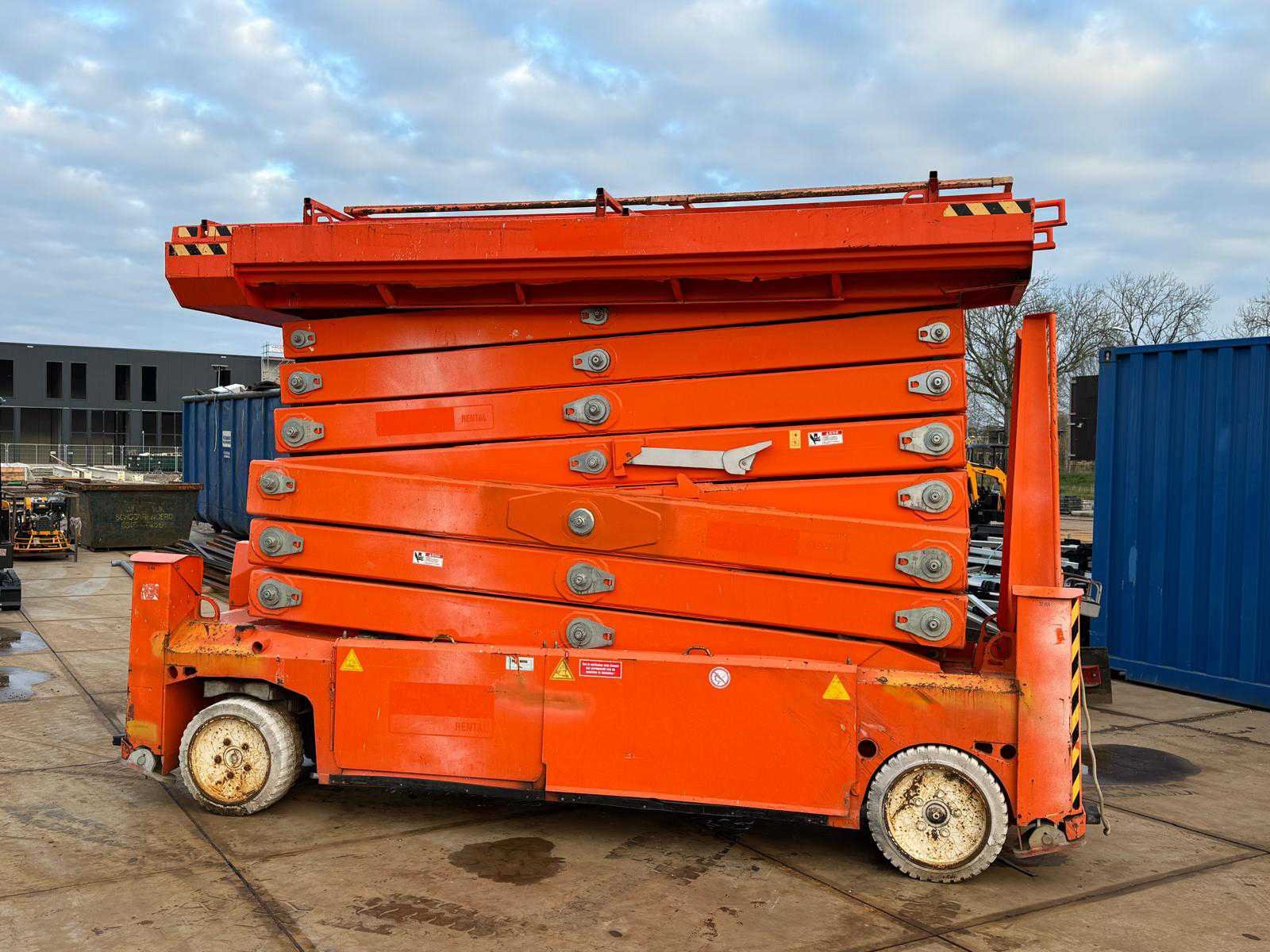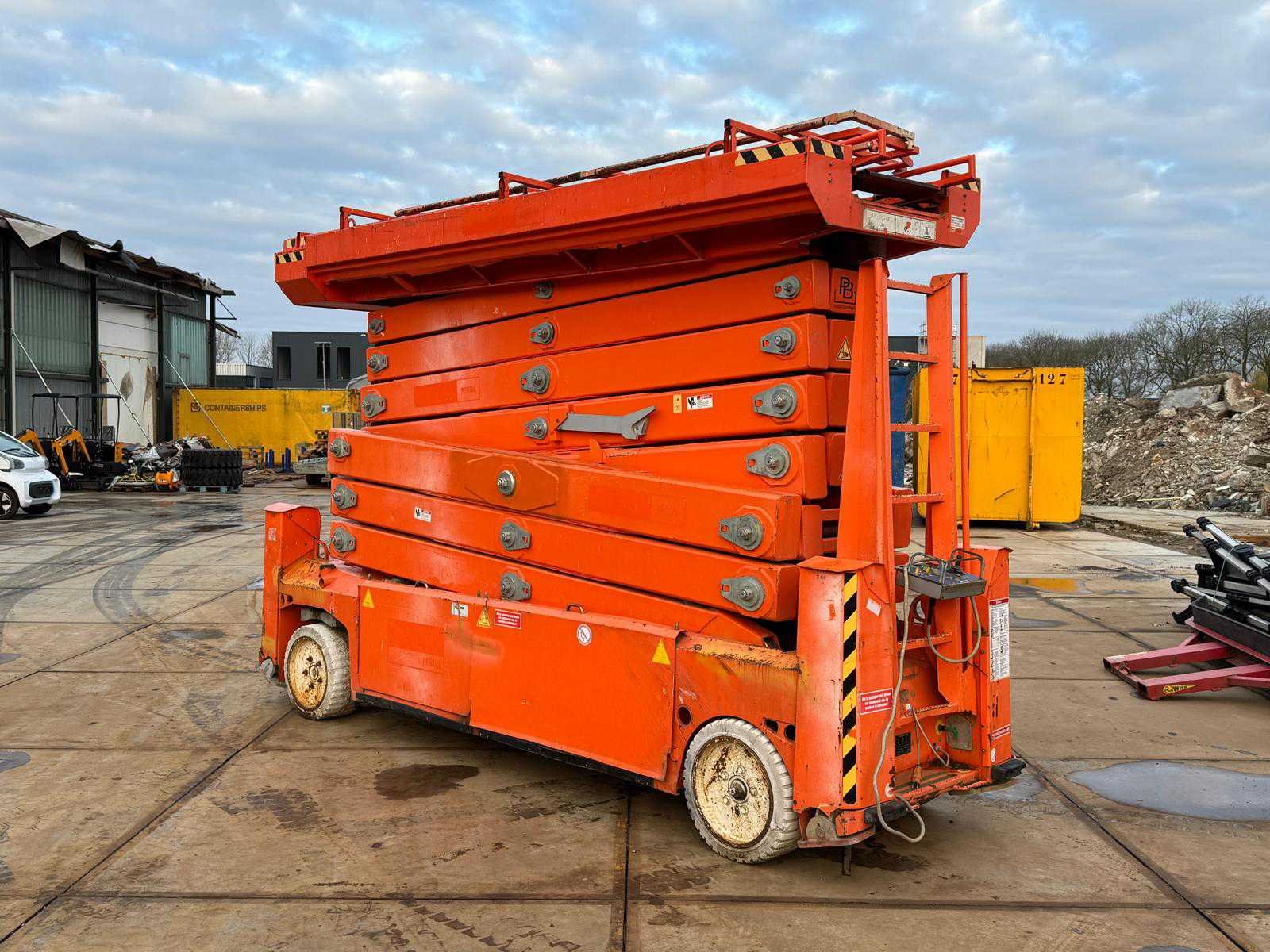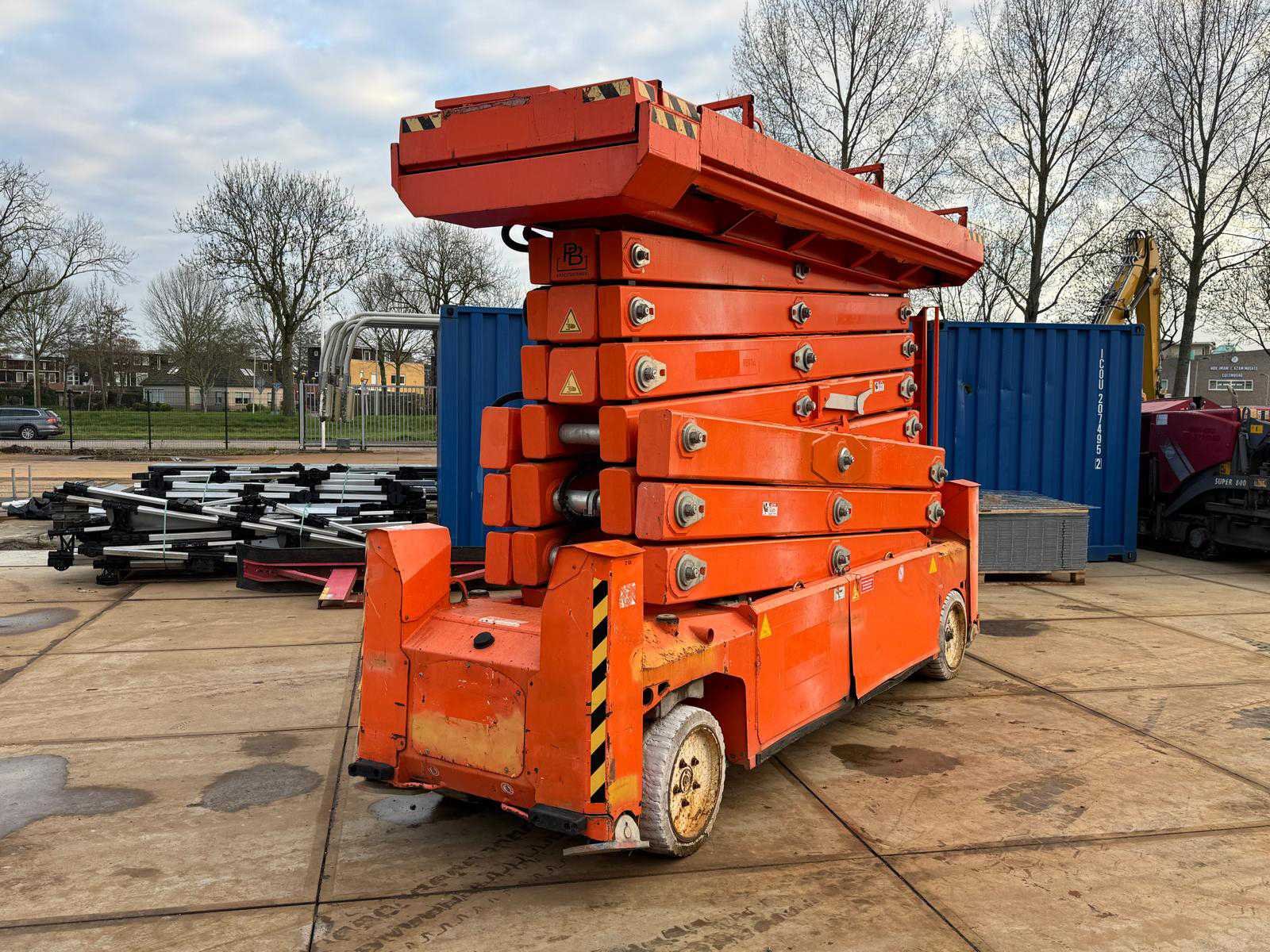 Platform capaciteit 450/600 kg.; afmetingen 44900x12200x26000; eigen gewicht 10.290 kg.; let op: accu is leeg en is niet getest. Merk: PB Type: S225-12 ES Bouwjaar: 2015 Serienummer: 12225.1224 Elektrisch: true Schaarhoogwerker: true Werkhoogte: 22500mm