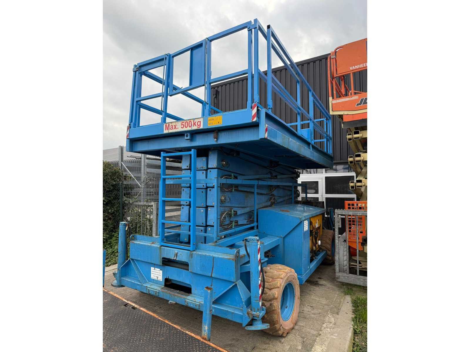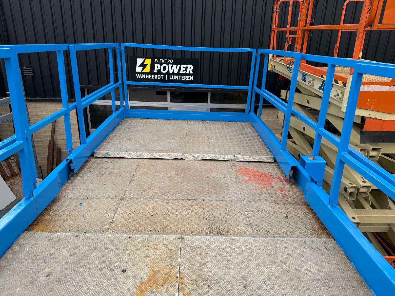 Płatform afmeting BxL 2,30x4,37; terreinbanden; dubbelen uitschuifplatform; waterpasmeting voor rijden zonder stempełen; nivelleringsstempel; onderhoudsbeurt gehad; Merk: Holland Lift Type: Combistar 4WD Bouwjaar: 2006 Diesel: true Motorvermogen (kW): 35.9kW Schaarhoogwerker: true Werkhoogte: 19500mm Platform capaciteit: 500kg Eigen gewicht: 12270kg