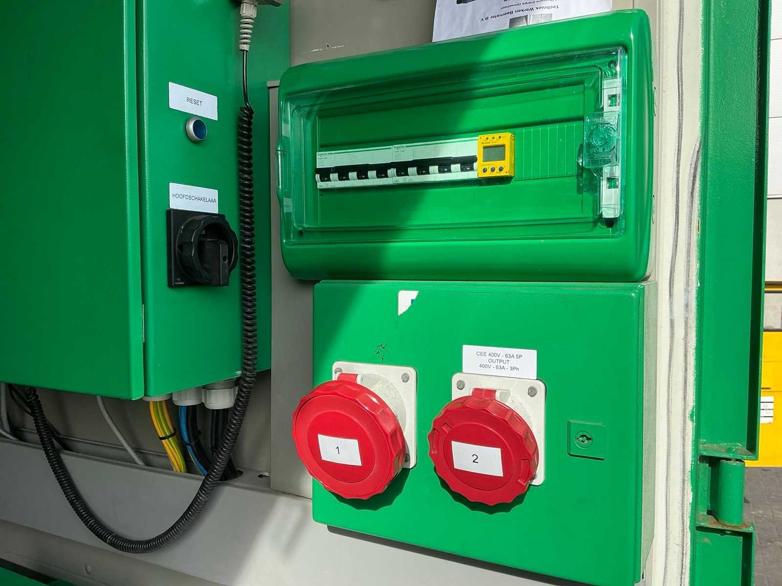 Gebouwd in container voorzien van opgebouwde zonnepanelen elektrisch uitklapbaar, 3x “Victron Energy” omvormer / lader type Quattro 48V/15000VA/200Amp, 1x “Victron Energy” Smart solar charge controller type MPPT150I85-Tr, centrale besturingskast met “Siemens” en “ Victron Energy” digitale controllers en 12x lithium batterij Merk: Europower Type: EPS66TDE Capaciteit.: 66kVA Totale afmeting L: 3000mm Totale afmeting Breedte: 2450mm Totale afmeting Hoogte: 3000mm