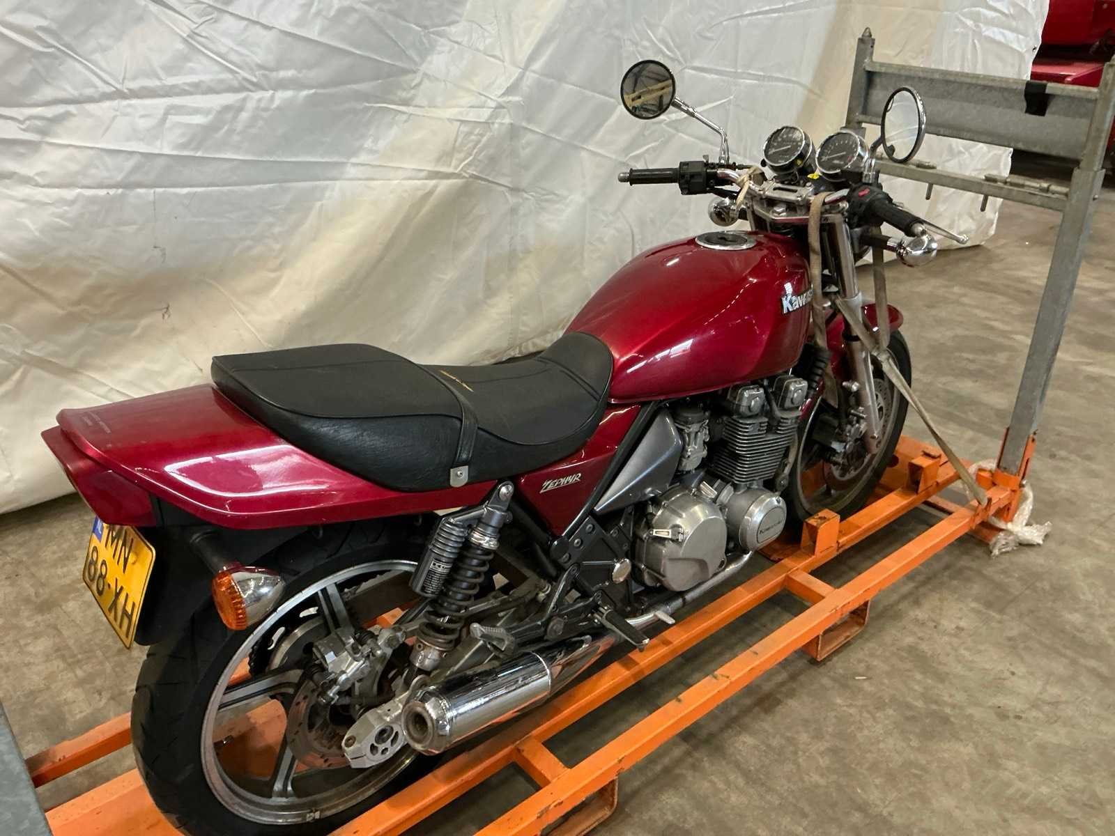 Merk: Kawasaki Model: Tour Type: ZEPHYR 550 Kenteken: MN-88-XH Brandstof: benzine Chassisnummer: ZR550B-012940 Cilinderinhoud: 553cc Datum eerste toelating: 1995-05-24 Vermogen (kW): 35kW Kleur: niet van toepassing Afgelezen kilometerstand: 30540km Transmissie: Voetgeschakeld Datum eerste toelating (NL): 1995-05-24 Bruto BPM (NL): 556€ Rest BPM: 0€ Bouwjaar: 1995