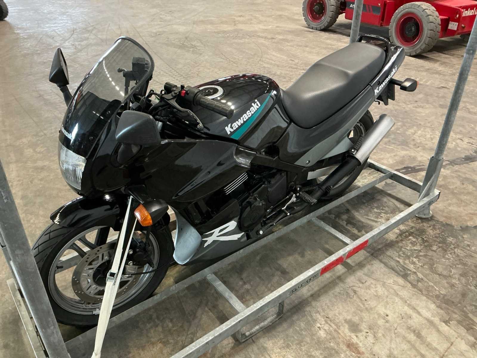 Merk: Kawasaki Model: Sport Type: GPZ 500 S Kenteken: MP-25-TJ Brandstof: benzine Chassisnummer: JKAEXVA18MAS54453 Cilinderinhoud: 498cc Datum eerste toelating: 1991-06-30 Vermogen (kW): 44kW Kleur: niet van toepassing Afgelezen kilometerstand: 1083km Transmissie: Voetgeschakeld Datum eerste toelating (NL): 1993-06-22 Bruto BPM (NL): 0€