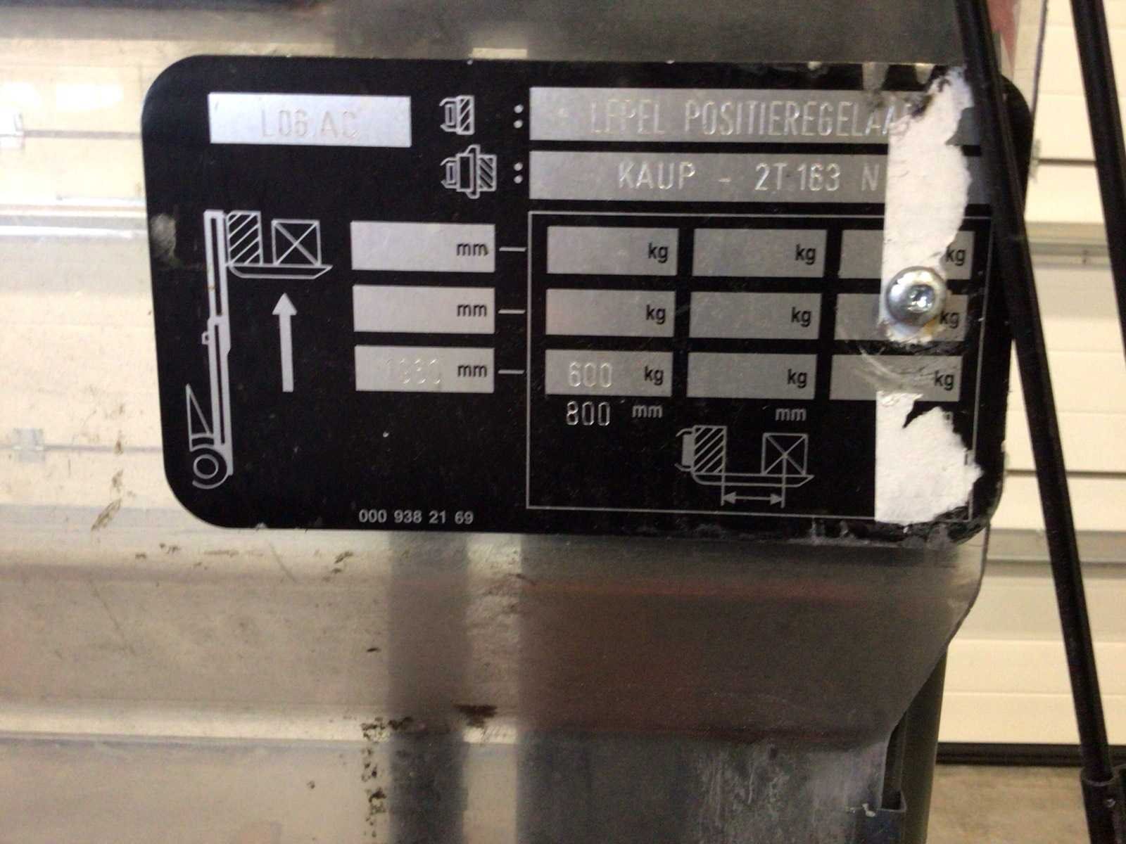 Merk: Linde Type: L06.AC Bouwjaar: 2013 Serienummer: W41170D00244 Hefvermogen: 600kg Hefhoogte: 1960mm Lepellengte: 1100mm Afgelezen urenstand: 5153 Eigen gewicht: 2000kg Minimale doorrijhoogte: 1500mm Totale afmeting L: 2700mm Totale afmeting Breedte: 800mm Totale afmeting Hoogte: 1500mm Meerij stapelaar: true Accu lader: true