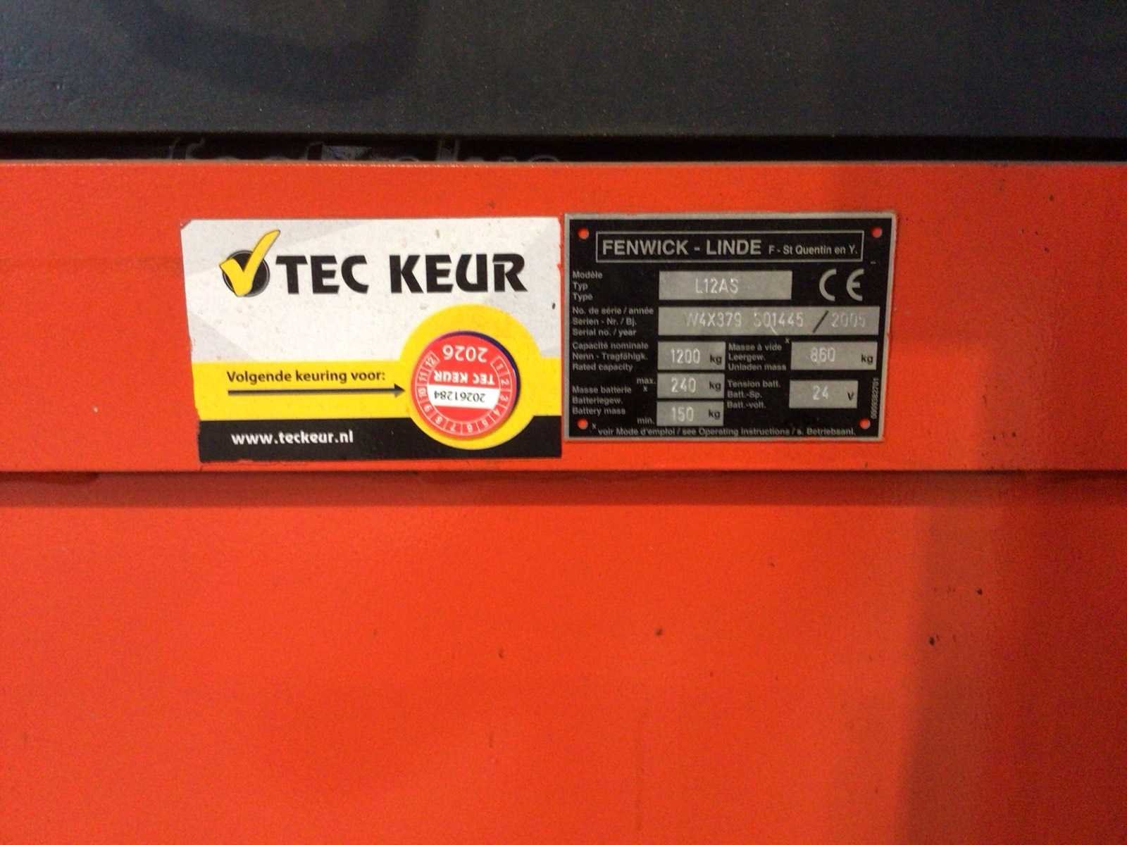 Merk: Linde Type: L12AS Bouwjaar: 2005 Serienummer: W4X379S01445 Hefvermogen: 1200kg Hefhoogte: 1964mm Lepellengte: 1300mm Afgelezen urenstand: 538 Eigen gewicht: 1000kg Minimale doorrijhoogte: 2000mm Totale afmeting L: 2100mm Totale afmeting Breedte: 1650mm Totale afmeting Hoogte: 2000mm Accu lader: true