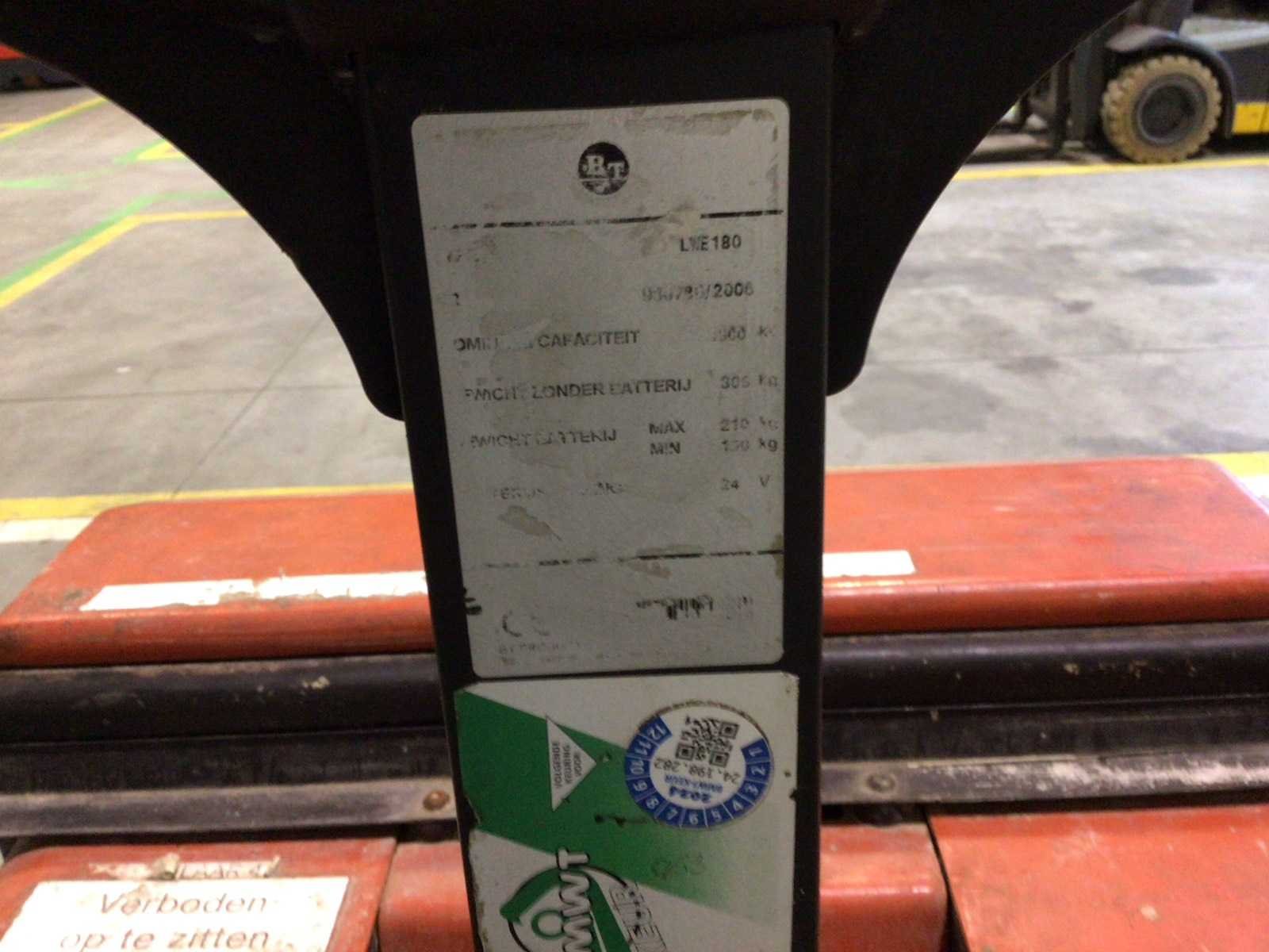 Merk: BT Type: LWE180 Bouwjaar: 2006 Serienummer: 938786/2006 Hefvermogen: 1800kg Lepellengte: 1000mm Accu lader: true Eigen gewicht: 500kg Totale afmeting L: 1750mm Totale afmeting Breedte: 750mm Totale afmeting Hoogte: 1400mm