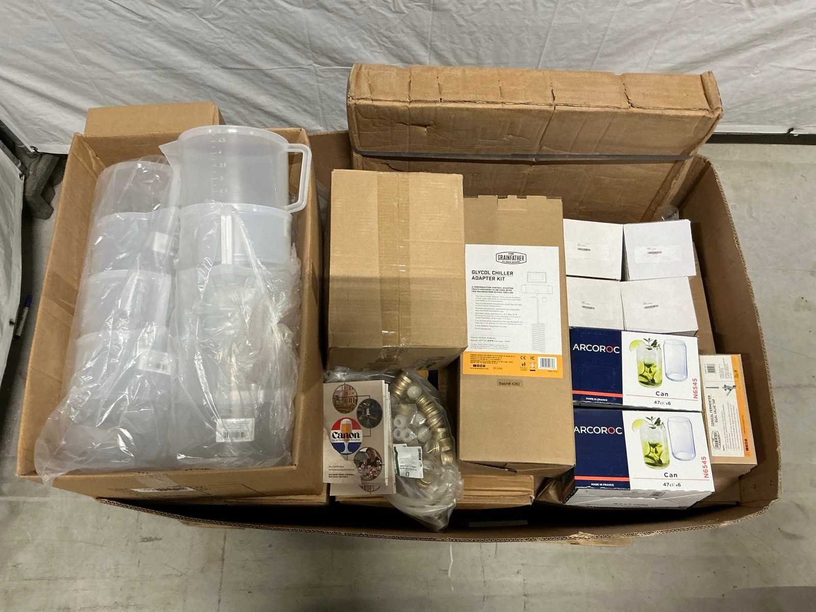 Dit betreft een mixpallet met bierbrouwbenodigdheden. De pallet bevat diverse producten voor het brouwen van bier. De artikelen kunnen nieuw zijn, licht beschadigd of kapot. Merk: Mix Pallet