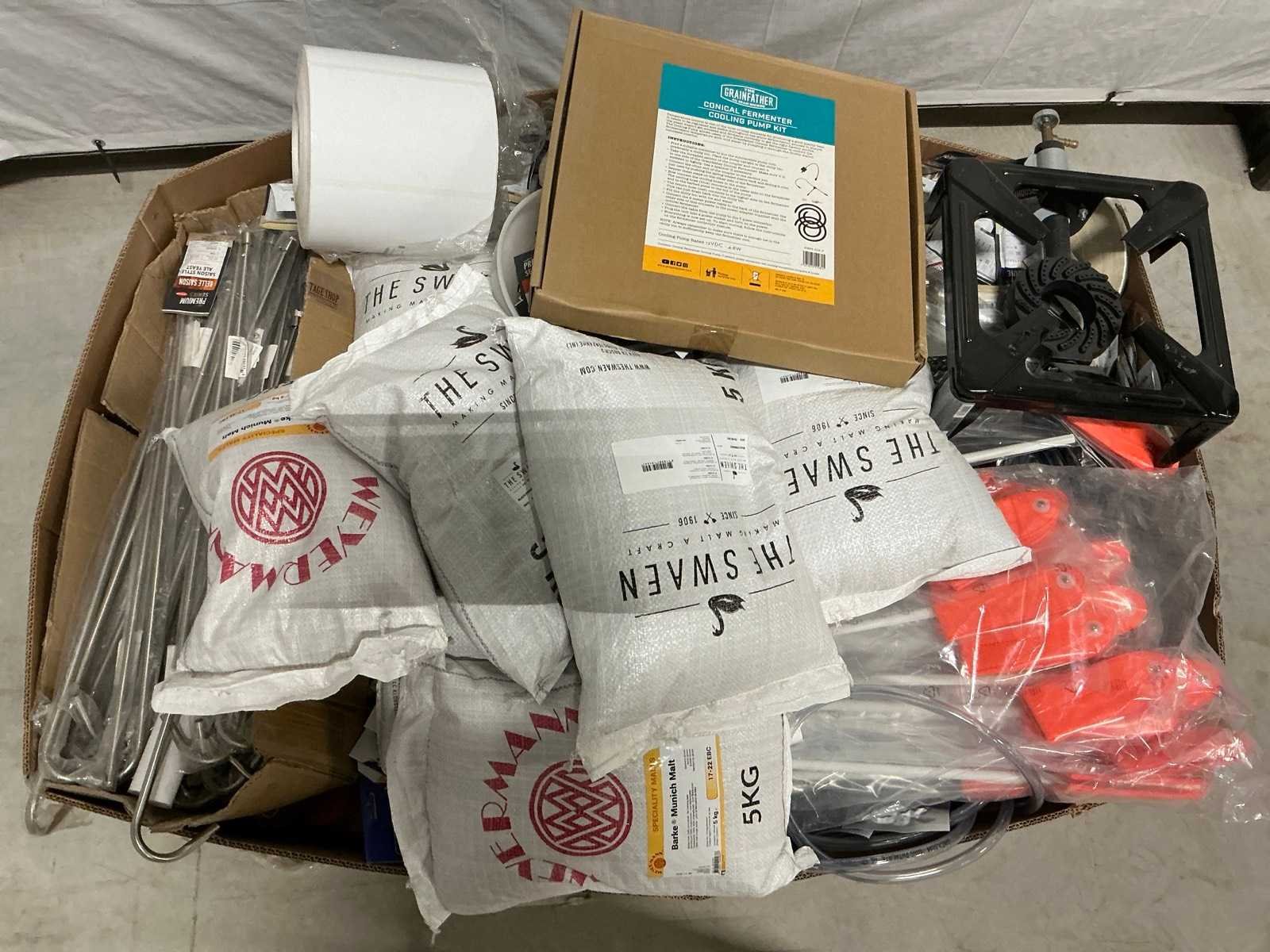Dit betreft een mixpallet met bierbrouwbenodigdheden. De pallet bevat diverse producten voor het brouwen van bier. De artikelen kunnen nieuw zijn, licht beschadigd of kapot. Merk: Mix Pallet