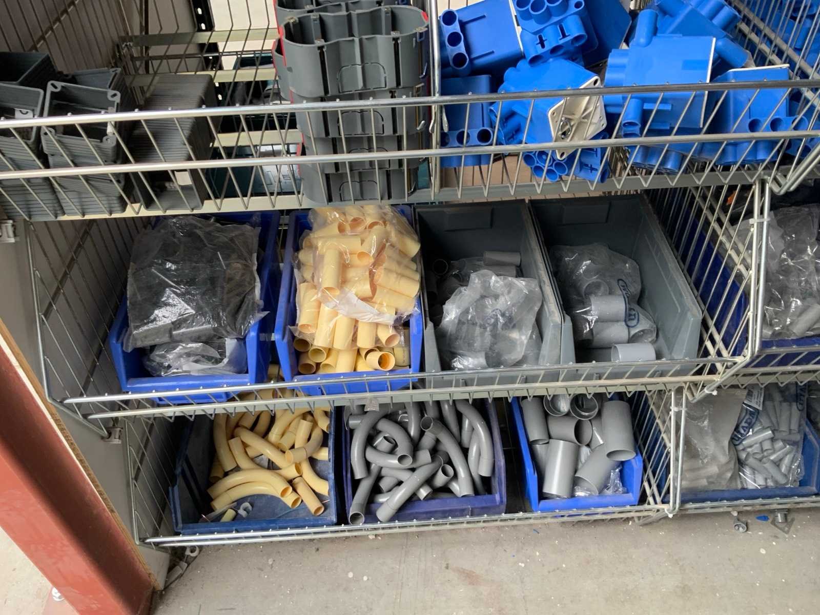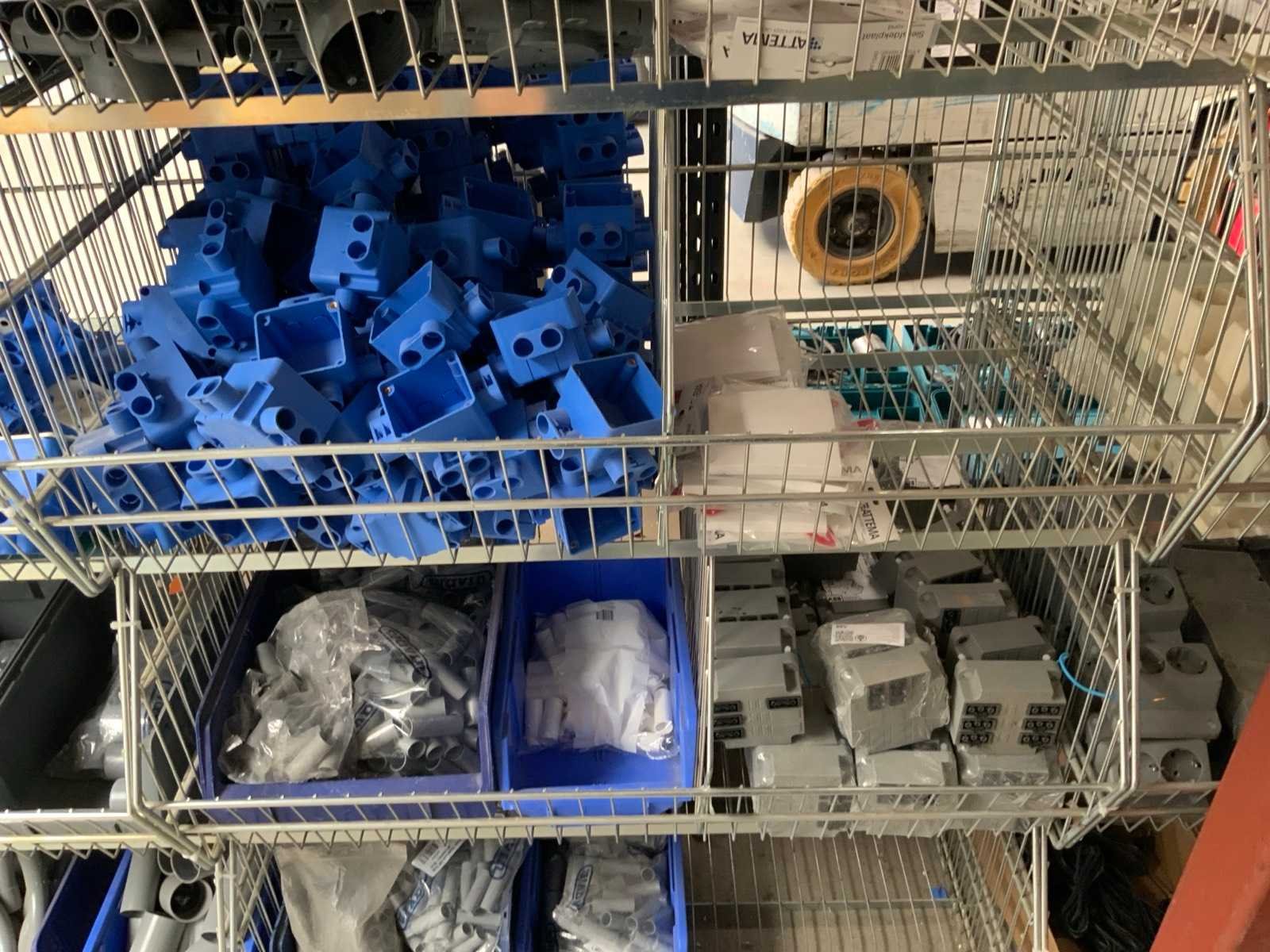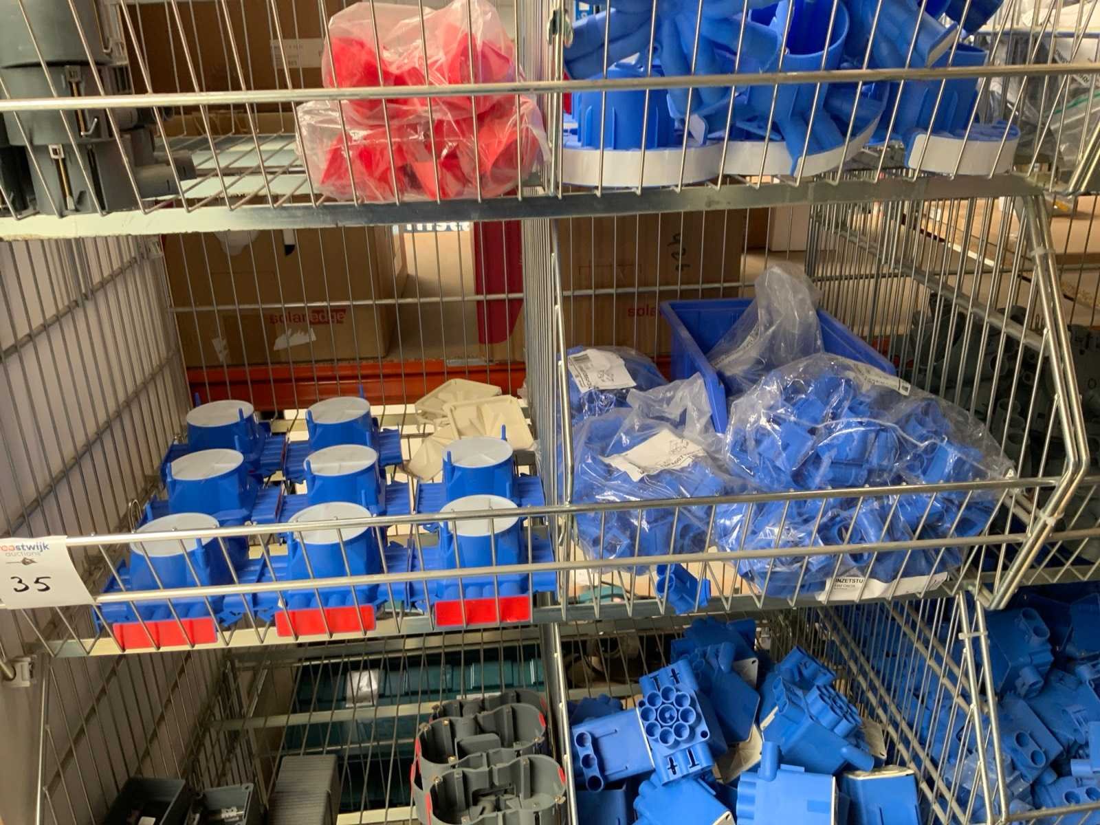 In 15 gaasmanden, waaronder: inbouwdozen, afdekkapjes, pvc sokken, centraaldozen, opbouw stopcontacten, wartels, snoeren met stekker