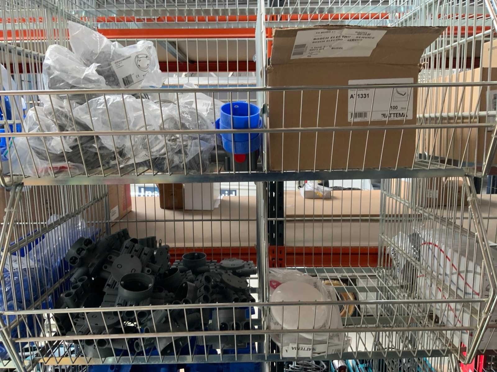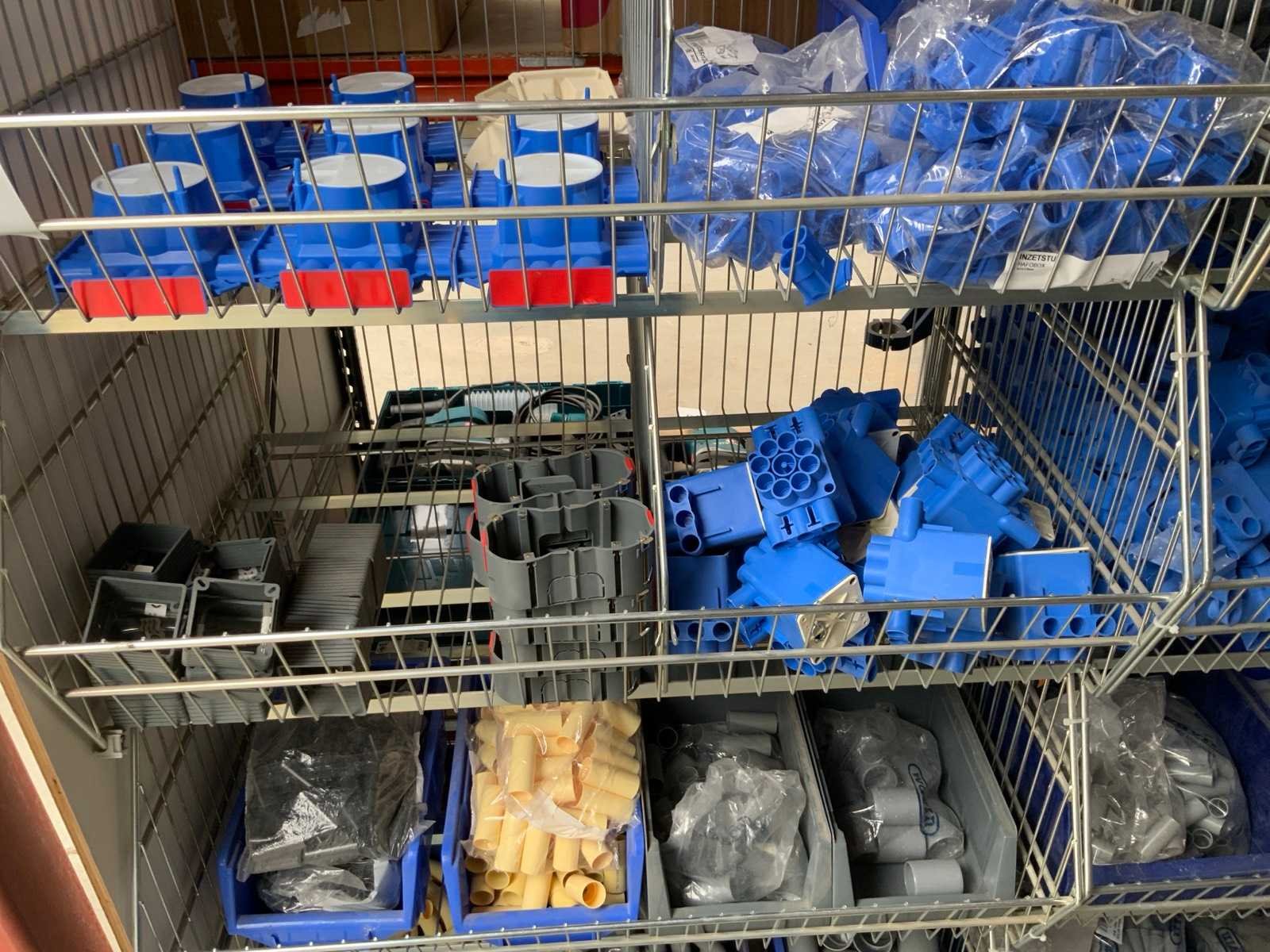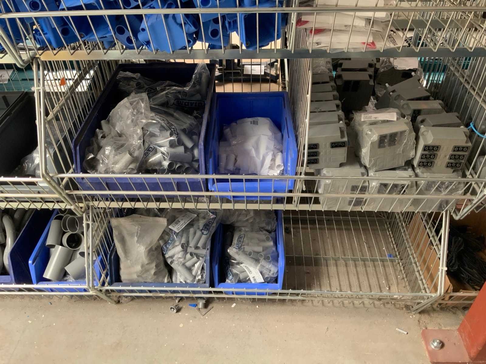 In 15 gaasmanden, waaronder: inbouwdozen, afdekkapjes, pvc sokken, centraaldozen, opbouw stopcontacten, wartels, snoeren met stekker