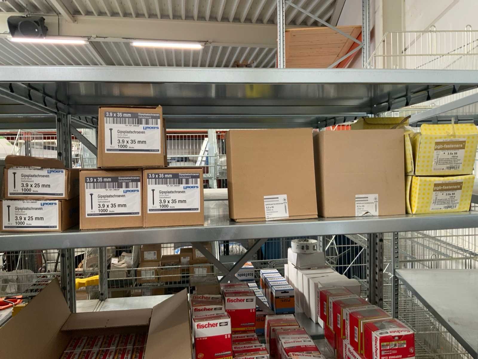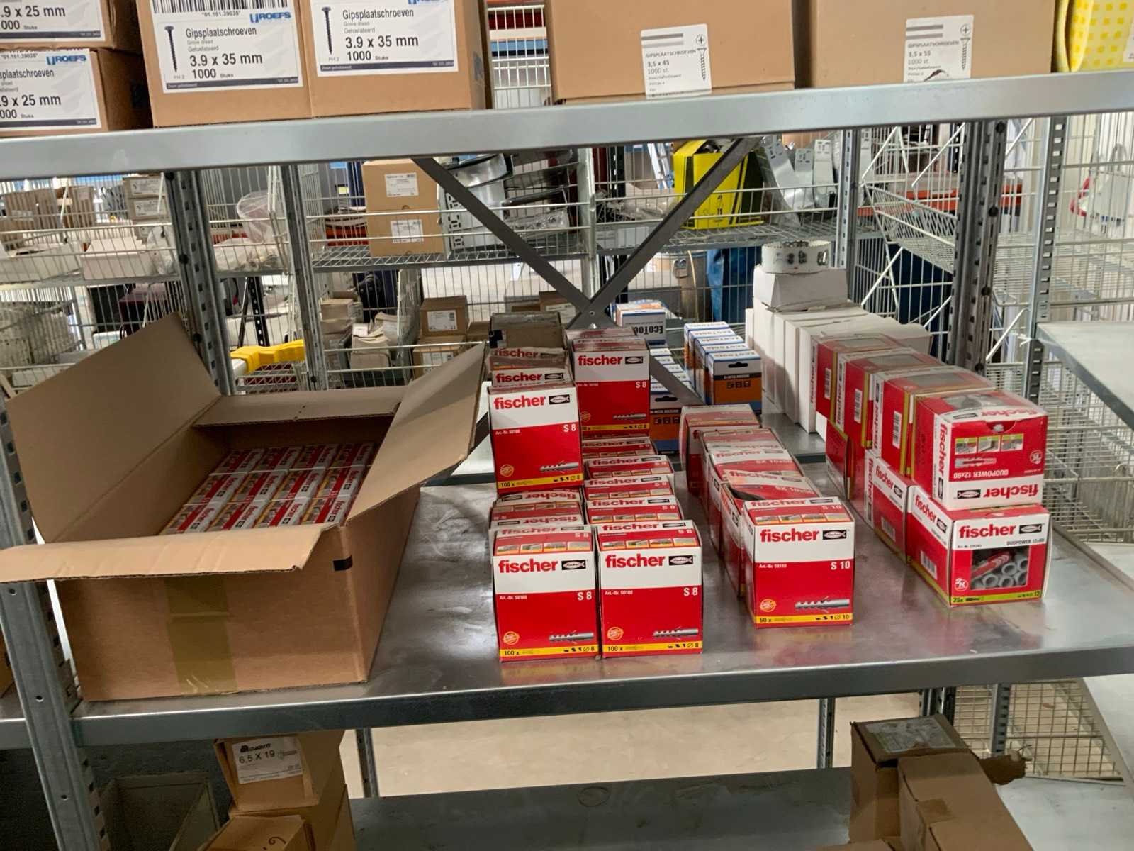 Waaronder: paraplu pluggen, 9 dozen gipsplaatschroeven, 56 doosjes met Fischer pluggen diverse afmetingen. verdeeld in 9 vakken Merk: Schnabl