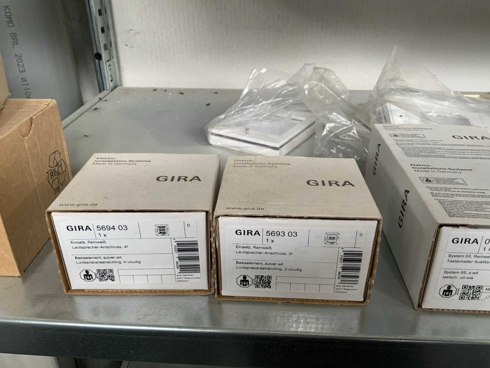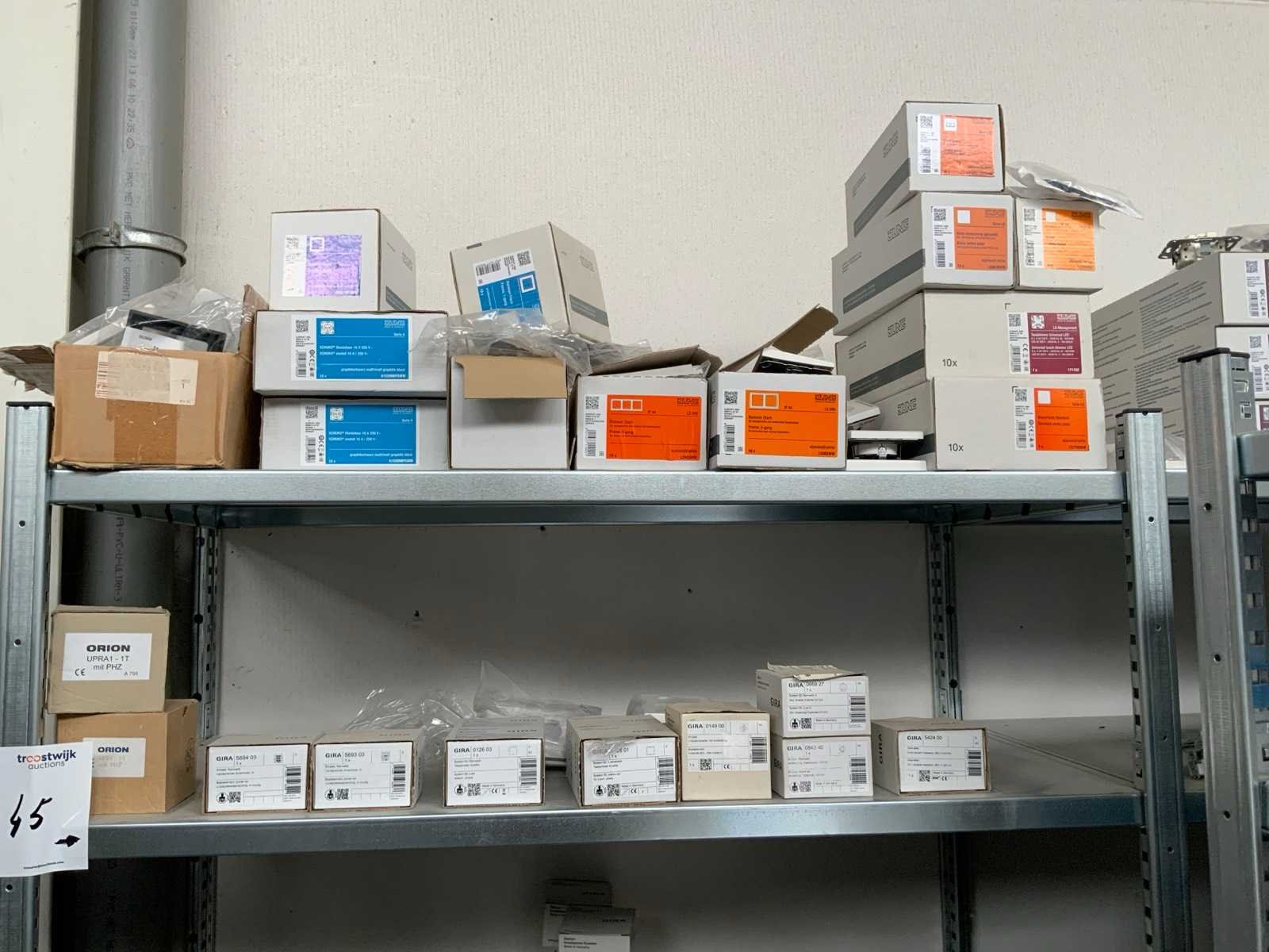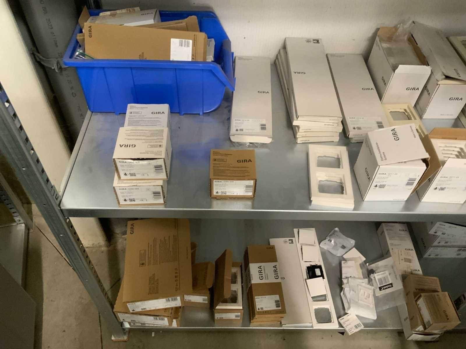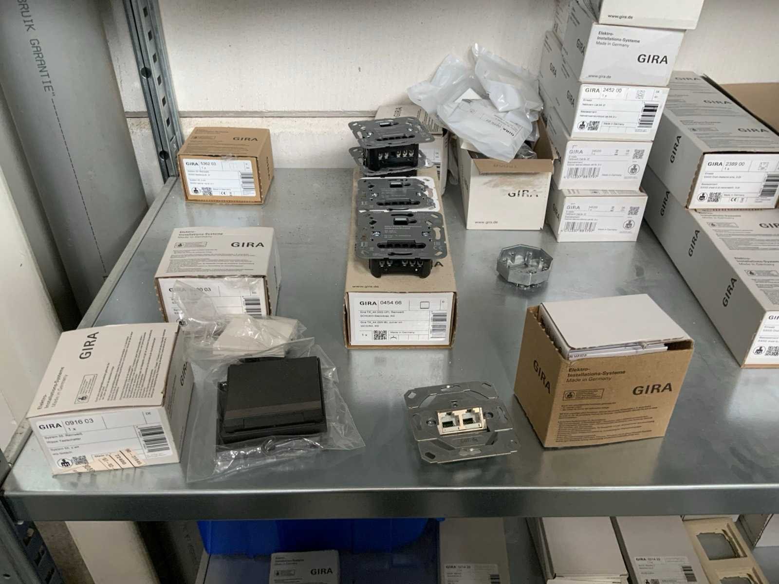 Waaronder: Gira installatie materiaal, opdekplaatjes. Verdeeld op 5 schappen