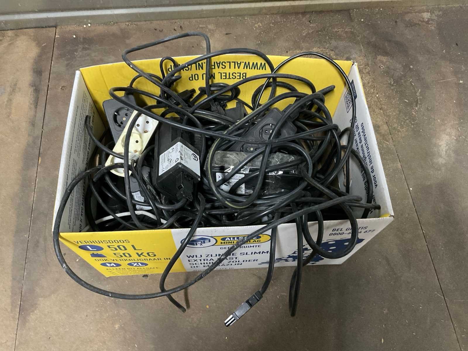 Diverse niet uitgezochte kabels, snoeren en stekkerdozen Merk: Divers Model: Divers Kleur: Divers Materiaal: Plastic