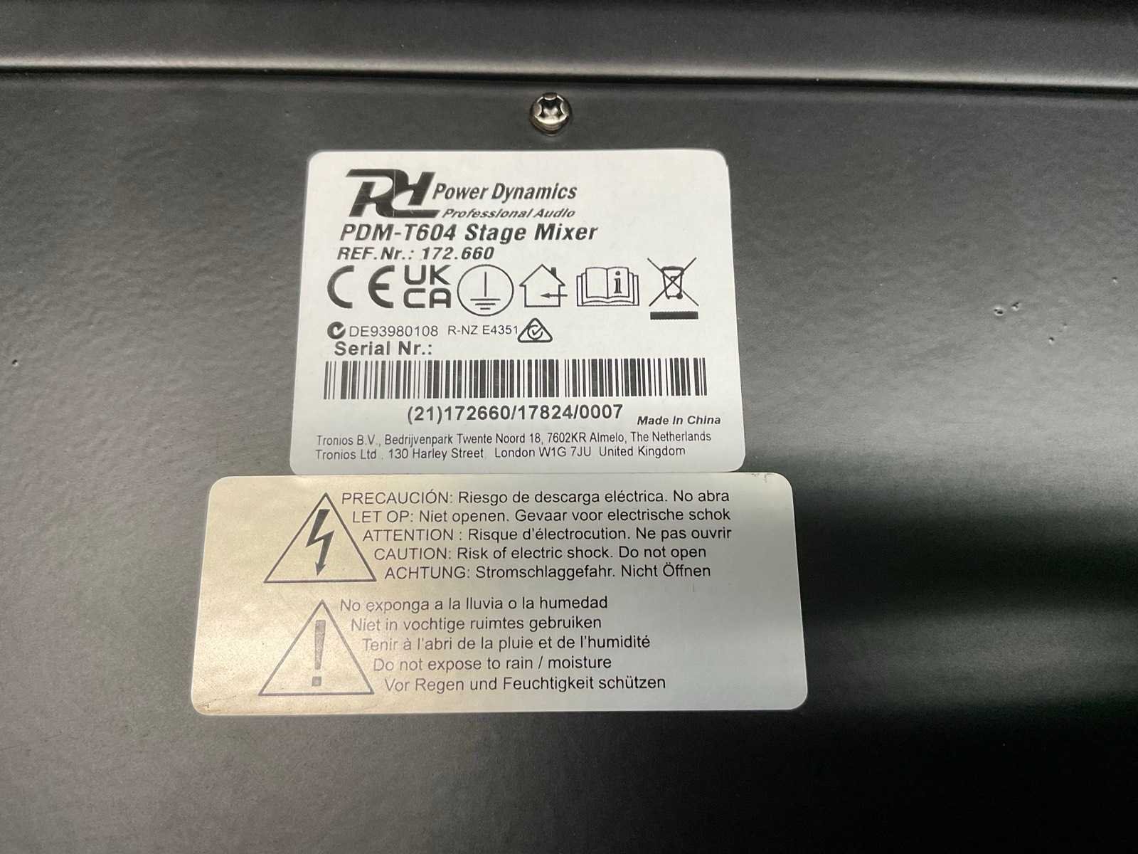 Nieuw in doos Merk: PowerDynamics Model: PDM-T604 Lengte: 40cm Breedte: 35cm Hoogte: 11cm