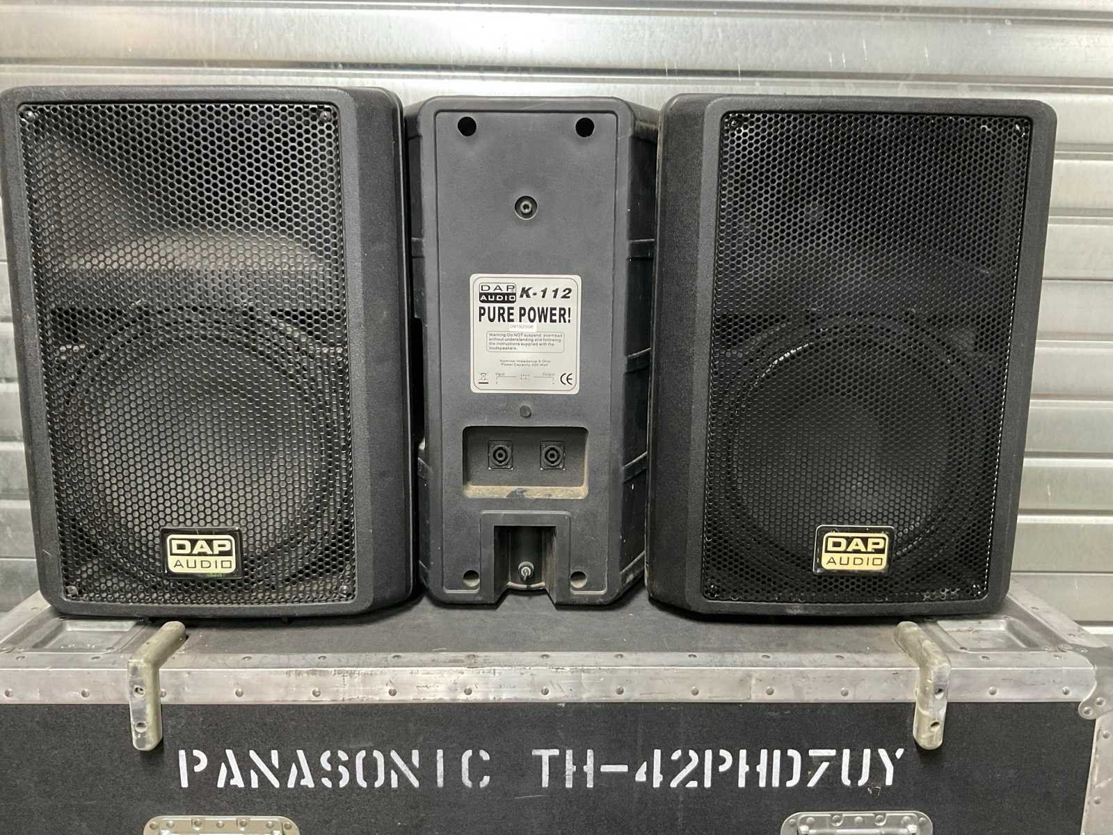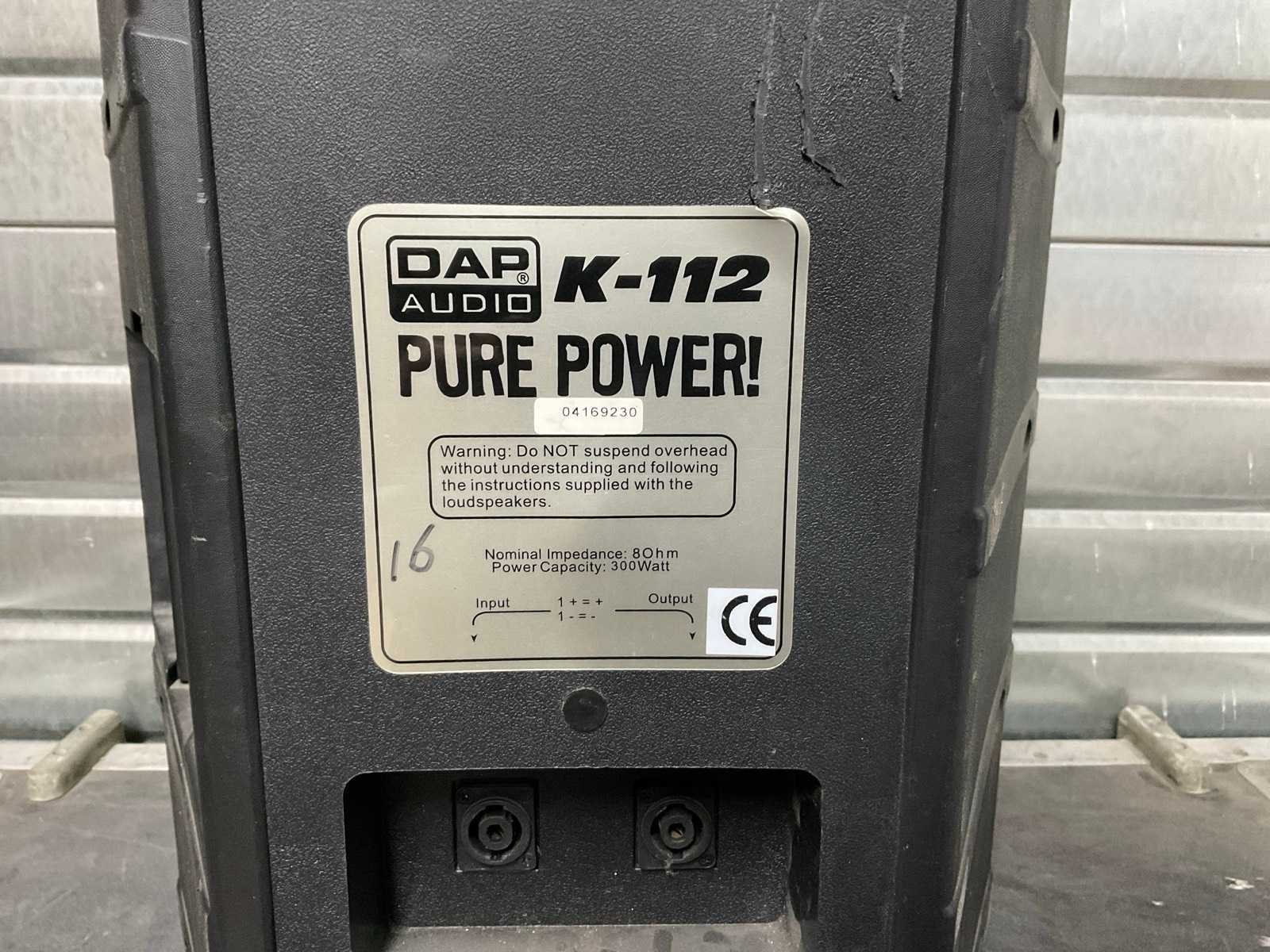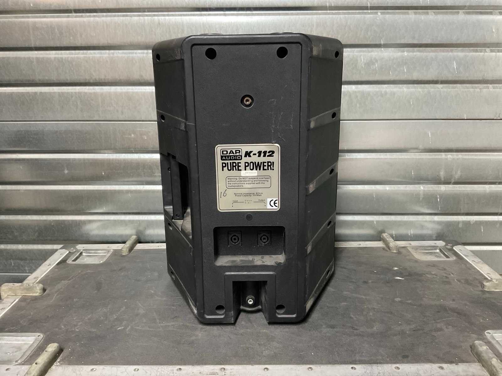Merk: Dap audio 12 inch Model: K112 Kleur: Zwart Lengte: 32cm Breedte: 45cm Hoogte: 58cm Materiaal: Kunststof