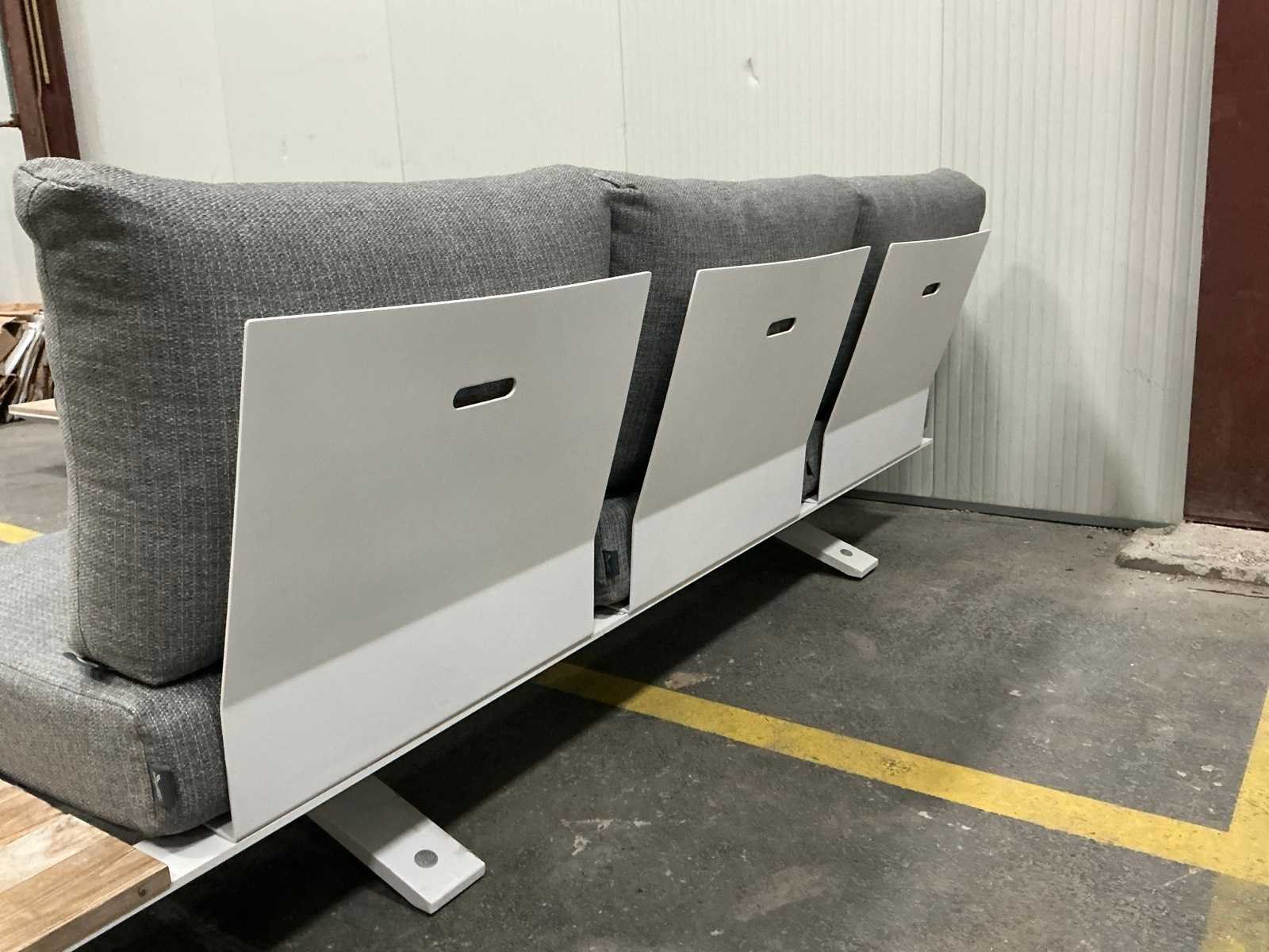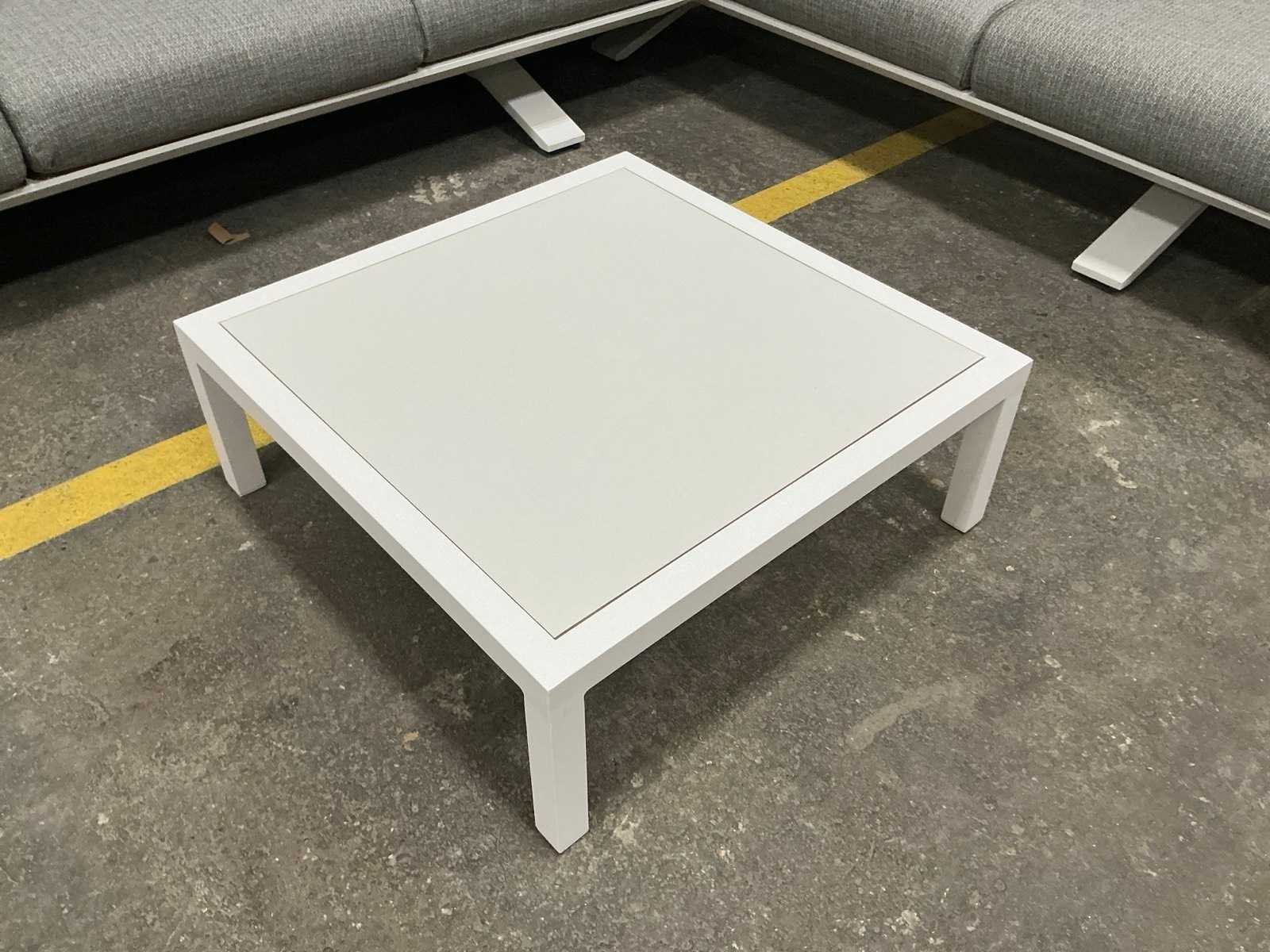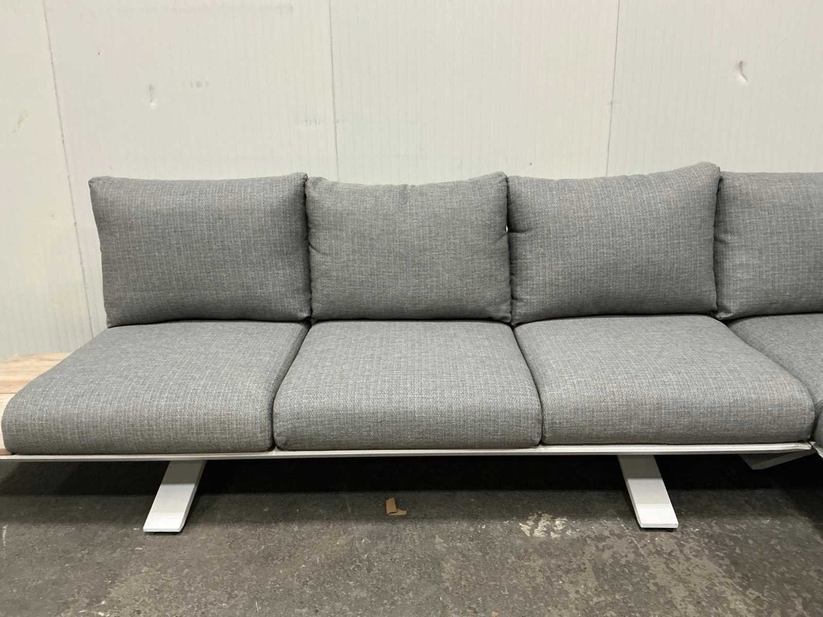 Hoekopstelling 340x260cm; tafel 75x75x27cm; kussens zijn ongebruikt en sunproof Kussens: true Tafel: Ja Kleur: Wit Zithoogte: 27 Materiaal: Aluminium met hout