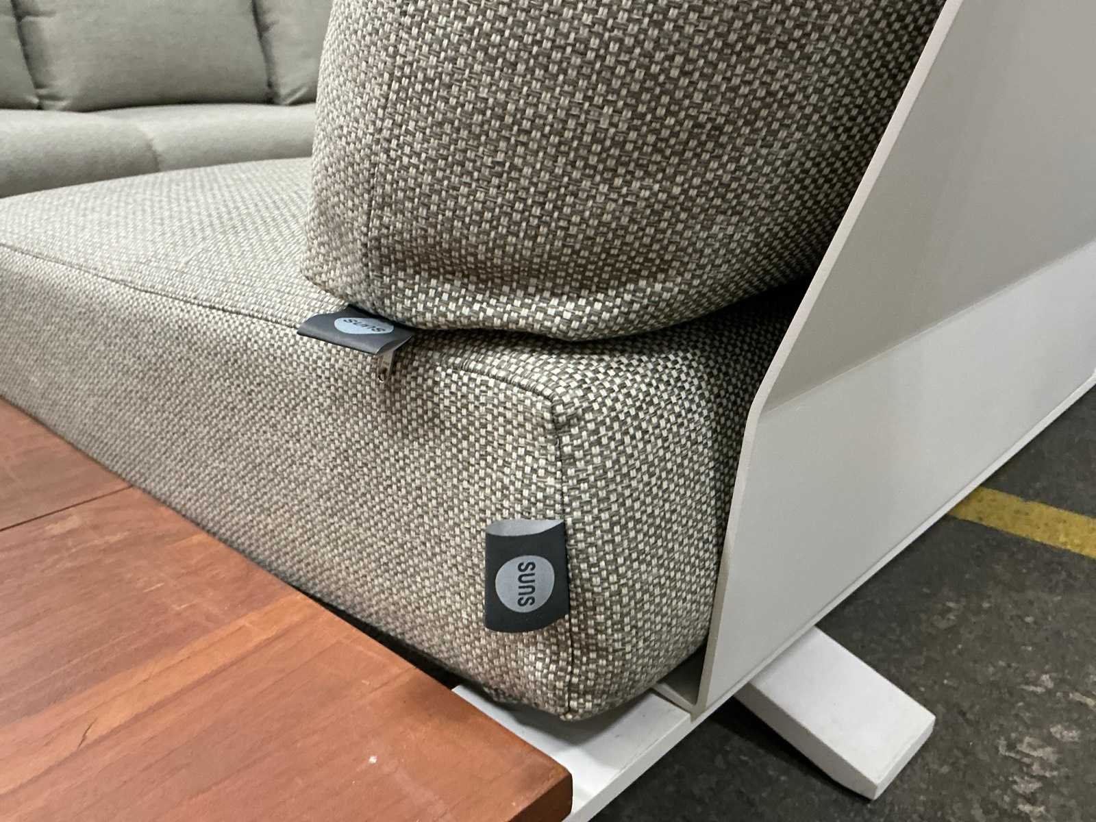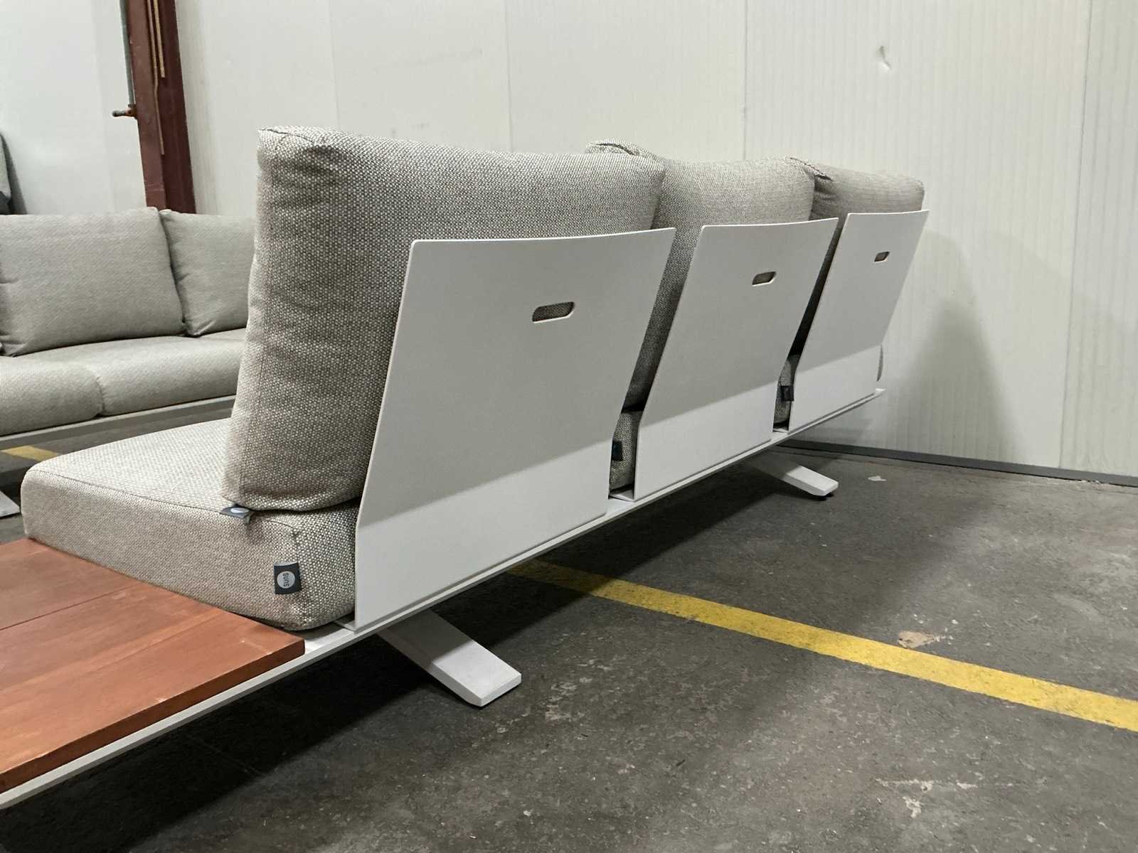 Kussens en rugleuningen zijn ongebruikt en sunproof Kussens: true Stoelen: 0 Kleur: Wit Lengte: 245cm Breedte: 75cm Hoogte: 85cm Zithoogte: 35 Materiaal: Aluminium met hout