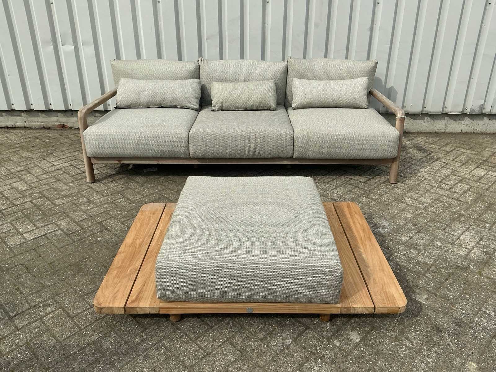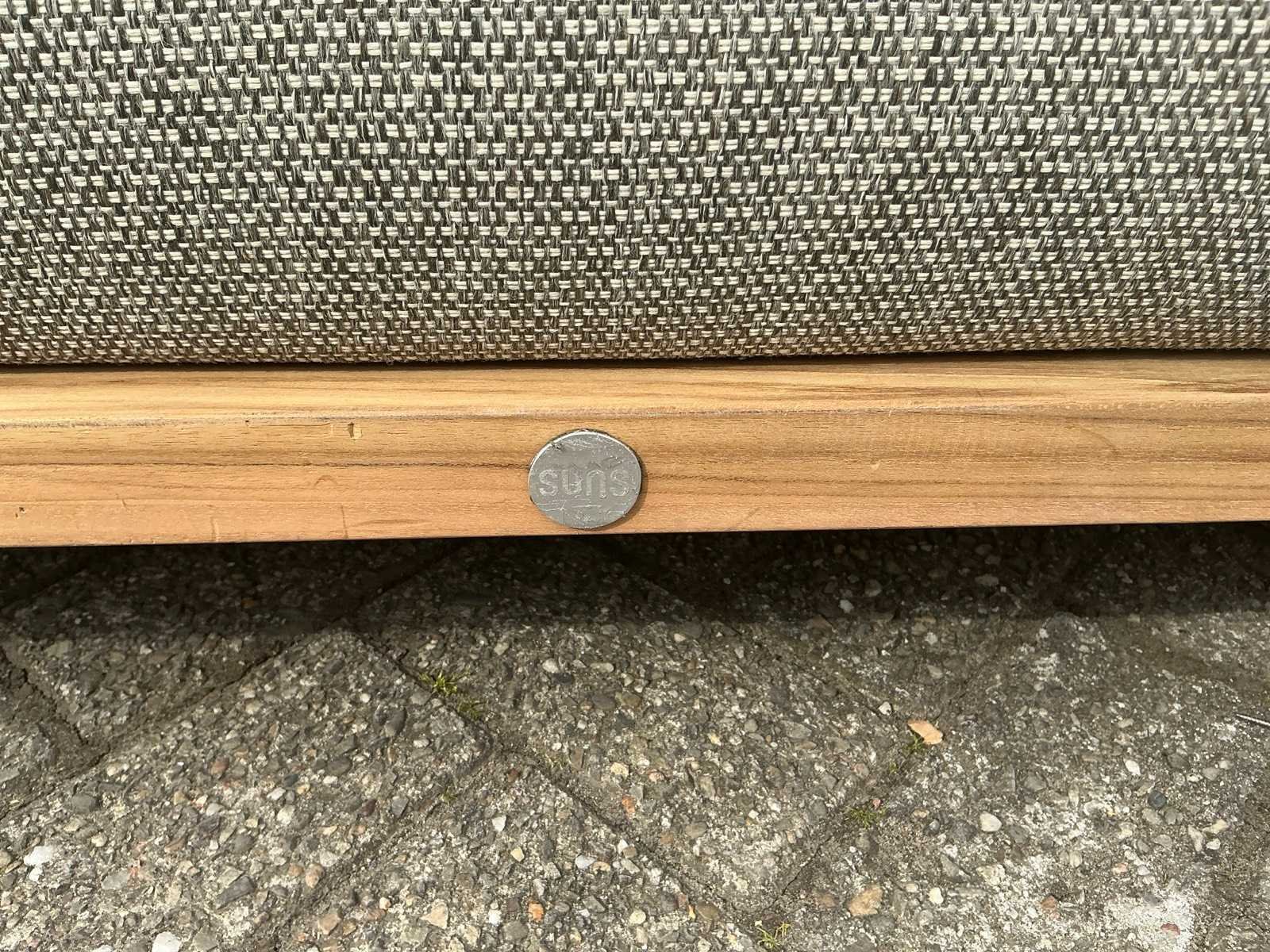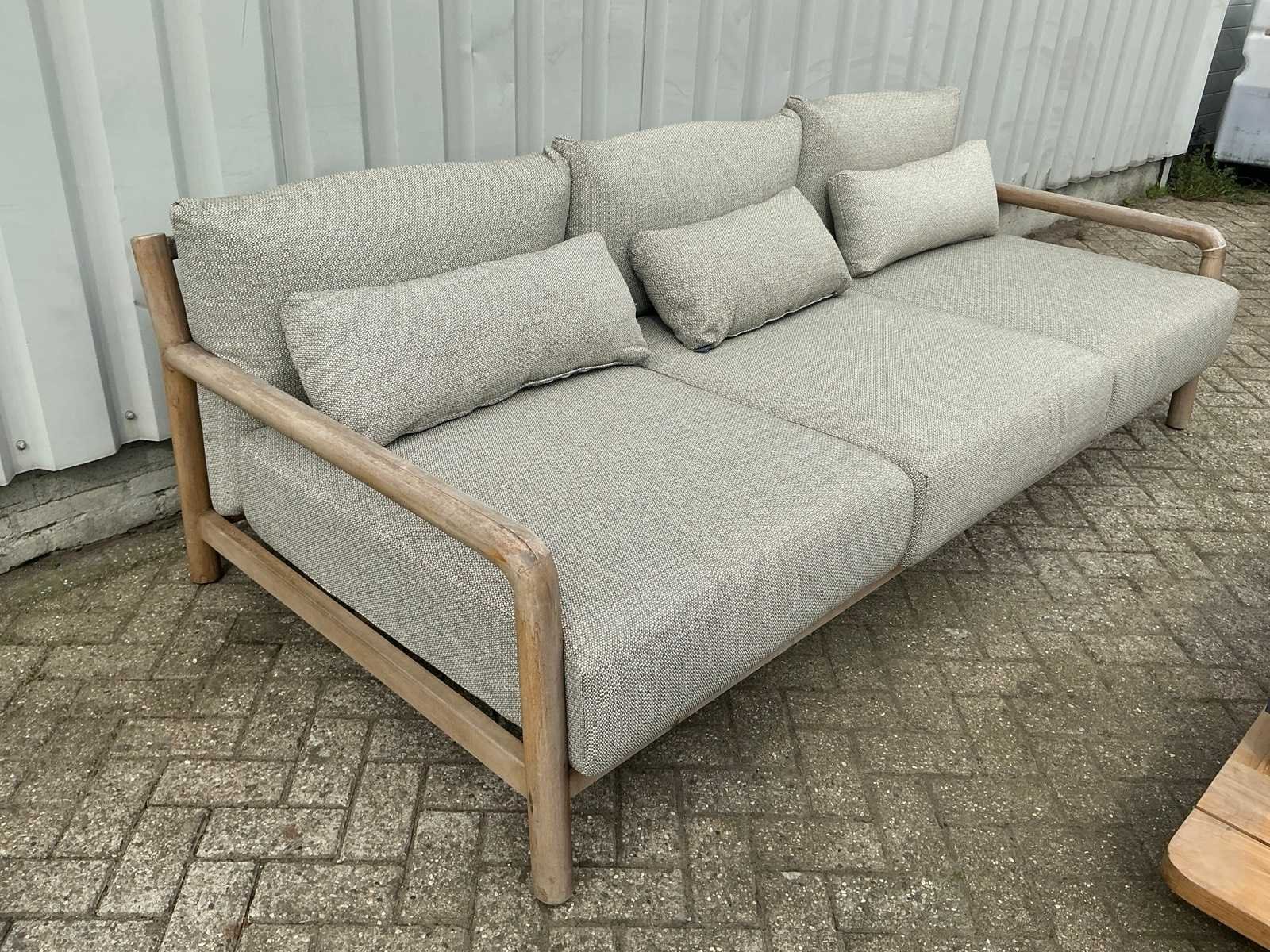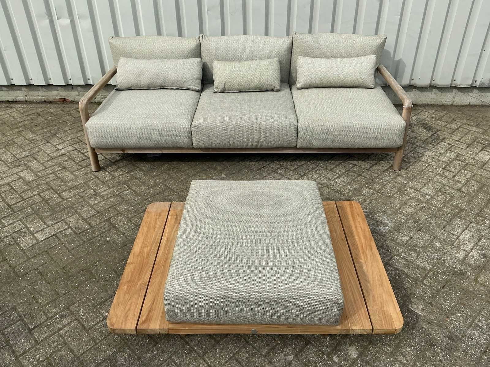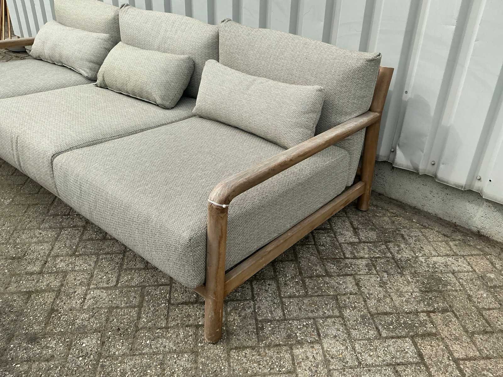 Product beschadigd zie afbeeldingen Kussens horen origineel niet bij deze set, kleuren en maten kunnen afwijken. Kleur: Hout Breedte: 250cm Diepte: 110 Zithoogte: 47 Materiaal: Hout