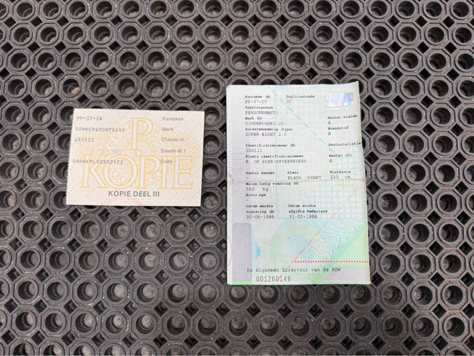 Kenteken: PP-37-ZV Merk: Donkervoort Type: 2.0 S8 Bouwjaar: 1986 Chassisnummer: JD0122 Afgelezen kilometerstand: 98280 Model: S8 Brandstof: Benzine Datum eerste toelating: 1986-05-31 APK vervaldatum: 2026-12-07 Nationaliteit documenten: Nederlands Aandrijving: Achter Transmissie: Handgeschakeld (null) Vermogen (kW): 0kW Emissieklasse: 0 Kleur: blauw Aantal cilinders: 4 Ledig gewicht: 580