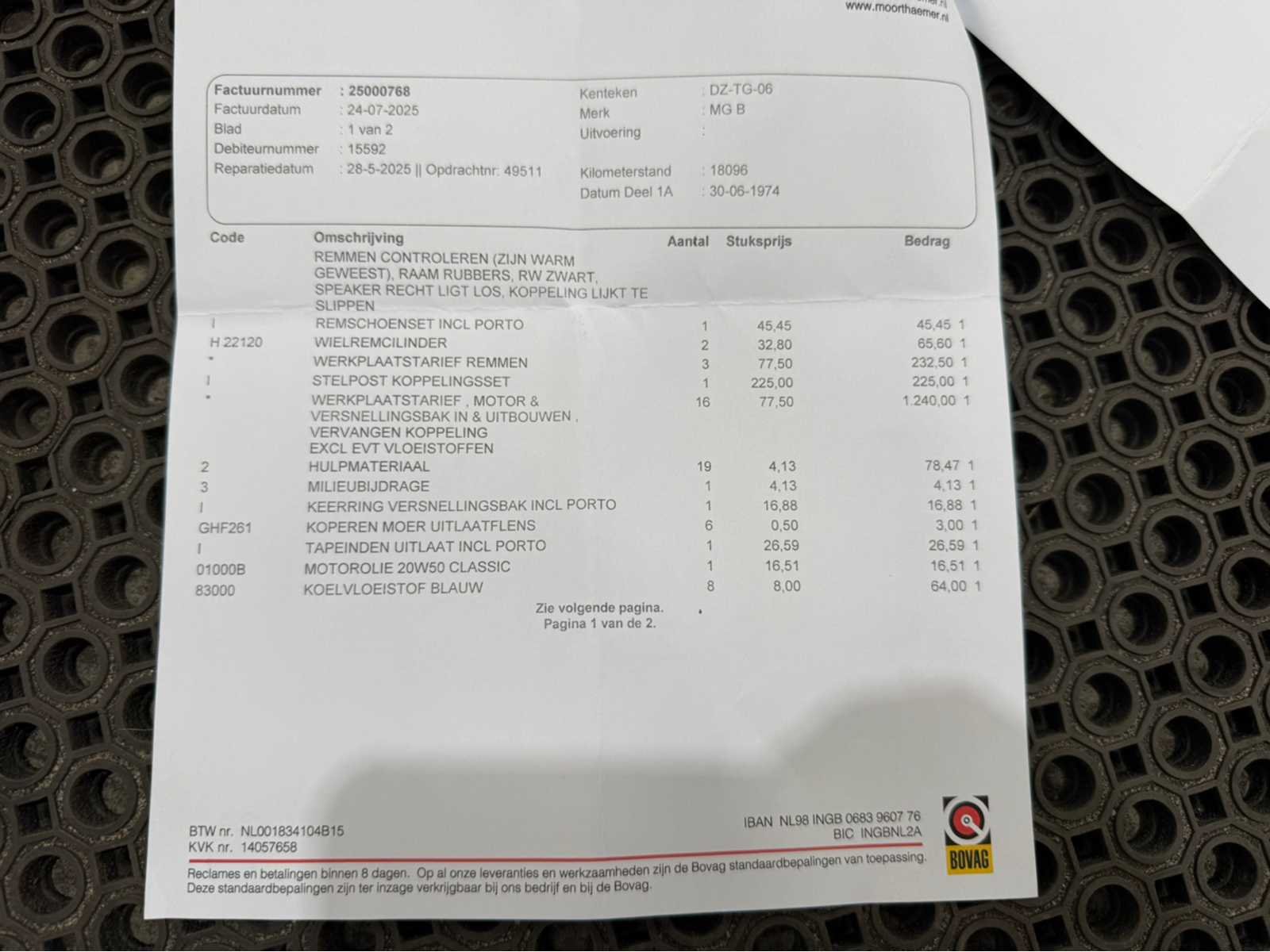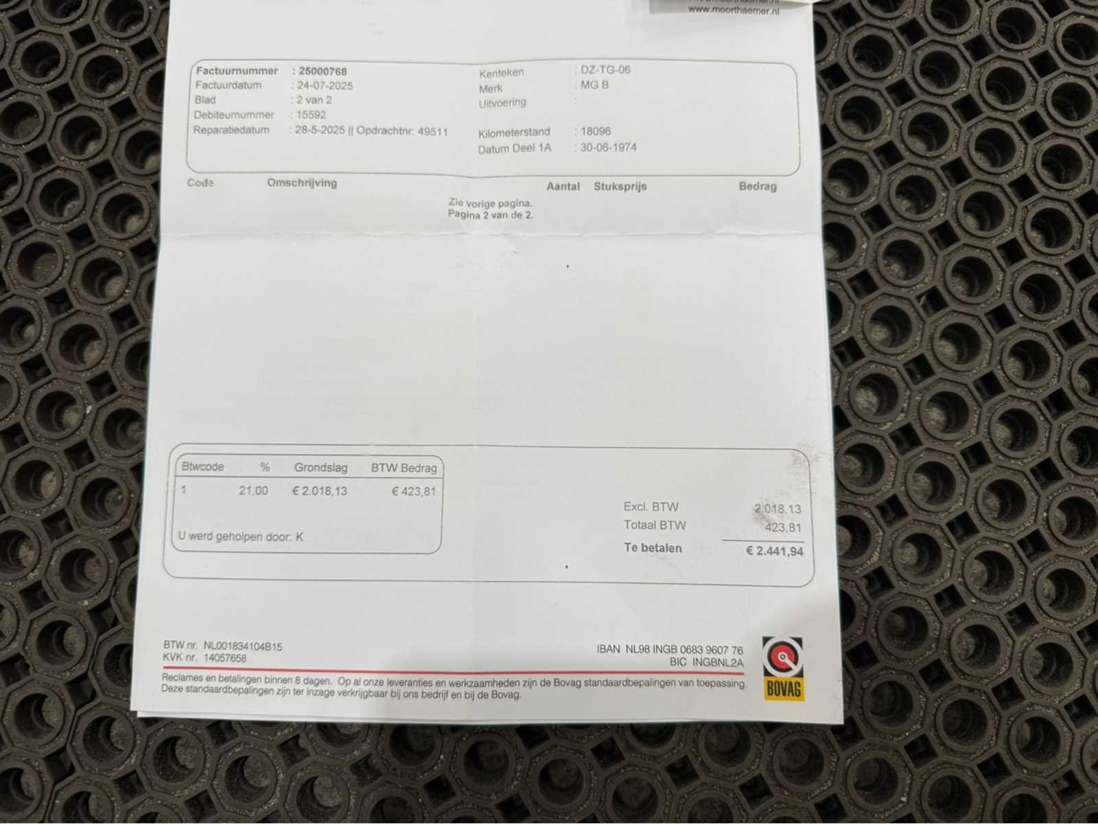 - vele facturen aanwezig Kenteken: DZ-TG-06 Merk: MG Type: 1.8 Roadster Bouwjaar: 1974 Chassisnummer: VF7AZKA00KA084042 Afgelezen kilometerstand: 18524 Model: B type Brandstof: Benzine Datum eerste toelating: 1974-06-30 APK vervaldatum: 2024-08-04 Nationaliteit documenten: Nederlands Aandrijving: Achter Transmissie: Handgeschakeld (null) Vermogen (kW): 0kW Emissieklasse: 0 Aantal deuren: 2 Kleur: rood Aantal cilinders: 4 Ledig gewicht: 1000