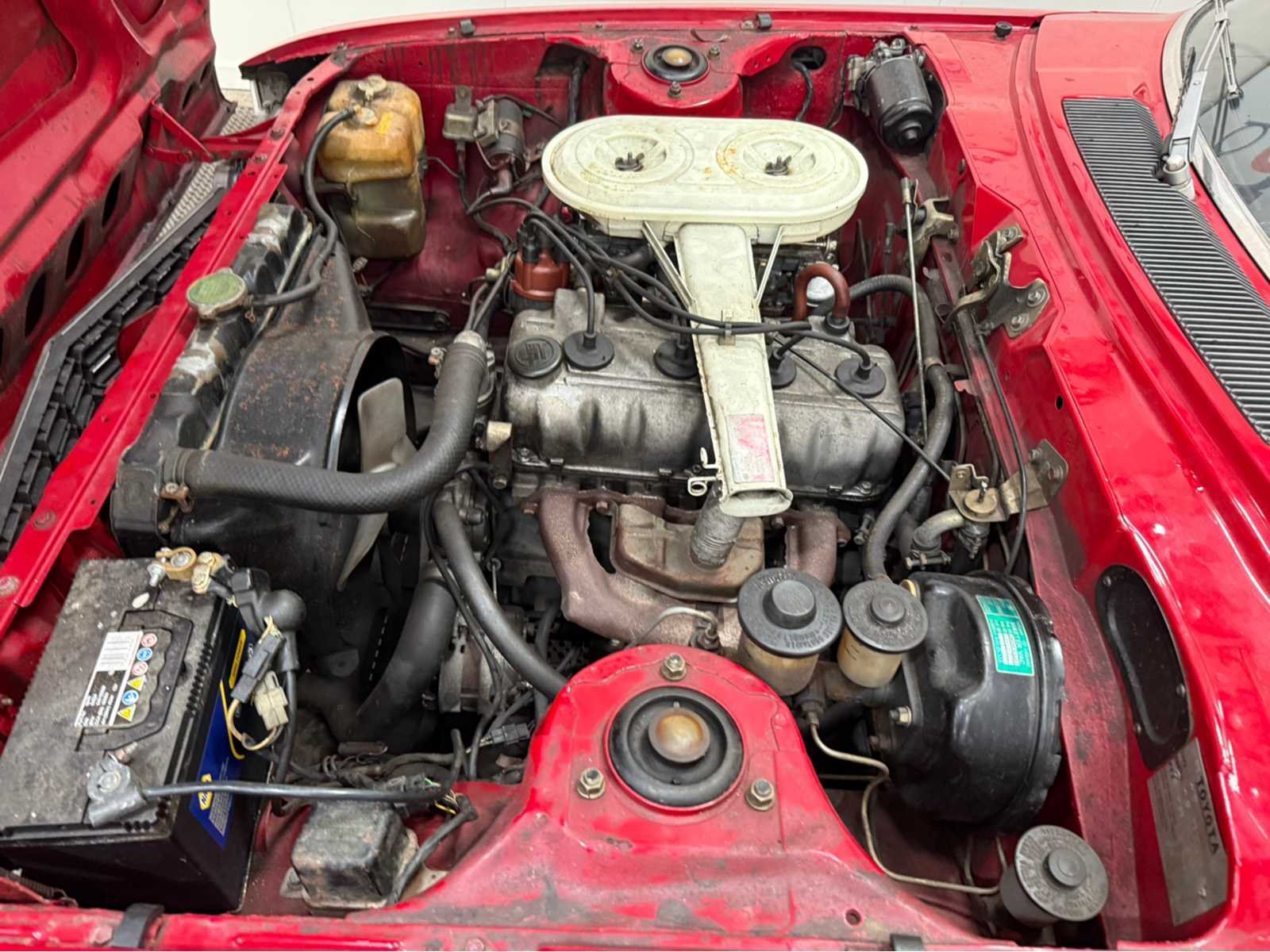 - project auto; lekt benzine - dubbele caburateurs Kenteken: PD-HJ-65 Merk: Toyota Type: Celica ST Bouwjaar: 1976 Chassisnummer: TA23013181 Afgelezen kilometerstand: 97147 Model: Celica ST Brandstof: benzine Datum eerste toelating: 1976-07-22 Datum eerste toelating (NL): 1996-05-29 APK vervaldatum: 2008-05-31 Nationaliteit documenten: Nederlands Transmissie: Handgeschakeld Vermogen (pk): 0 Emissieklasse: 0 Aantal deuren: 2 Kleur: rood Aantal cilinders: 4 Ledig gewicht: 985 No self drive export!: true