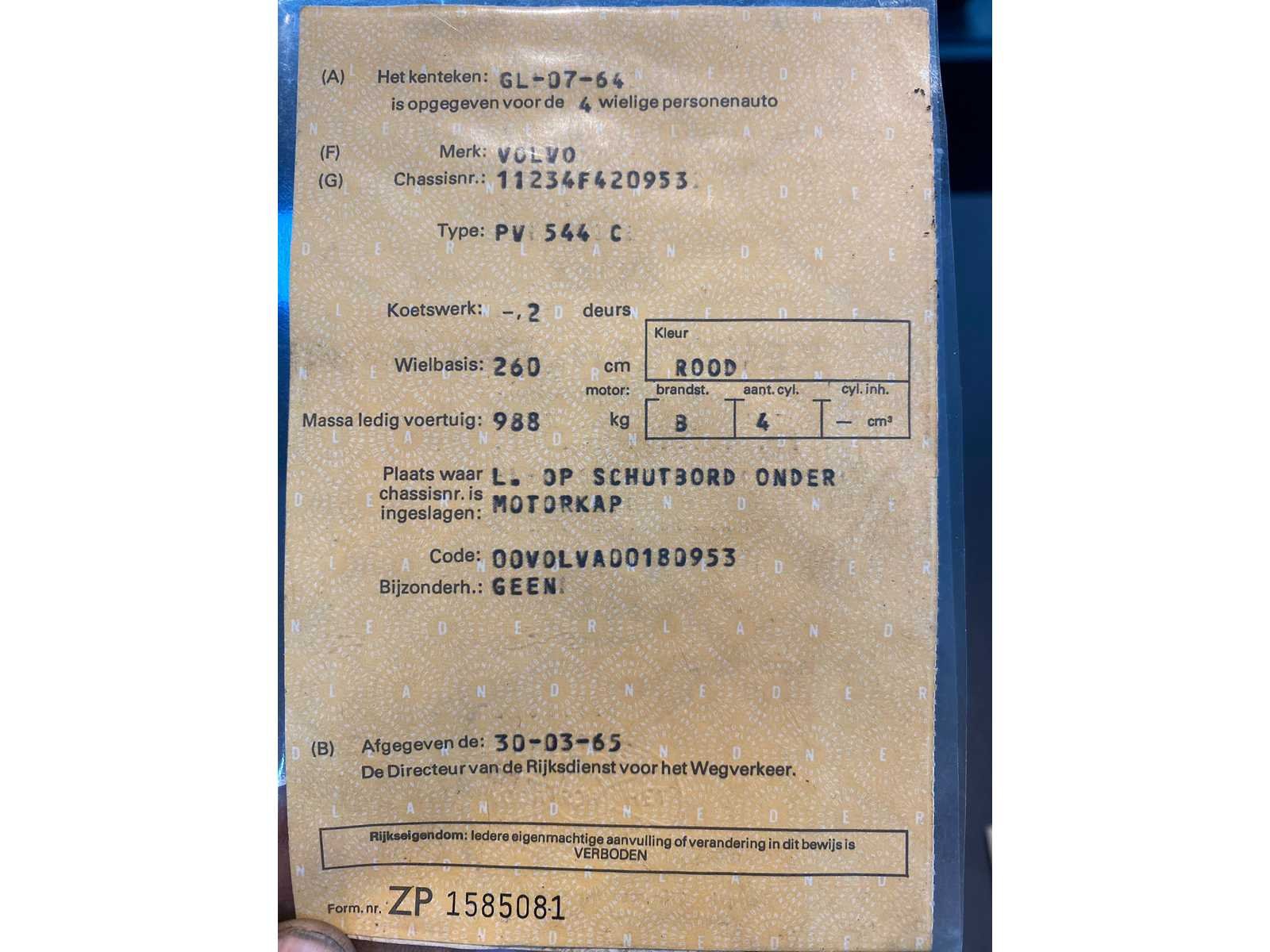 - dubbele carburateur Kenteken: GL-07-64 Merk: Volvo Type: Kattenrug Bouwjaar: 1965 Chassisnummer: 420953 Afgelezen kilometerstand: 91594 Model: PV 544 C Brandstof: benzine Datum eerste toelating: 1965-03-30 APK vervaldatum: 2022-11-10 Nationaliteit documenten: Nederlands Vermogen (kW): 0kW Emissieklasse: 0 Aantal deuren: 2 Startinformatie: Start en rijdt Kleur: rood Aantal cilinders: 4 Ledig gewicht: 988