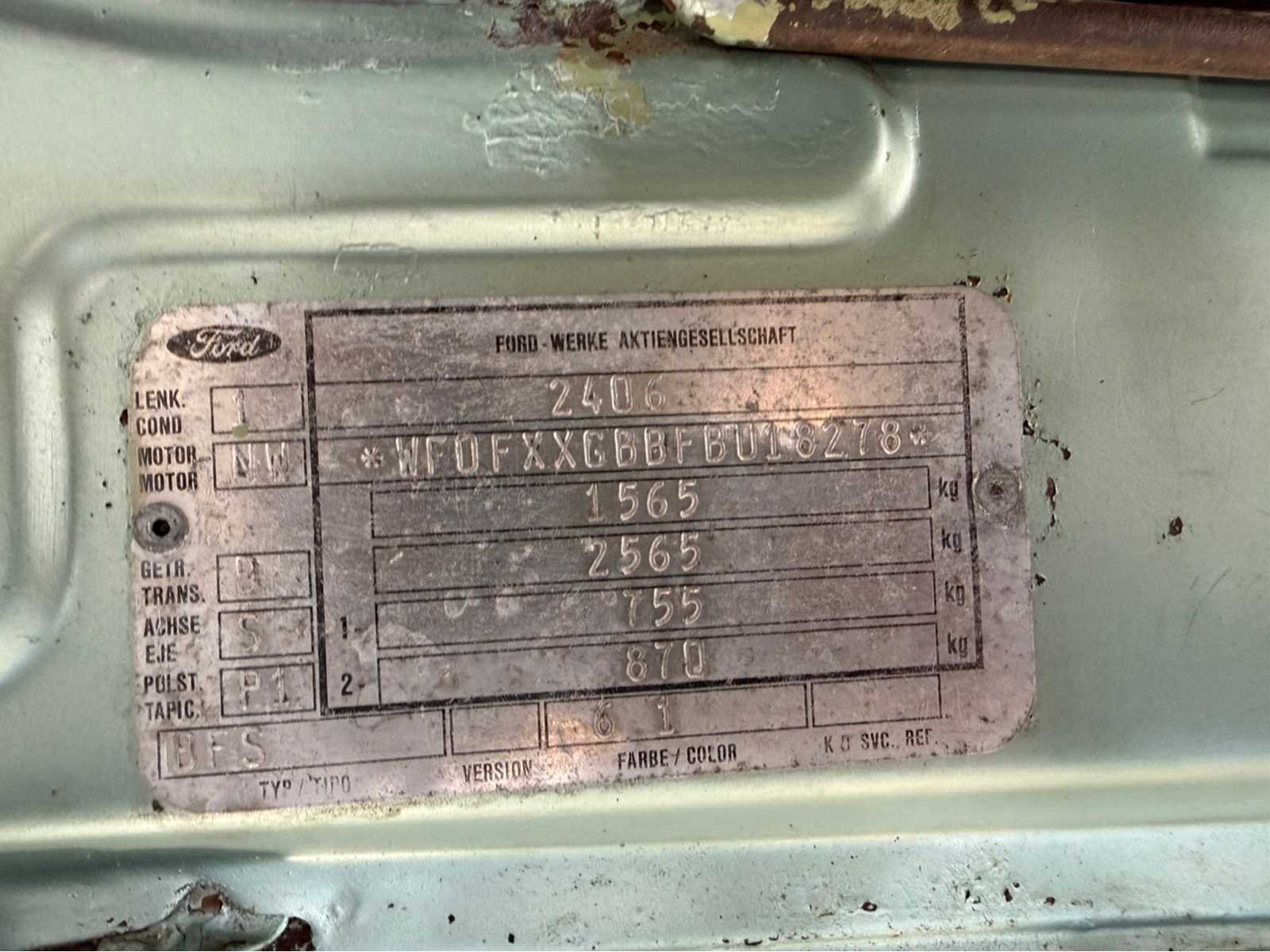Kenteken: GR-30-ZX Merk: Ford Type: Taunus 2.0 GL Bouwjaar: 1981 Chassisnummer: WF0FXXGBBFBU18278 Afgelezen kilometerstand: 18936 Model: Taunus NAP status: Geen oordeel Brandstof: benzine Datum eerste toelating: 1981-02-19 Datum eerste toelating (NL): 1981-02-19 APK vervaldatum: 2026-04-02 Nationaliteit documenten: Nederlands Transmissie: Handgeschakeld Vermogen (pk): 0 Emissieklasse: 0 Aantal deuren: 4 Kleur: groen Aantal cilinders: 6 Ledig gewicht: 1070