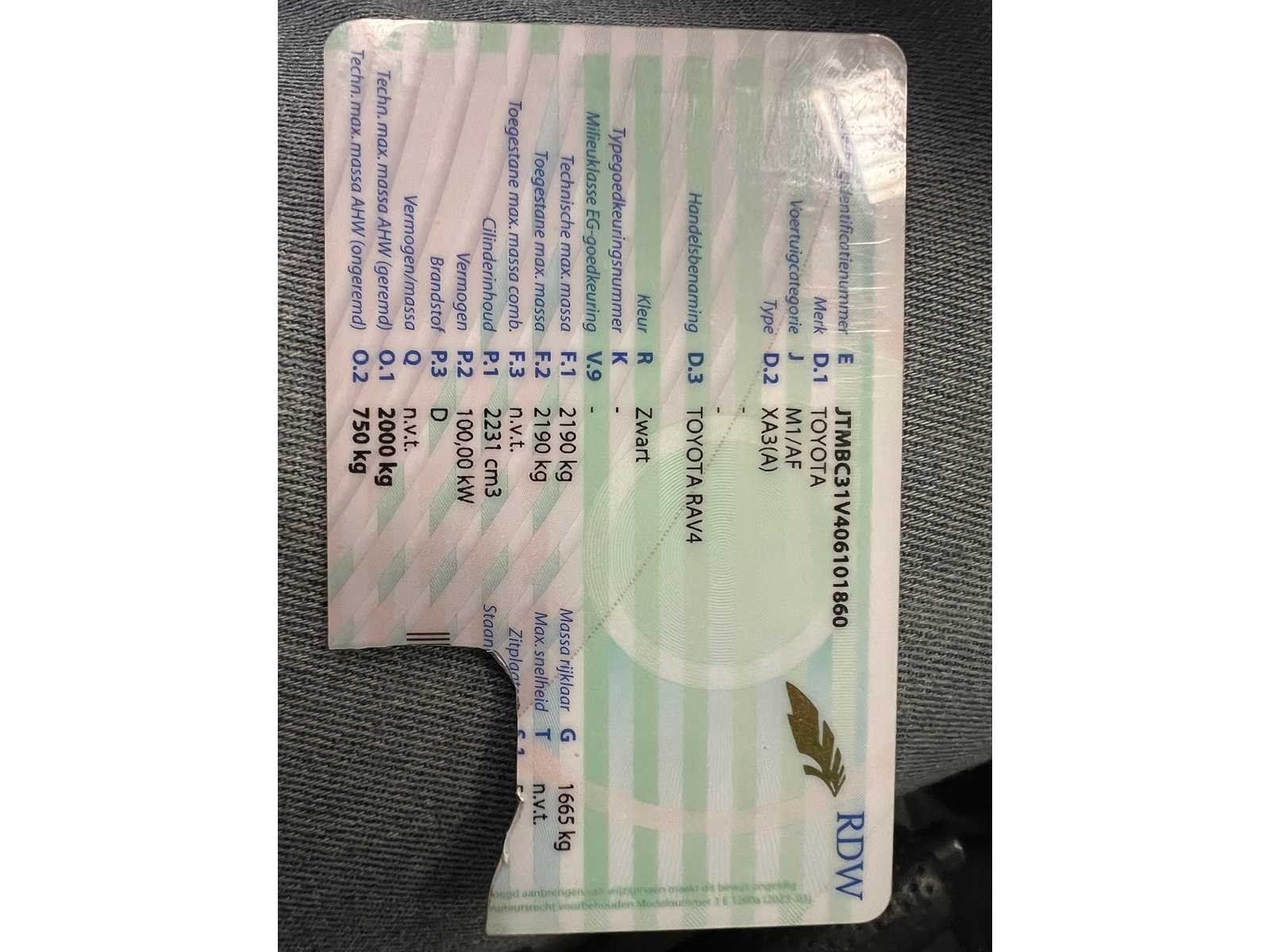 Indien dit kavel een kentekenregistratie heeft , dient u dit bij afhalen ter plaatste bij een derde partij te naam te stellen of te exporteren. Hier zijn extra kosten aan verbonden. Dit kavel betreft een gebruikt voertuig, dat wordt geleverd zonder garantie of reclamatiemogelijkheid. Gezien de leeftijd en kilometerstand kunnen gebruikerssporen of (technische) gebreken aanwezig te zijn. Het is de verantwoordelijkheid van de koper om het voertuig tijdens de kijkdag te inspecteren en te beoordelen. Kenteken: 81-HLB-8 Merk: Toyota Model: RAV4 Type: 2.2 D4D X-Style Nav Bouwjaar: 2009 Afgelezen kilometerstand: 365987km Cilinderinhoud: 2231cc Vermogen (kW): 100kW Brandstof: Diesel Chassisnummer: JTMBC31V406101860 NAP status: Logical Datum eerste toelating: 2009-01-13 APK vervaldatum: 2026-04-24 Vermogen (pk): 134hp Aantal zitplaatsen: 5 Maximaal trekgewicht ongeremd: 2000kg Maximaal trekgewicht geremd: 750kg Kleur: zwart Transmissie: Handgeschakeld (6) Emissieklasse: 4 Aantal deuren: 4 Ledig gewicht: 1565kg Bruto BPM (NL): 10866€ Rest BPM: 145€ Aantal cilinders: 4 Carrosserie: MPV Nationaliteit documenten: nl Carfax Link: https://was.carfax.eu/v0/api/ccdid/5100016408/svc/201/vinreg/81HLB8/checksum/eyJhbGciOiJIUzI1NiIsInR5cCI6IkpXVCJ9.eyJleHAiOjE3ODAzMDAzNzN9.RNVMynHmE_ZL-BFh6BVrKmEwnHRbG921eo5QQ47zBTc startinformatie : Start en rijdt