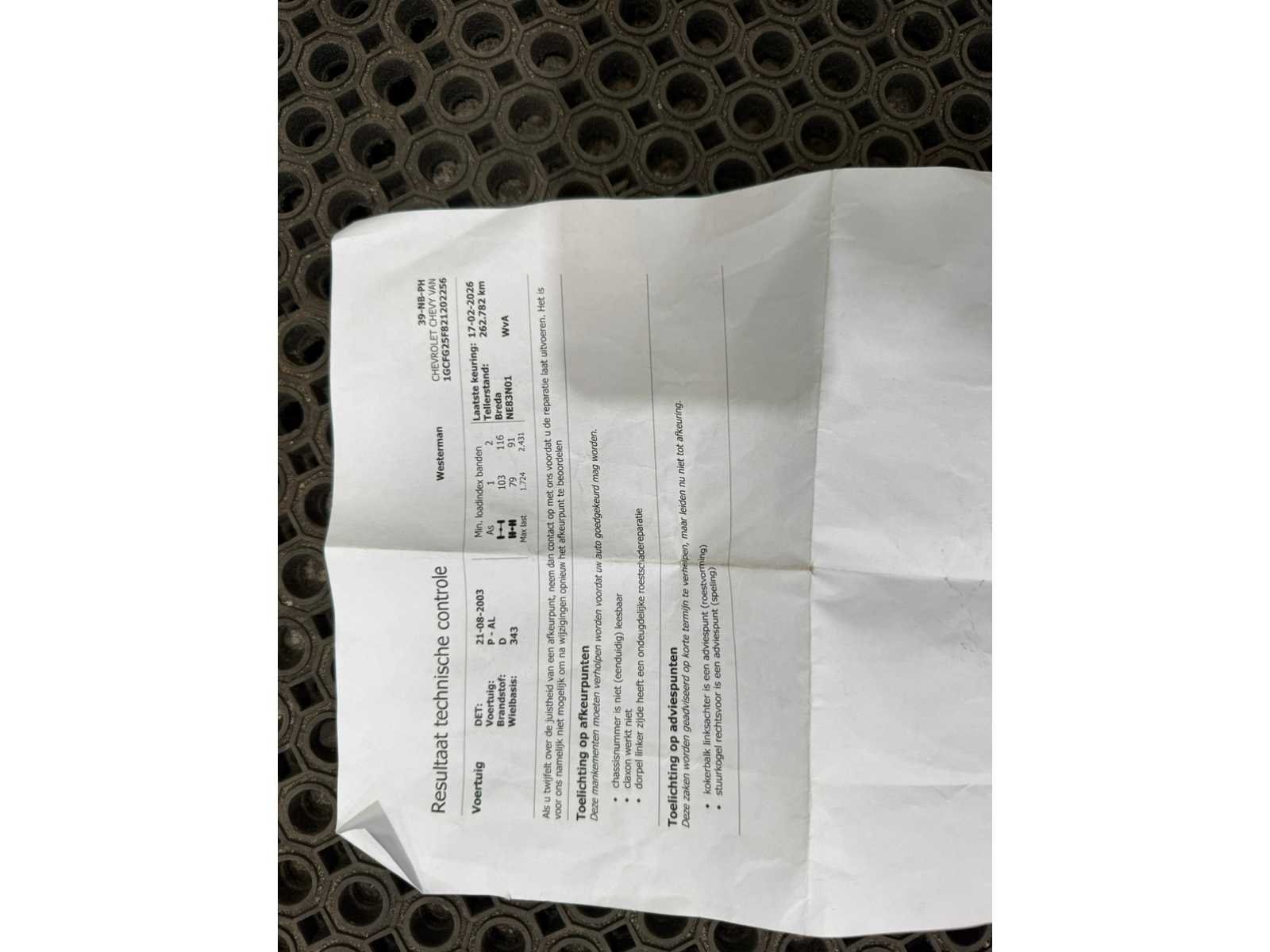 - apk afkeurpunten oa roest dorpel Kenteken: 39-NB-PH Merk: Chevrolet Model: Chevy Van Type: Chevy Van Chassisnummer: 1GCFG25F821202256 Aantal zitplaatsen: 2 Bruto BPM (NL): 16279€ Datum eerste toelating (NL): 2003-08-21 Datum eerste toelating: 2003-08-21 APK vervaldatum: 2026-03-04 Bouwjaar: 2003 Afgelezen kilometerstand: 263067km NAP status: Onlogisch Vermogen (kW): 134kW Vermogen (pk): 182hp Cilinderinhoud: 6466cc Emissieklasse: 3 Brandstof: diesel Aantal deuren: 4 Kleur: wit Carrosserie: Kampeerwagen Ledig gewicht: 3220