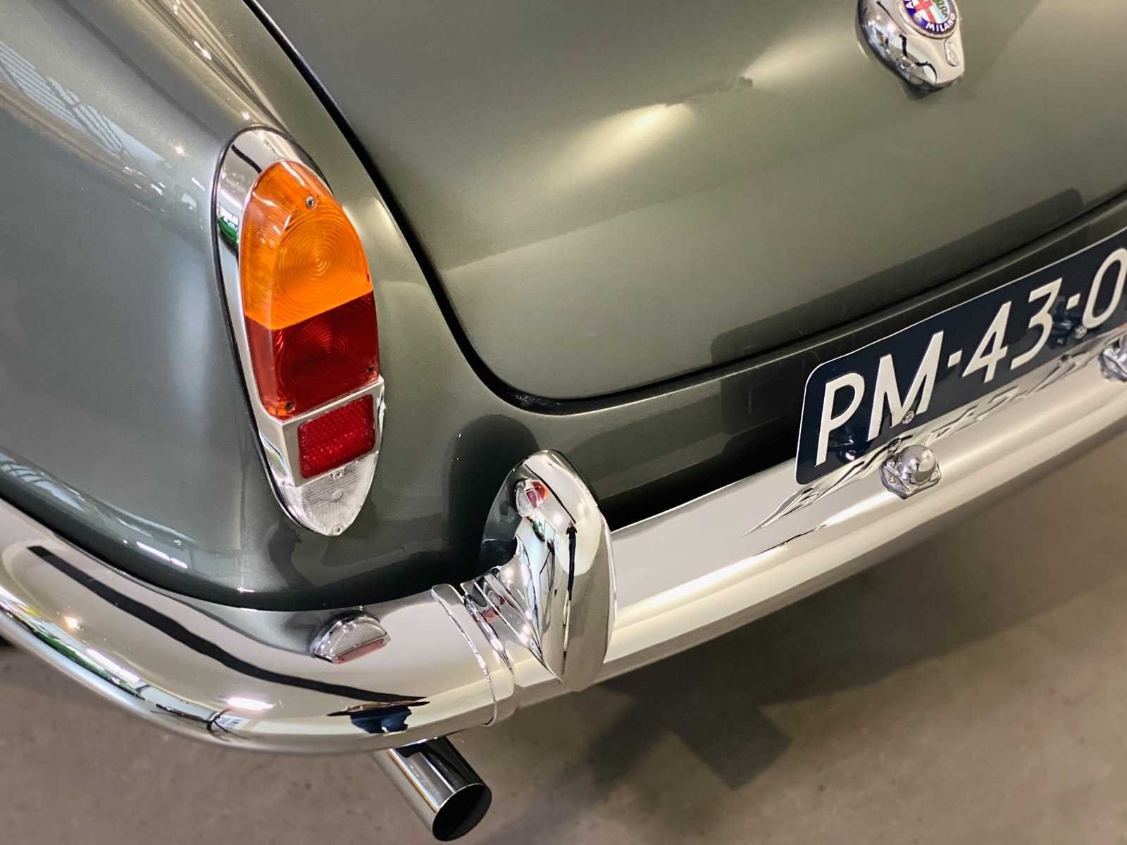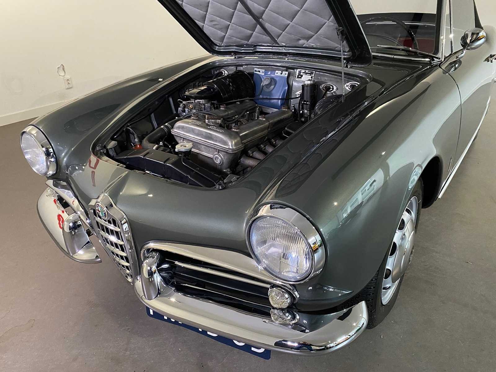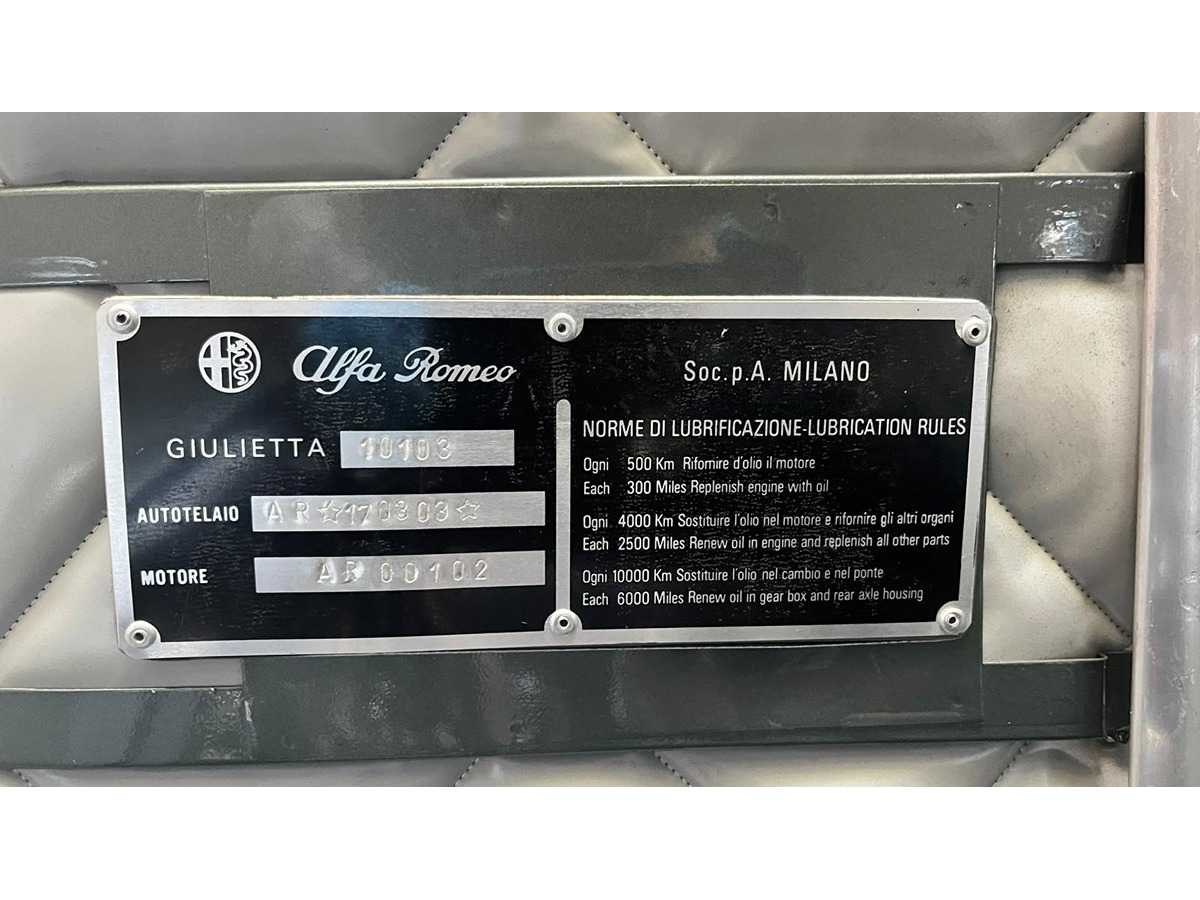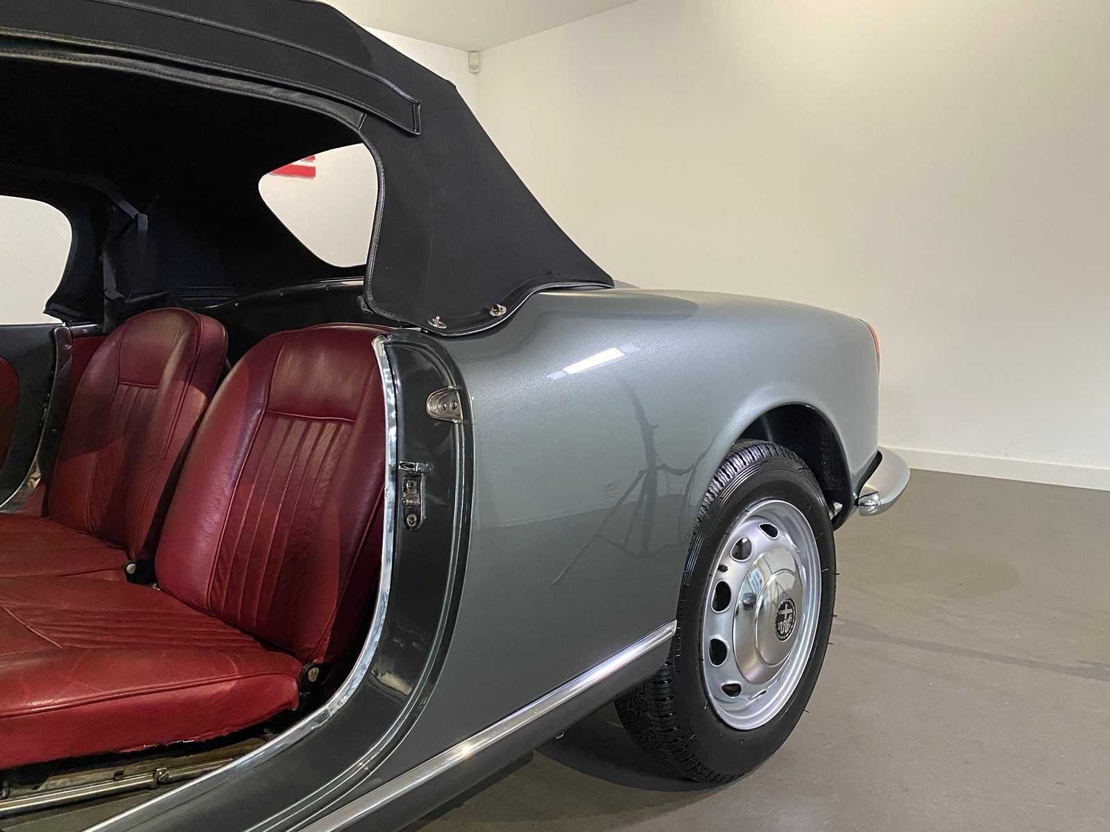 Alfa Romeo Giulietta uit september 1962, uitgevoerd in grijs metallic met rood lederen interieur. Kenmerken: “Bare metal” restauratie Motor en versnellingsbak gereviseerd (Italië) Onderstel gereviseerd Onderzijde in carrosseriekleur gespoten Nieuwe cabrioletkap Ca. 1.000 km gereden na restauratie Nederlands kenteken Kenteken: pm4303 Merk: Alfa Romeo Type: Cabriolet Bouwjaar: 1961 Chassisnummer: 10103.170303 Model: GIULIETTA SPIDER Brandstof: benzine Datum eerste toelating: 1962-09-15 Boorddocumenten aanwezig?: true Nationaliteit documenten: Italie Kentekenpapieren compleet?: true Carrosserie: Cabriolet Aandrijving: yes Transmissie: Hand Vermogen (pk): 94 Vermogen (kW): 70kW Emissieklasse: 0 Aantal deuren: 2 Aantal zitplaatsen: 2 Stuurwiel: Left Aantal sleutels: 2 Startinformatie: Yes Kleur: grijs Cilinderinhoud: 1300 Aantal cilinders: 4 Ledig gewicht: 820 Self drive export possible : true