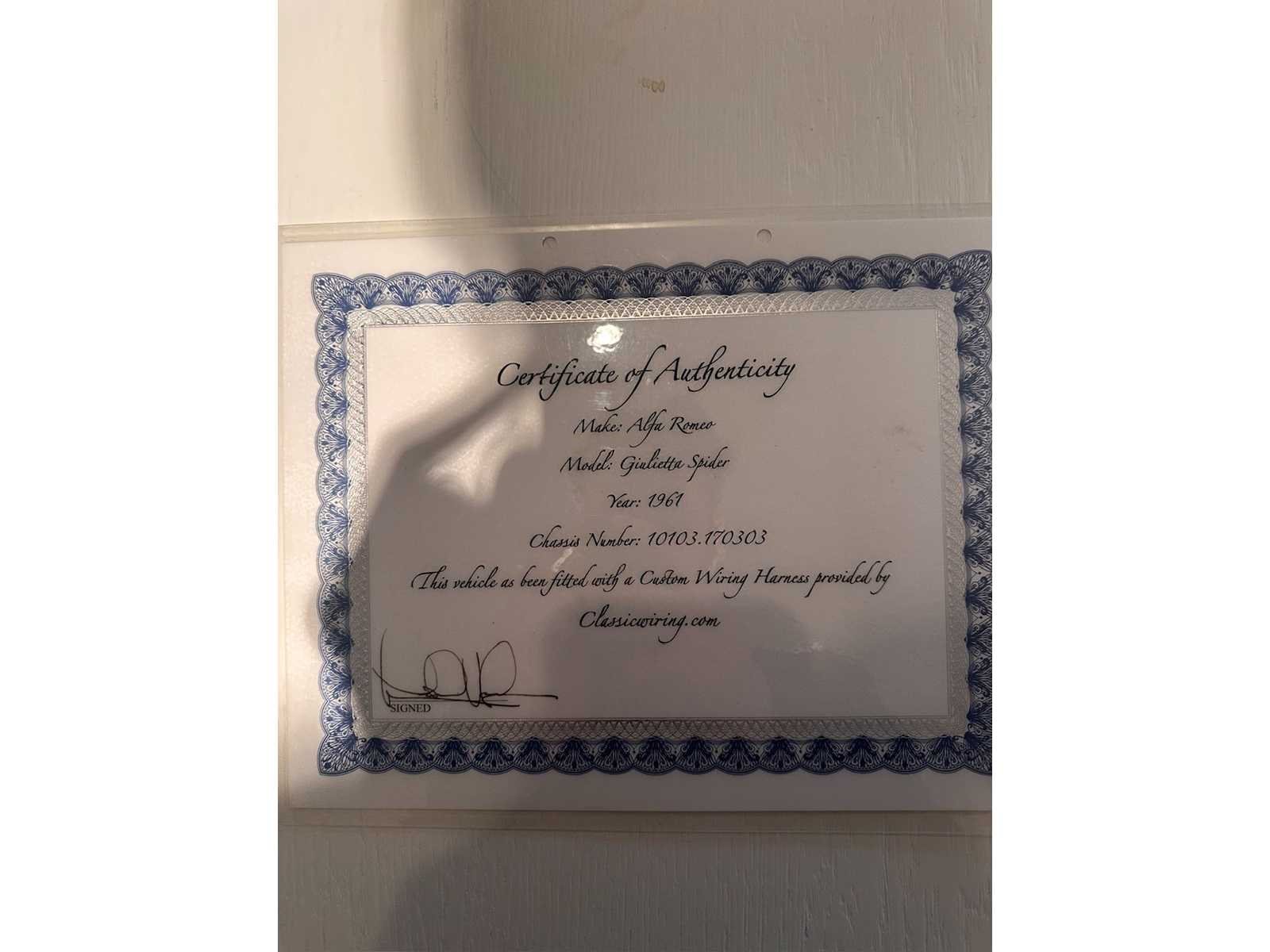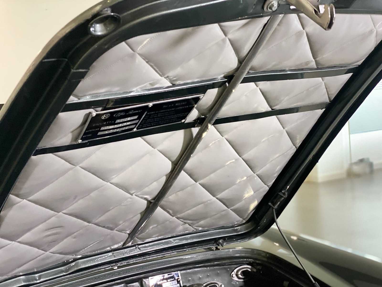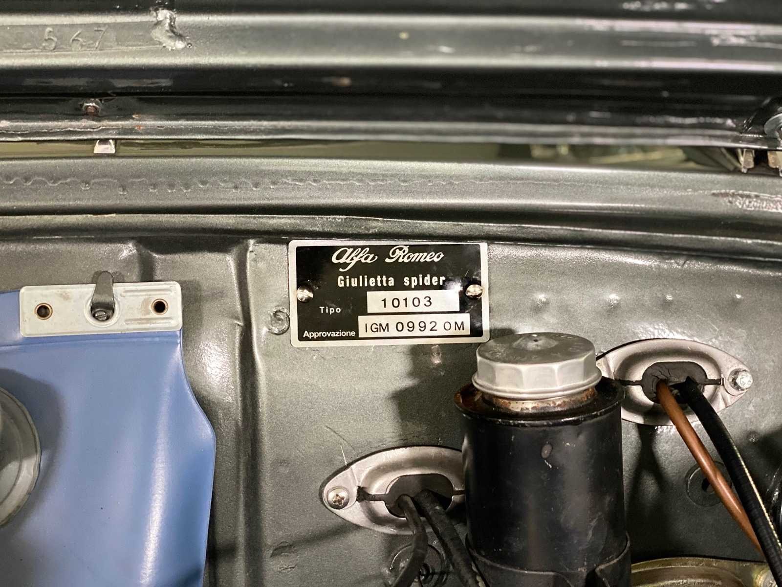 Alfa Romeo Giulietta uit september 1962, uitgevoerd in grijs metallic met rood lederen interieur. Kenmerken: “Bare metal” restauratie Motor en versnellingsbak gereviseerd (Italië) Onderstel gereviseerd Onderzijde in carrosseriekleur gespoten Nieuwe cabrioletkap Ca. 1.000 km gereden na restauratie Nederlands kenteken Kenteken: pm4303 Merk: Alfa Romeo Type: Cabriolet Bouwjaar: 1961 Chassisnummer: 10103.170303 Model: GIULIETTA SPIDER Brandstof: benzine Datum eerste toelating: 1962-09-15 Boorddocumenten aanwezig?: true Nationaliteit documenten: Italie Kentekenpapieren compleet?: true Carrosserie: Cabriolet Aandrijving: yes Transmissie: Hand Vermogen (pk): 94 Vermogen (kW): 70kW Emissieklasse: 0 Aantal deuren: 2 Aantal zitplaatsen: 2 Stuurwiel: Left Aantal sleutels: 2 Startinformatie: Yes Kleur: grijs Cilinderinhoud: 1300 Aantal cilinders: 4 Ledig gewicht: 820 Self drive export possible : true