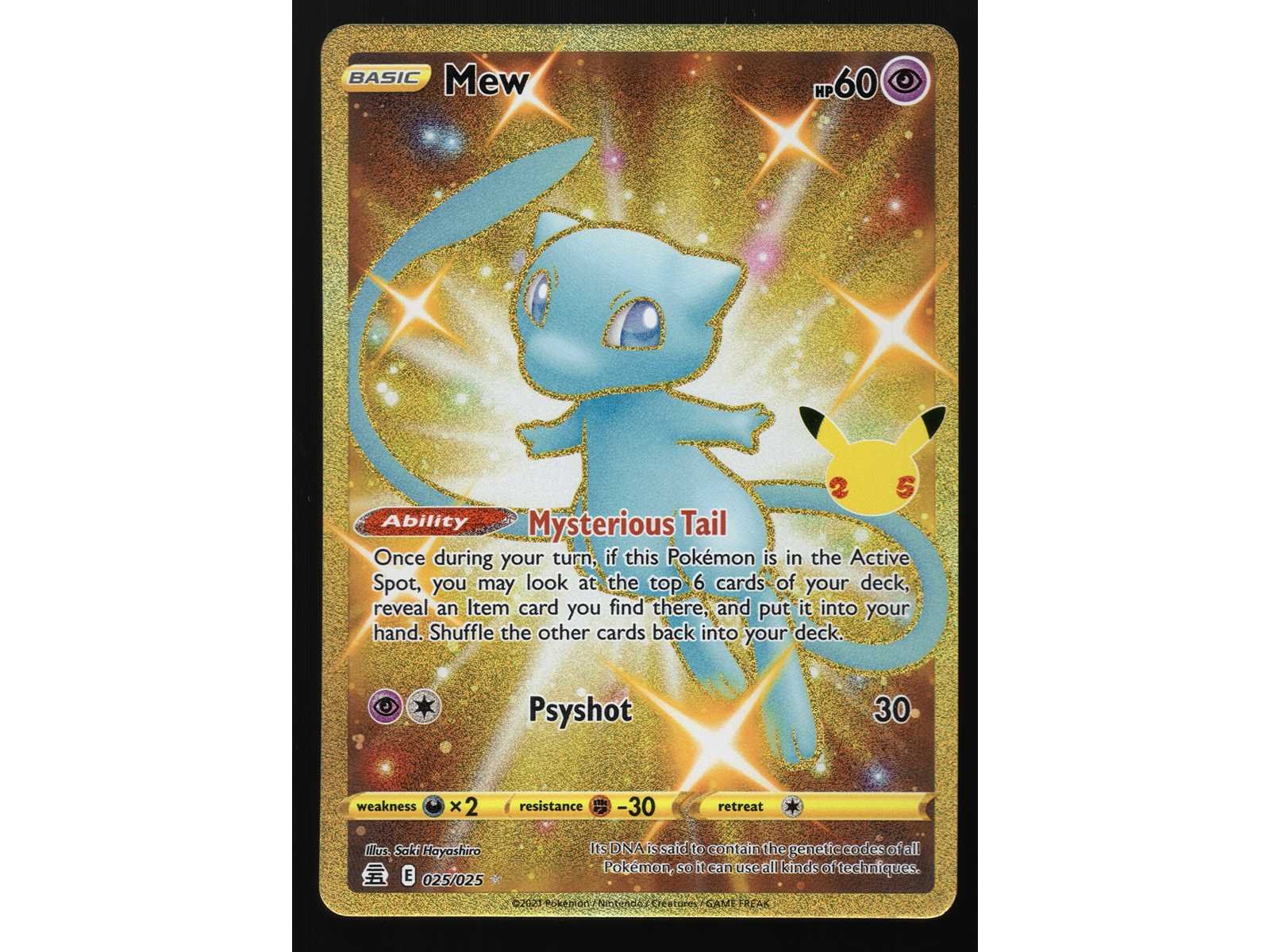 Jaar: 2021 Pokémon naam: Shiny Mew Set: Celebrations Kaartnummer: 025/025 Kunstenaar: Saki Hayashiro