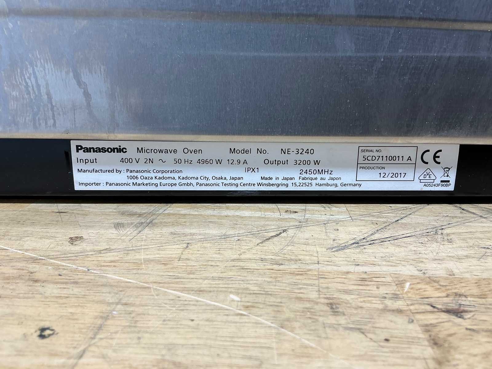 Merk: Panasonic Type: NE-3240 Totale afmeting L: 65cm Totale afmeting Breedte: 65cm Totale afmeting Hoogte: 47cm Aansluiting: 400V