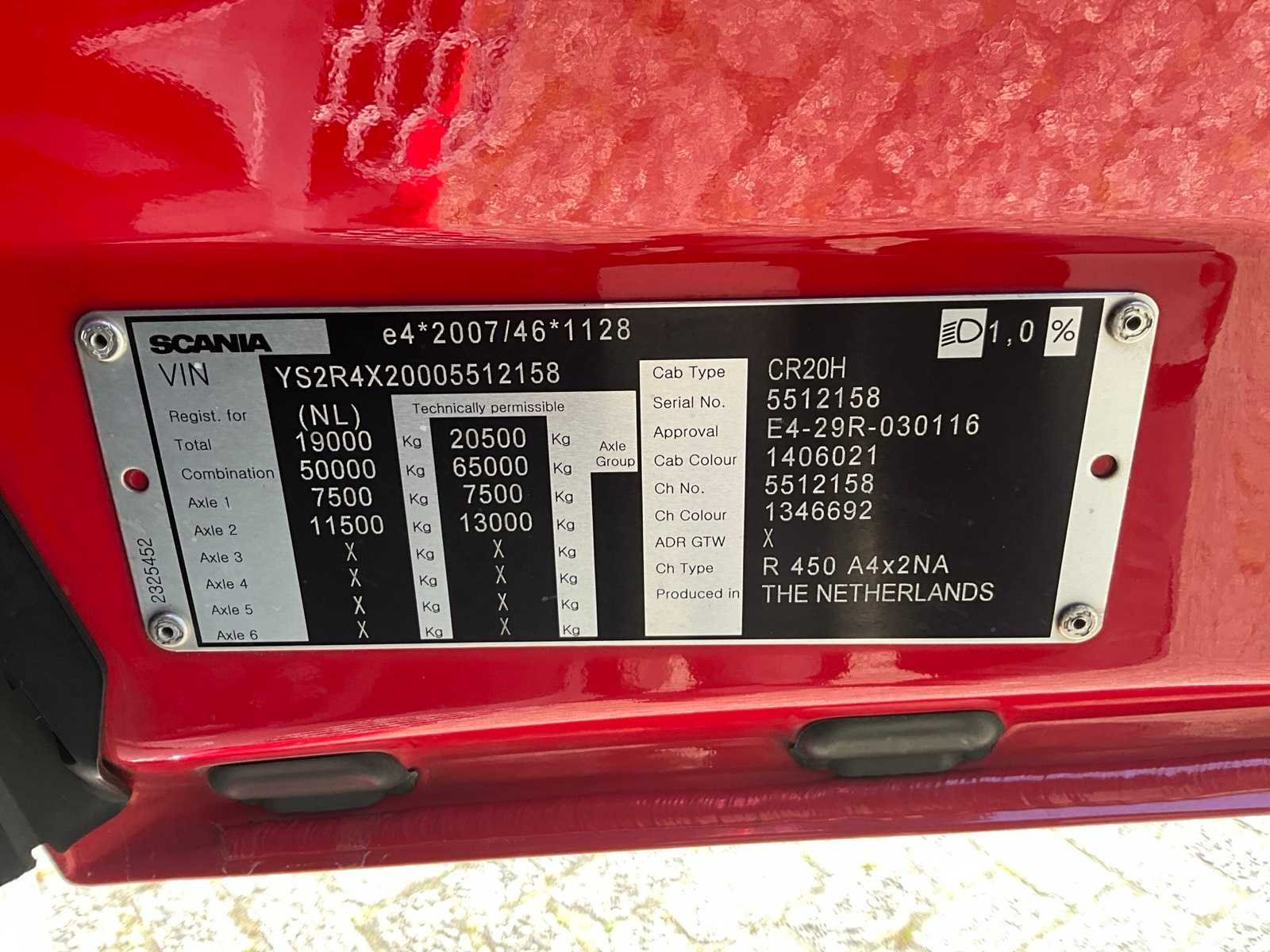 Kenteken: 87-BKX-3 Merk: Scania Type: R450 Bouwjaar: 2018 Chassisnummer VIN: YS2R4X0005512158 Cilinderinhoud: 12742cc Kilometerstand bij opname: 870547km APK vervaldatum: 2026-08-26 Datum eerste toelating: 2018-06-14 Aantal assen: 2 Asconfiguratie: 4x2 Fuel Type: Diesel Aantal sleutels: 2 Emissieklasse: 6 Slaapcabine: true Navigatie: true Nationaliteit documenten: Nederlands Kentekenpapieren compleet?: true Aantal zitplaatsen: 2 Automaat: true Diesel: true