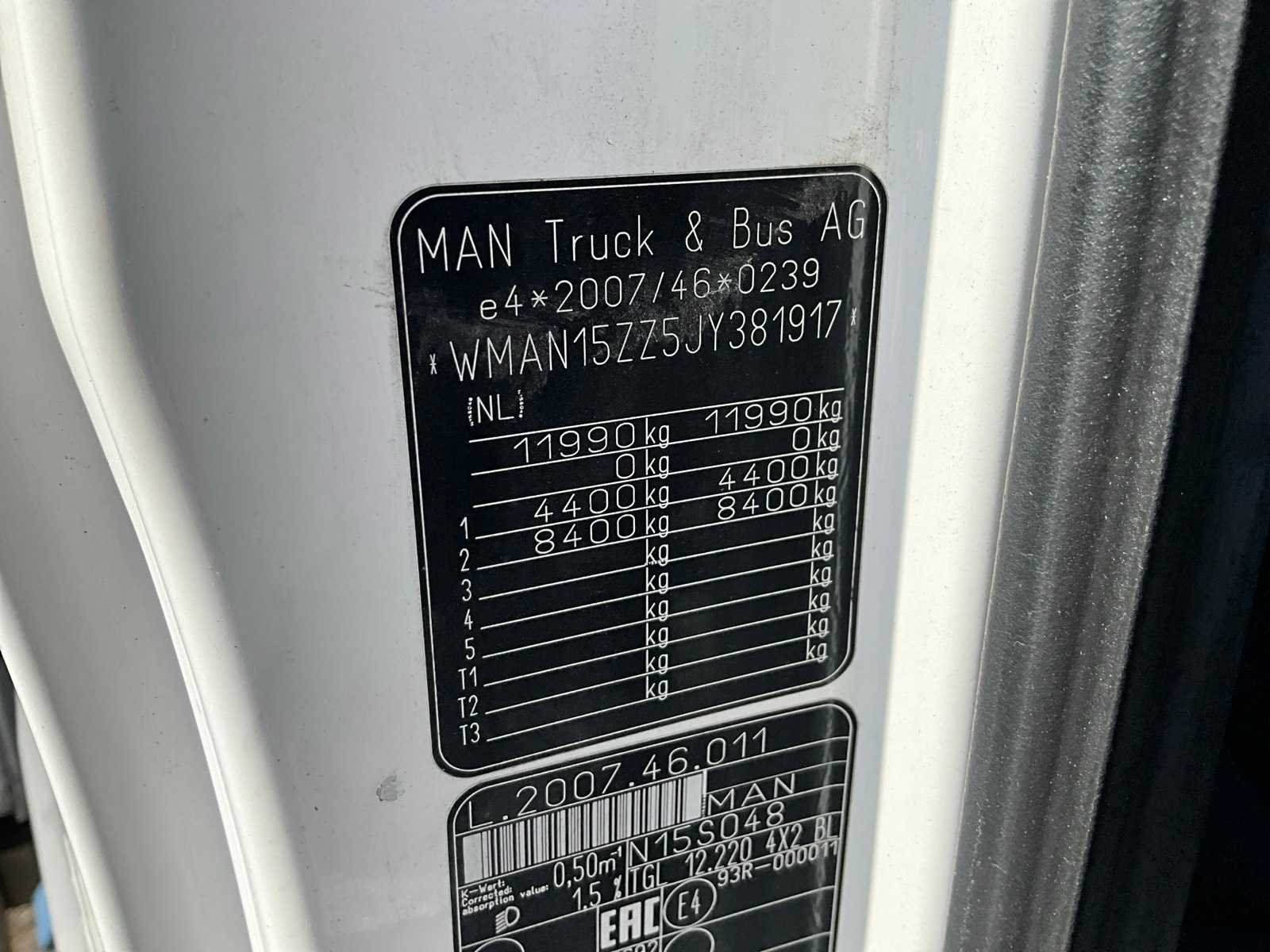 Kenteken: 38-BLJ-4 Merk: MAN Type: TGL 12.200 Bouwjaar: 2018 Chassisnummer VIN: WMAN15ZZ5JY381917 Cilinderinhoud: 4580cc Kilometerstand bij opname: 503472km APK vervaldatum: 2026-09-23 Datum eerste toelating: 2018-09-21 Type transmissie: Automatisch Aantal assen: 2 Asconfiguratie: 4x2 Fuel Type: Diesel Emissieklasse: 6 Hydraulische laadklep: true Navigatie: true Nationaliteit documenten: Nederlands Kentekenpapieren compleet?: true Aantal zitplaatsen: 2 Automaat: true Diesel: true